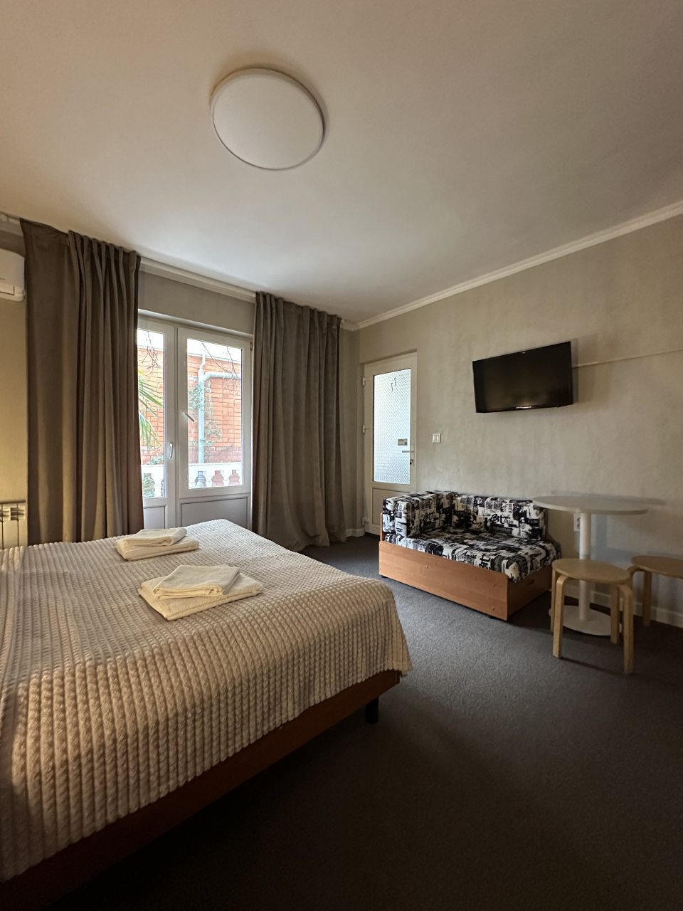Очень неплохой гостевой дом. Меня быстро заселили и рассказали, где неподалеку можно вкусно поесть. Номер со свежим ремонтом. Вся мебель и техника в хорошем состоянии. До моря идти буквально пару минут.