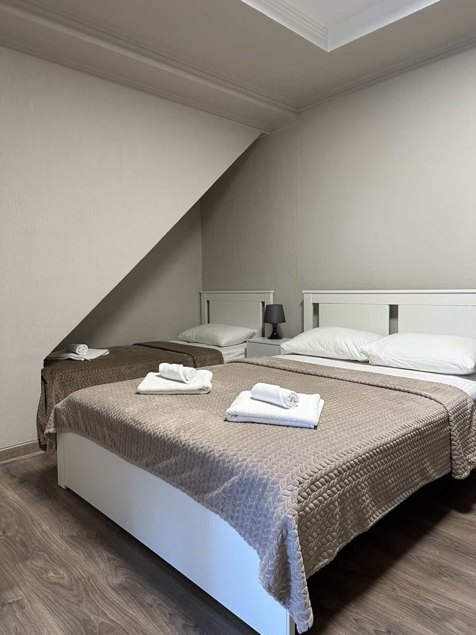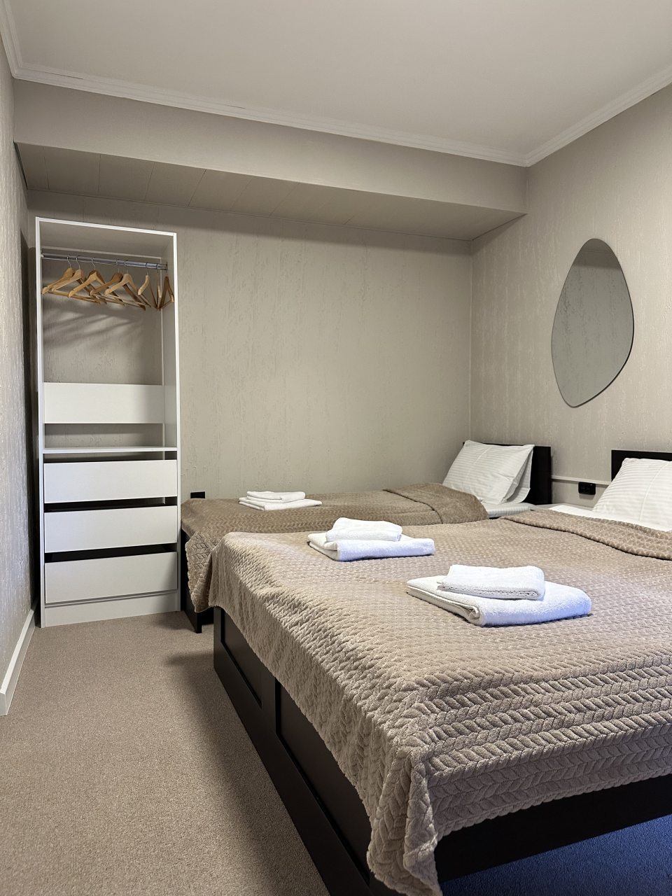 Гостям предоставляются номера разной вместимости: от 2-х до 5 человек, а также апартаменты на 7 человек с отдельным входом и собственной кухней. Они оснащены необходимой техникой и мебелью для комфортного проживания.