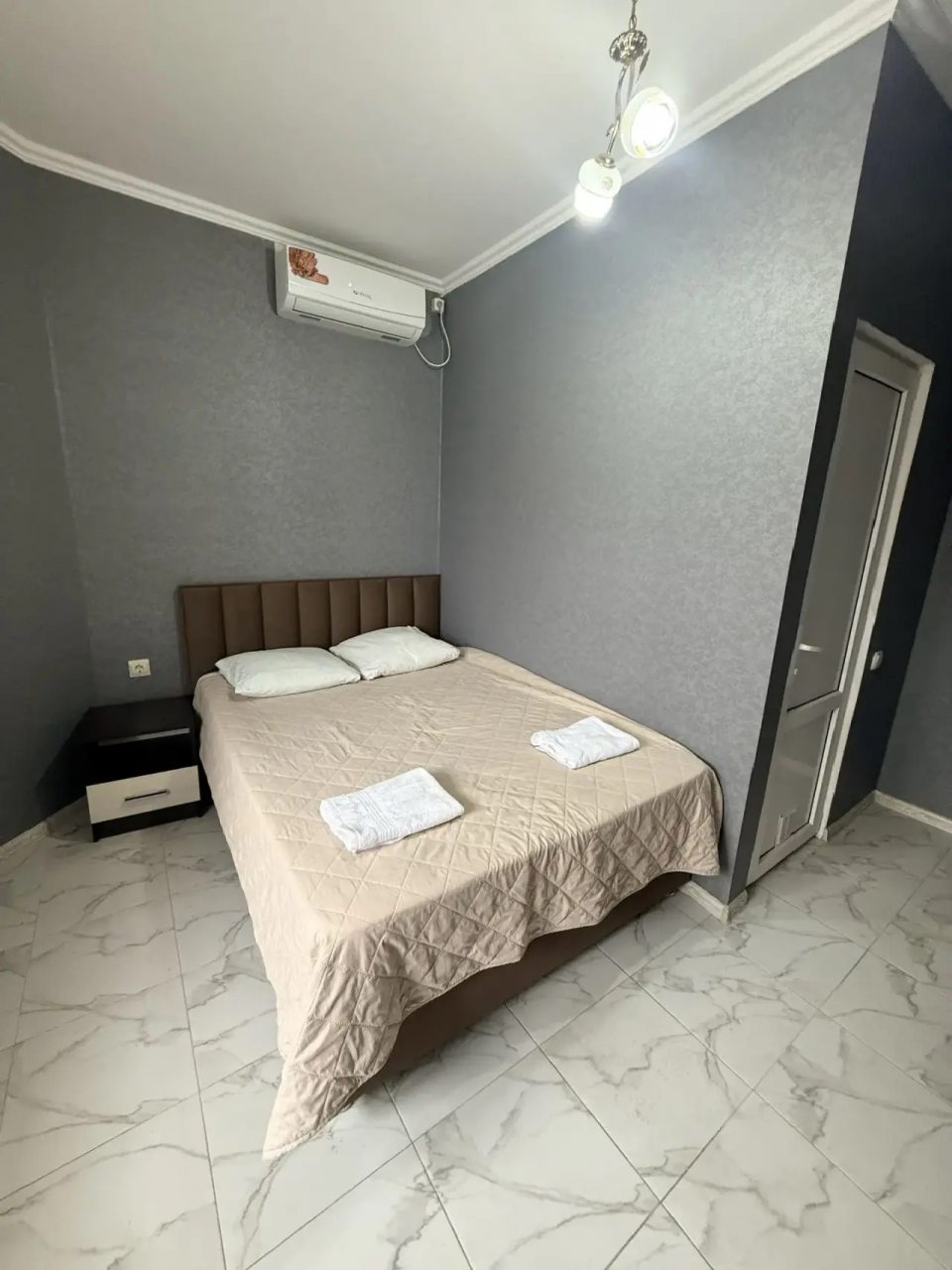 Для размещения представлены различные по комплектации номера. Внутри каждого имеются кровати с удобными матрасами, телевизор, кондиционер, комплект полотенец, прикроватные тумбы, шкаф, затемненные шторы. Санузел укомплектован стандартным набором сантехники.