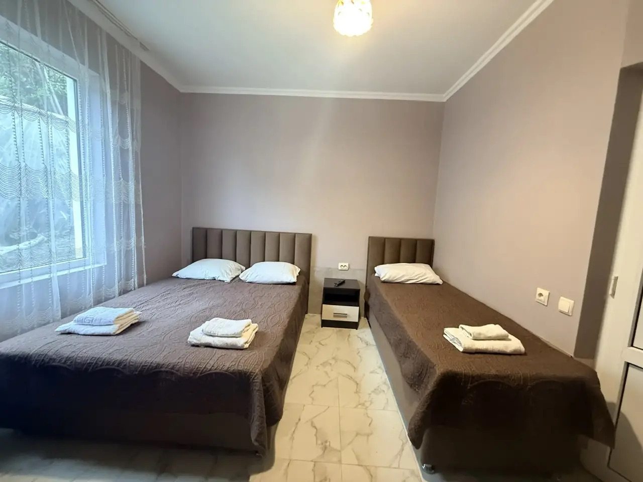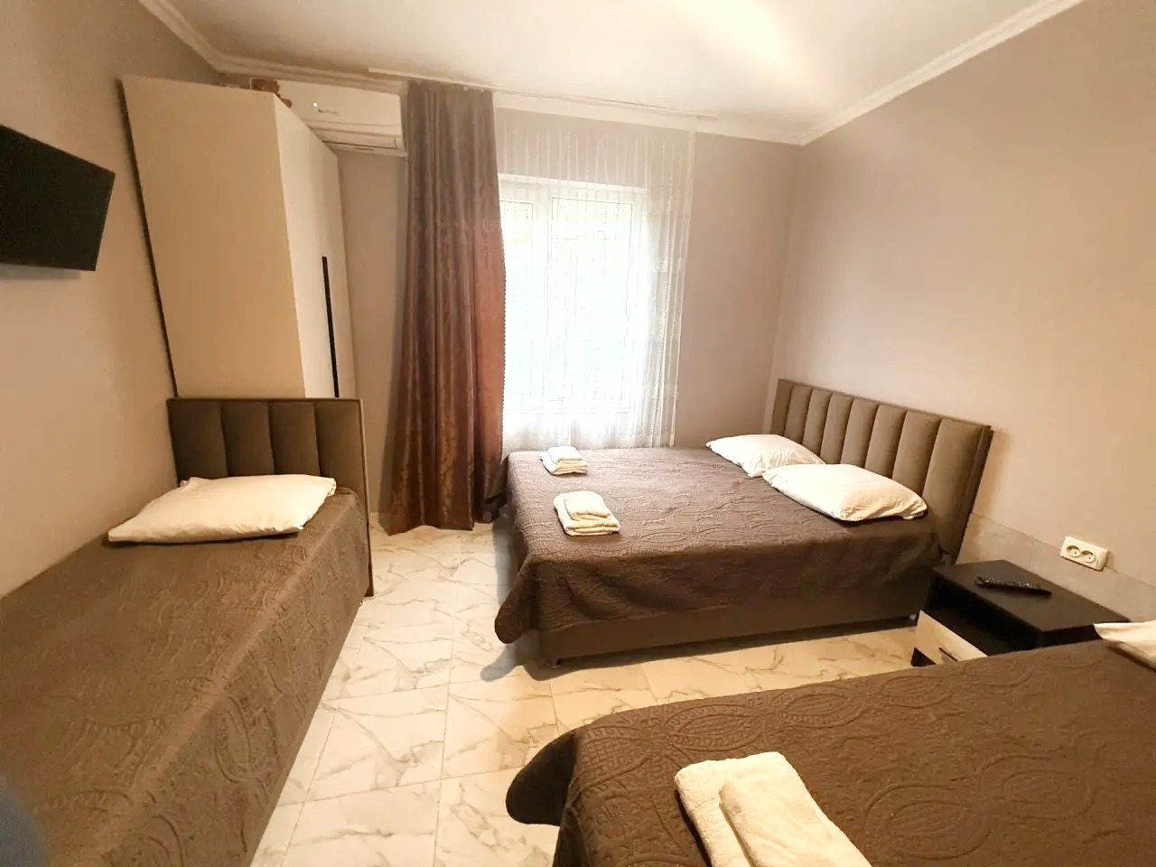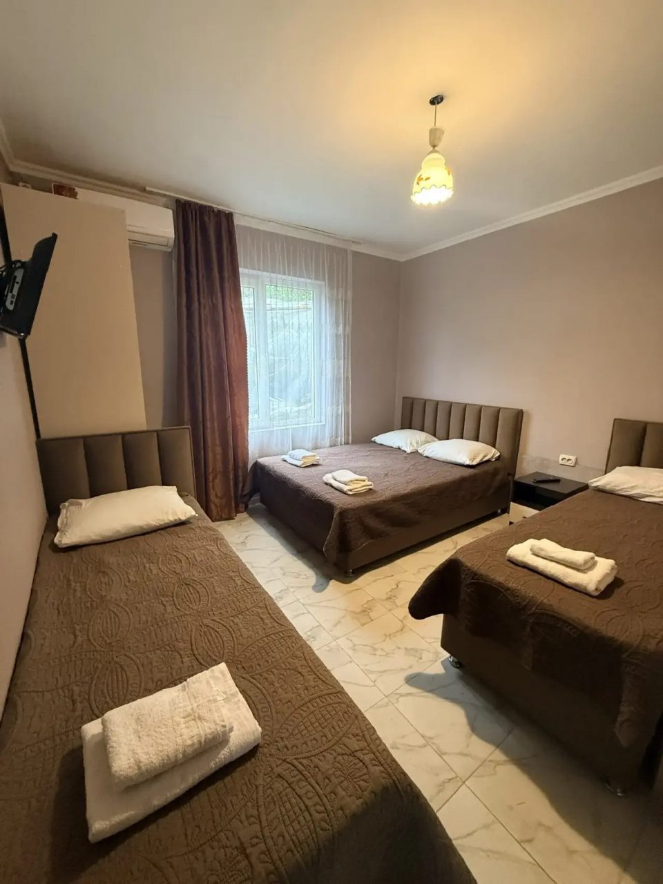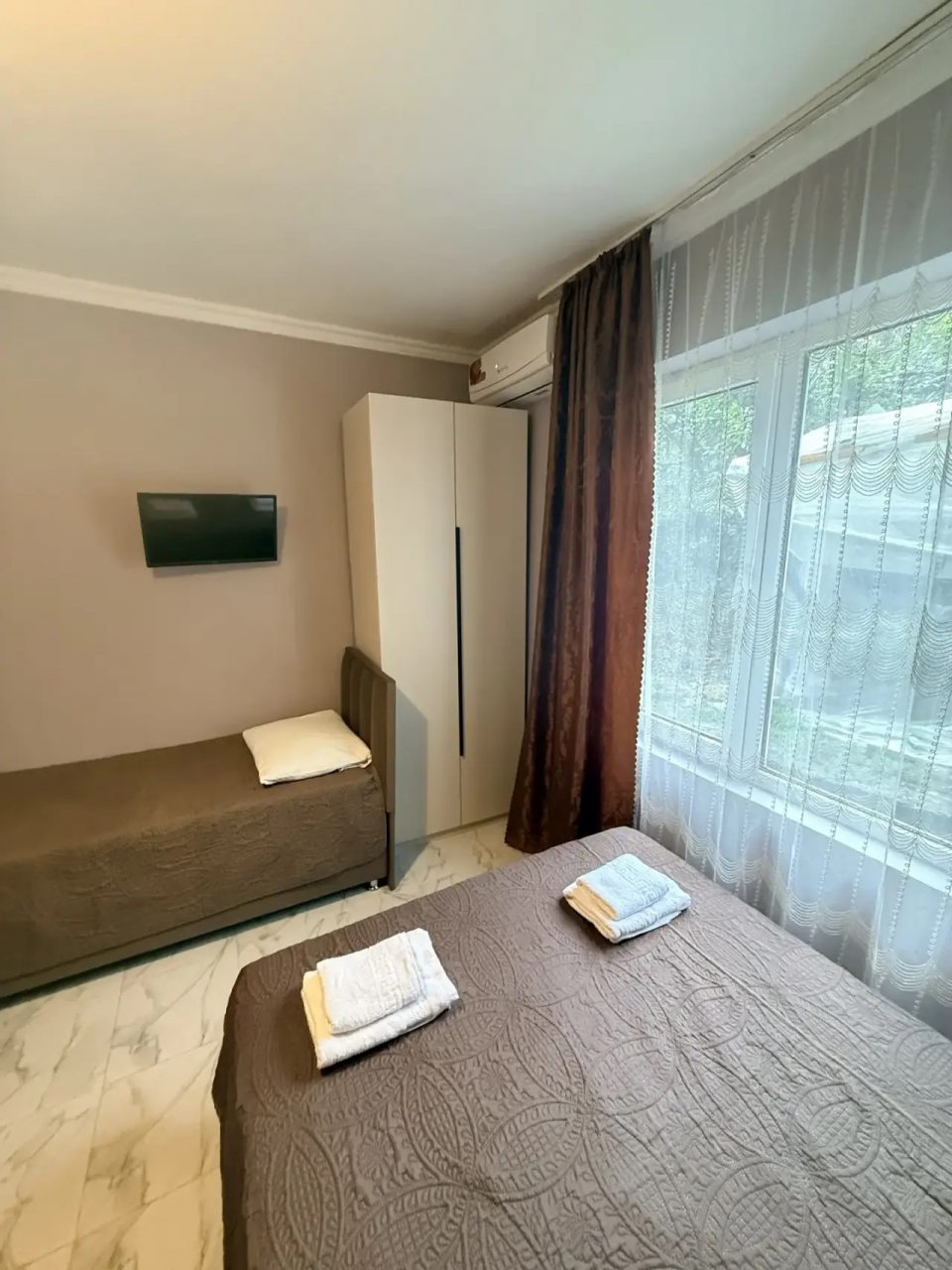 Были с другом в Сочи, останавливались здесь на пару дней. Нас здесь все устроило. Номер чистый, с удобными кроватями, постельное белье и подушки в хорошем состоянии. Есть телевизор и своя ванная, очень удобно.