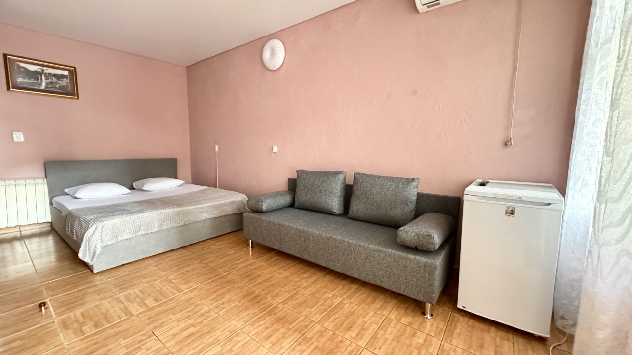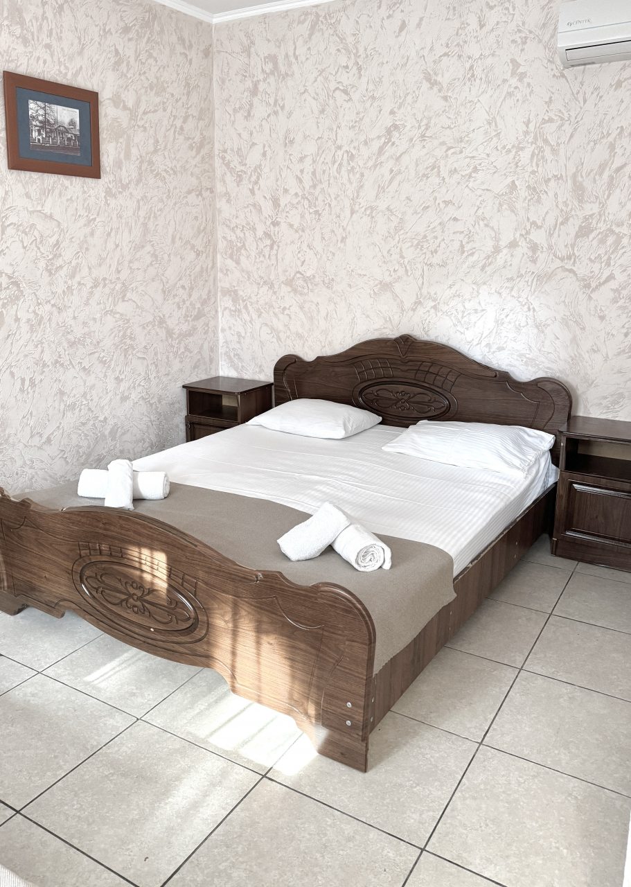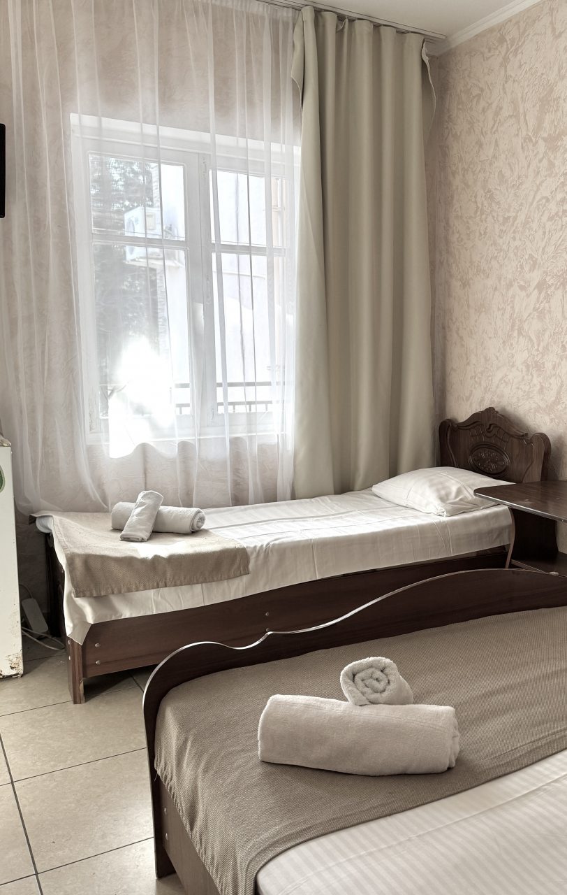 Приезжали на отдых, всё очень понравилось- сам номер светлый, есть телевизор, кондиционер, холодильник. Душ и туалет в номере, хороший ремонт. В гостинице есть общая кухня, готовили там только завтраки, в течении дня питались в основном в кафе. Красивая и ухоженная территория. В шаговой доступности море, магазины, рестораны. Рекомендую.