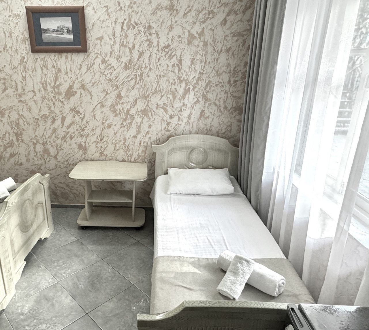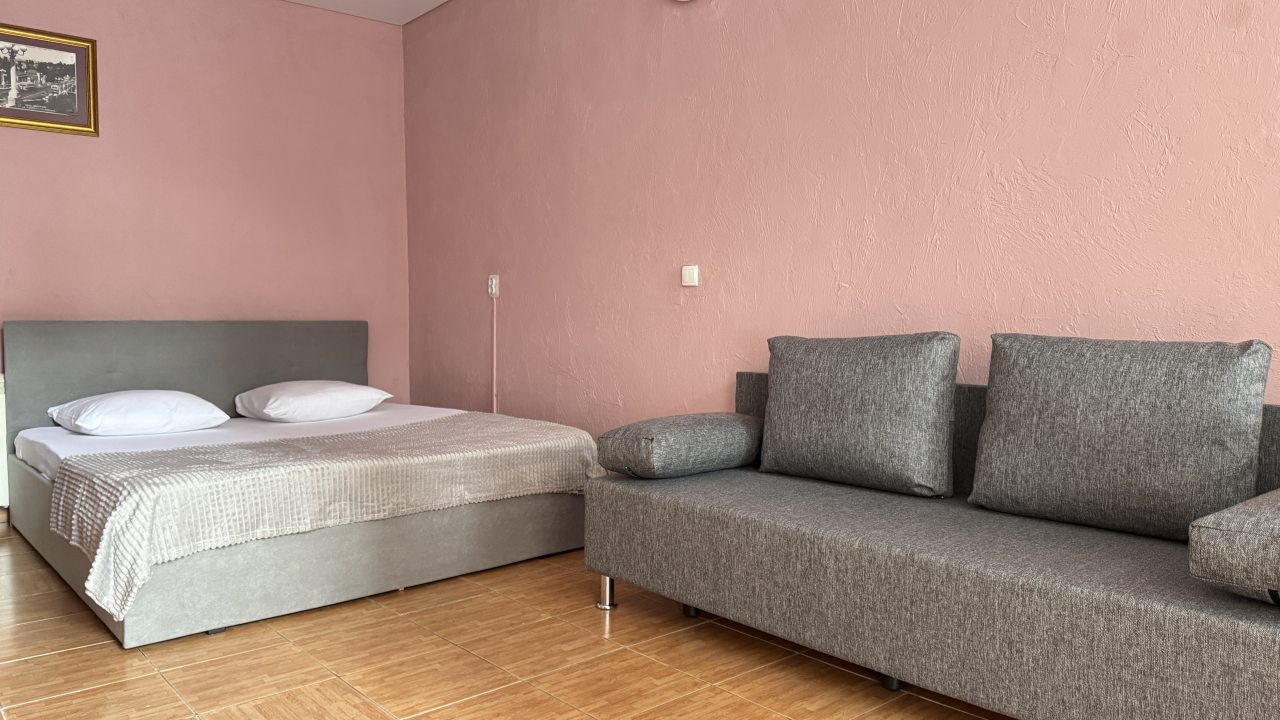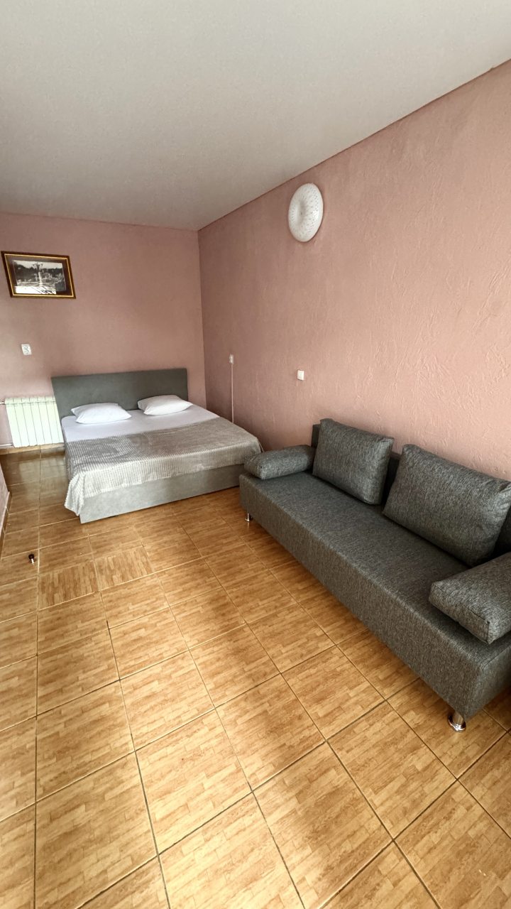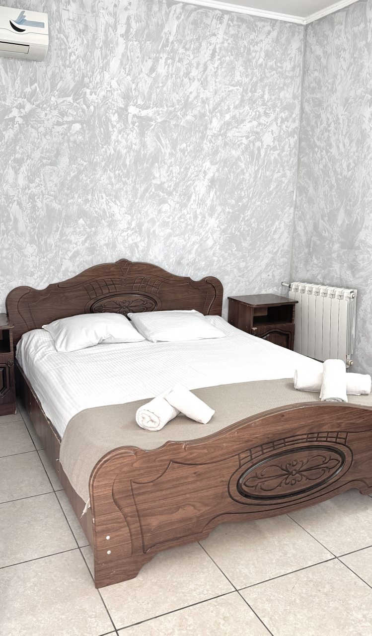Приезжали на отдых, всё очень понравилось- сам номер светлый, есть телевизор, кондиционер, холодильник. Душ и туалет в номере, хороший ремонт. В гостинице есть общая кухня, готовили там только завтраки, в течении дня питались в основном в кафе. Красивая и ухоженная территория. В шаговой доступности море, магазины, рестораны. Рекомендую.