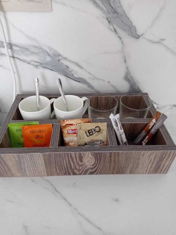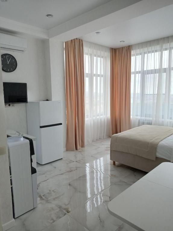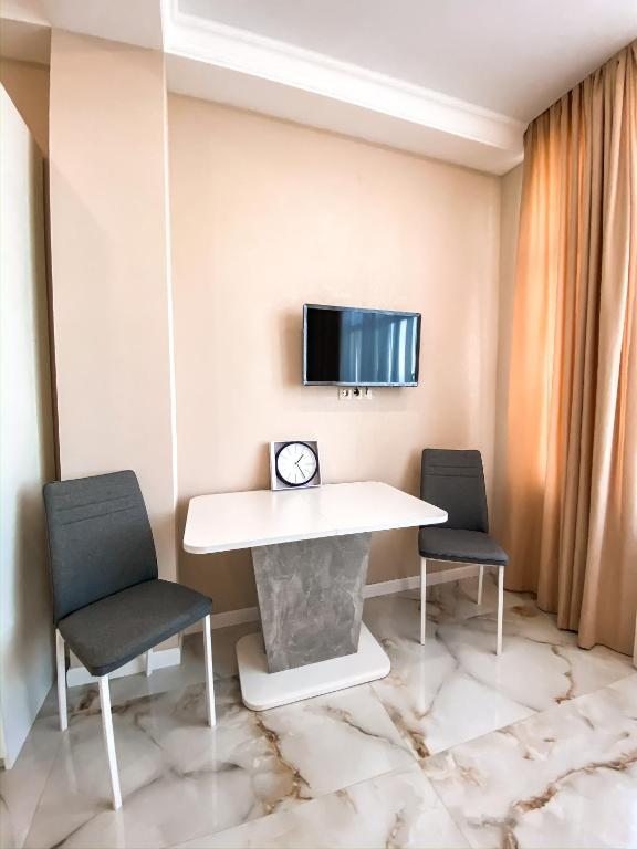Приготовить обед предлагается самостоятельно на кухне, оборудованной бытовой техникой и посудой. Альтернативой станут рестораны японской, американской и грузинской кухни, а также столовые и бары в шаговой доступности от объекта.