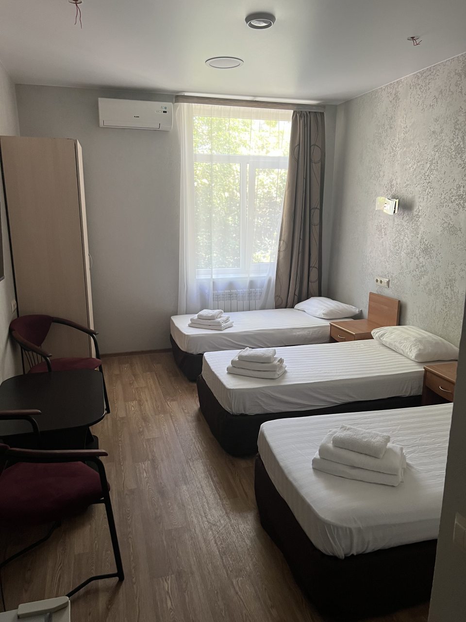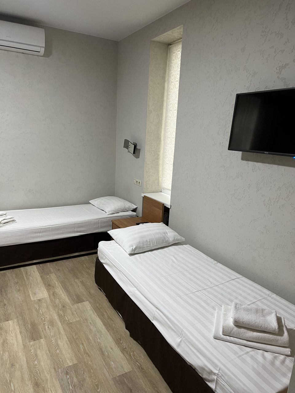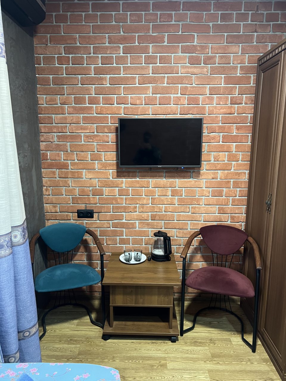В светлых и уютных номерах есть большая кровать, телевизор, личный санузел с душем. Для гостей имеются средства личной гигиены, а также выдаются полотенца и постельное белье. На территории мини-отеля бесплатный Wi-Fi.
