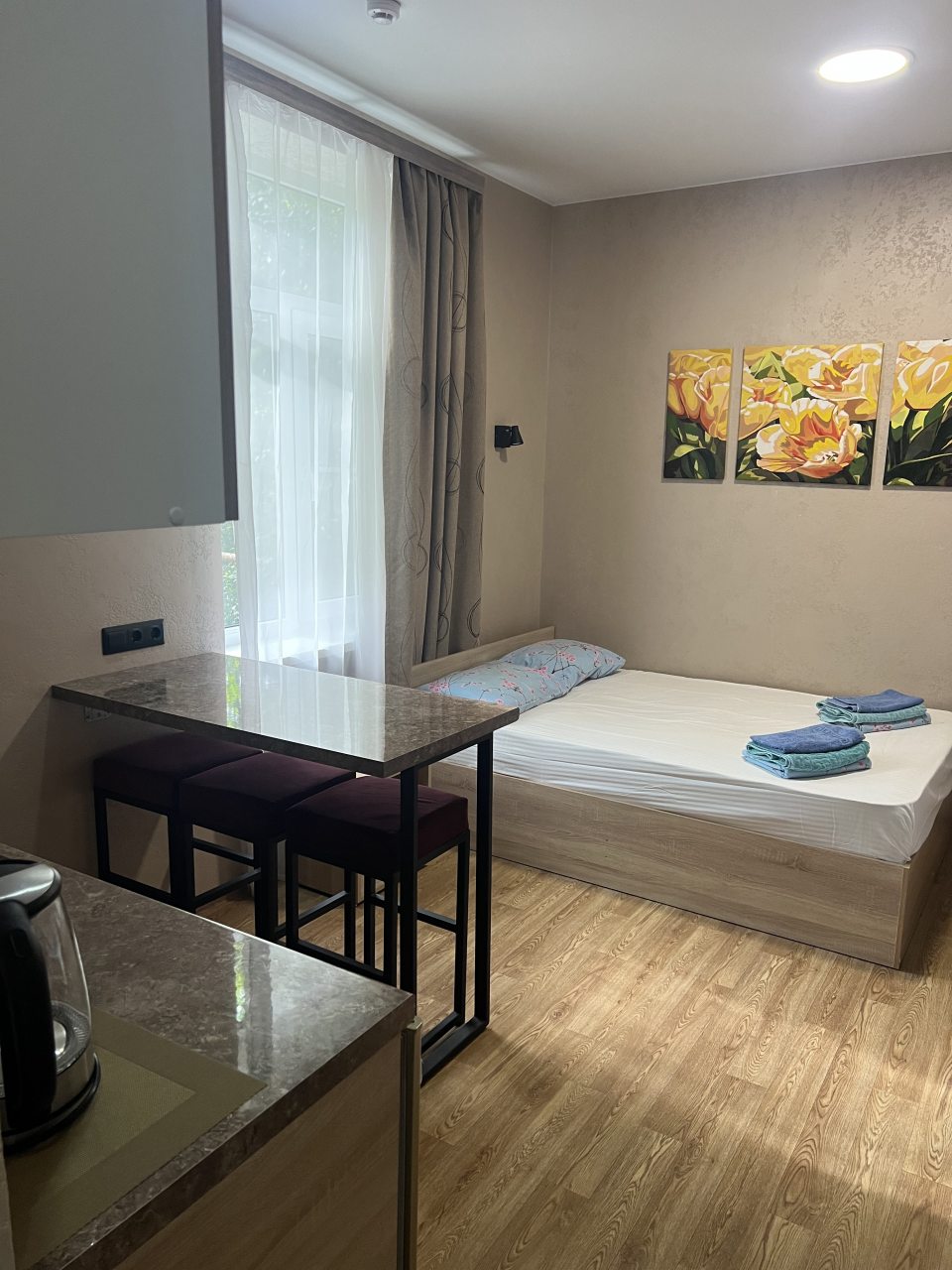 Отличное местечко, чтобы отдохнуть рядом с морем. Пешком спокойно можно дойти до него за 3-4 минуты, что очень здорово. Сам мини-отель был очень уютный, хорошо убран. Мы выбрали номер с кухней, чтобы готовить завтраки самостоятельно. Все было функционально и удобно. Рады, что выбрали именно его. Спасибо за радушный прием сотрудникам.