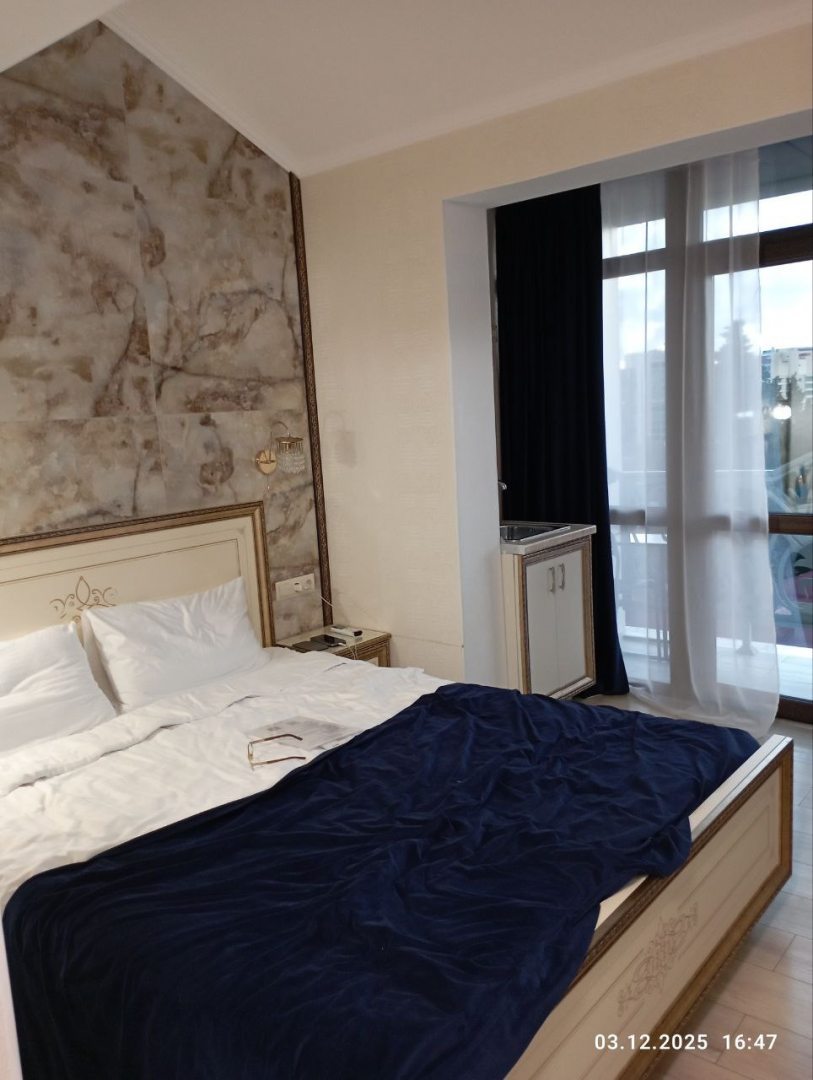 Приехали поздно ночью, заселились быстро. Номер точно как на фото. Вид в окошке шикарный. Море видно. Единственное, рядом было место для курения, я не выношу запаха табачного. Обратились к Александре ,попросили поменять номер. Прекрасный, отзывчивый администратор, пошла нам на встречу. Получили номер на третьем этаже с учётом всех наших пожеланий. Спасибо большое.
