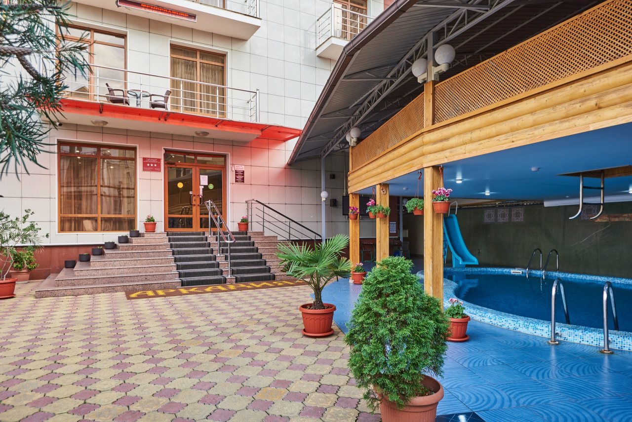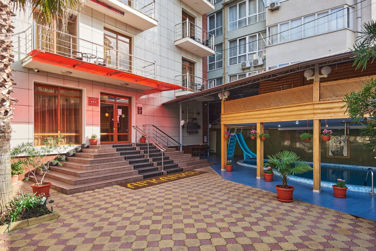 Всего в пяти минутах ходьбы находится пляж, а поблизости можно найти разнообразные заведения, предлагающие широкий выбор блюд. Магазин "Магнит" расположен в шаговой доступности. В номере удобная кровать и чистота, а персонал отличается приветливостью, вежливостью и внимательностью к гостям. На каждом этаже установлен кулер с возможностью выбора горячей или холодной воды. Бассейном не пользовалась из-за простуды, случившейся еще до приезда в Адлер. Считаю, что соотношение цены и качества превосходное, особенно учитывая несезонное время года.