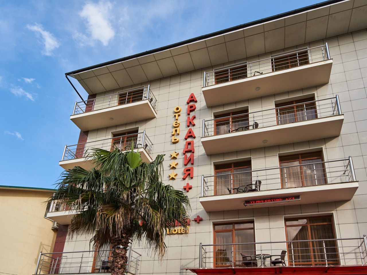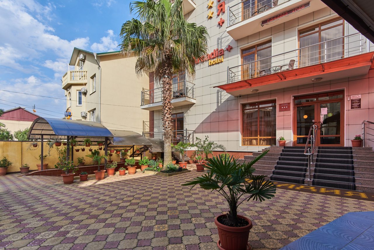 Отель «Аркадия + by Sun City Hotels» расположился в Адлере, в пешей доступности от пляжа и многочисленных мест отдыха в городе.