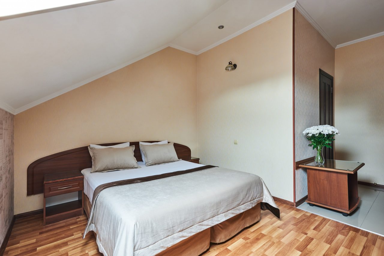 Номерной фонд включает в себя различные категории с размещением до четырёх гостей. Интерьер выполнен в классическим стиле, в тёплой цветовой гамме. Среди удобств Wi-Fi, кондиционер, телевизор, фен и собственная ванная комната.