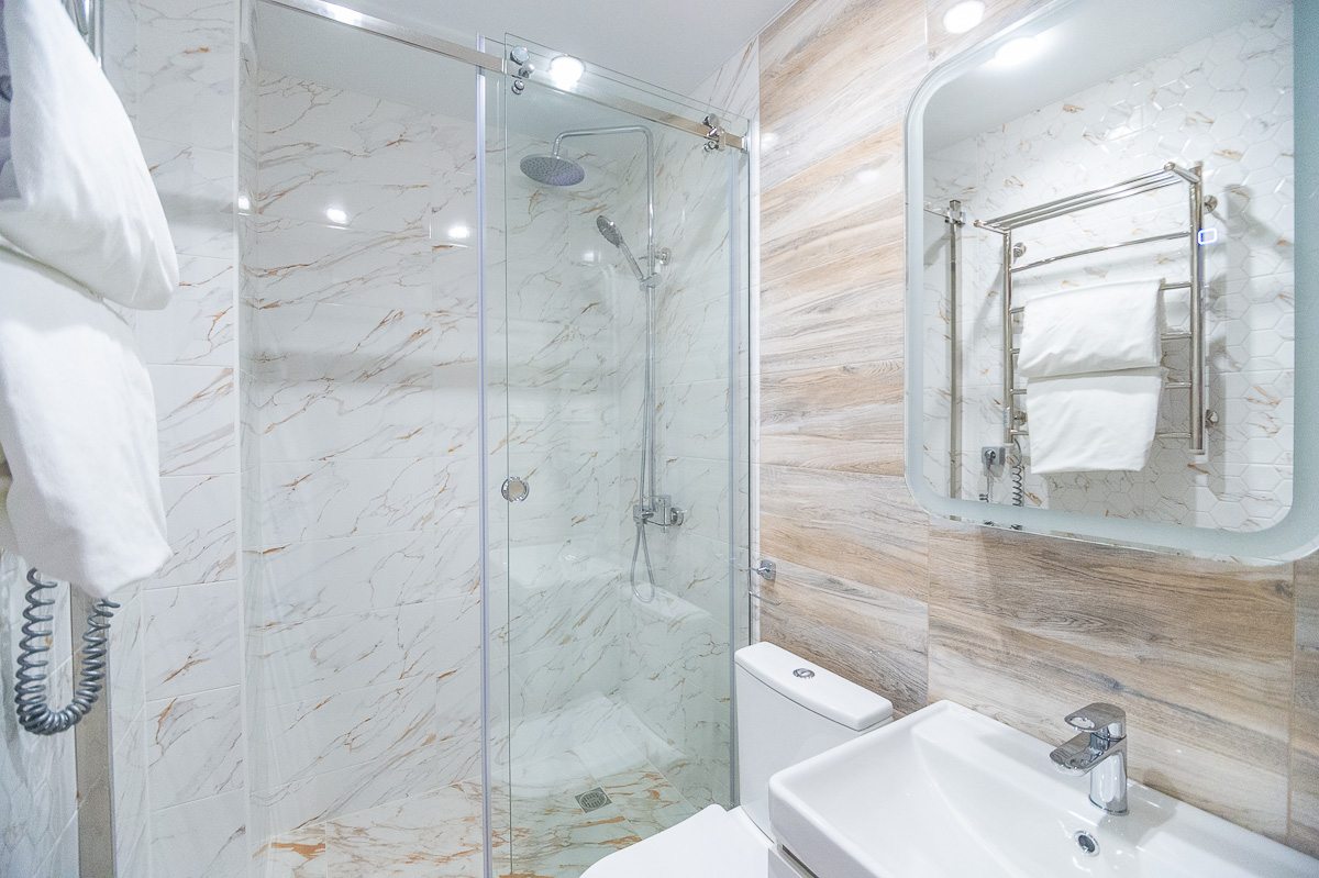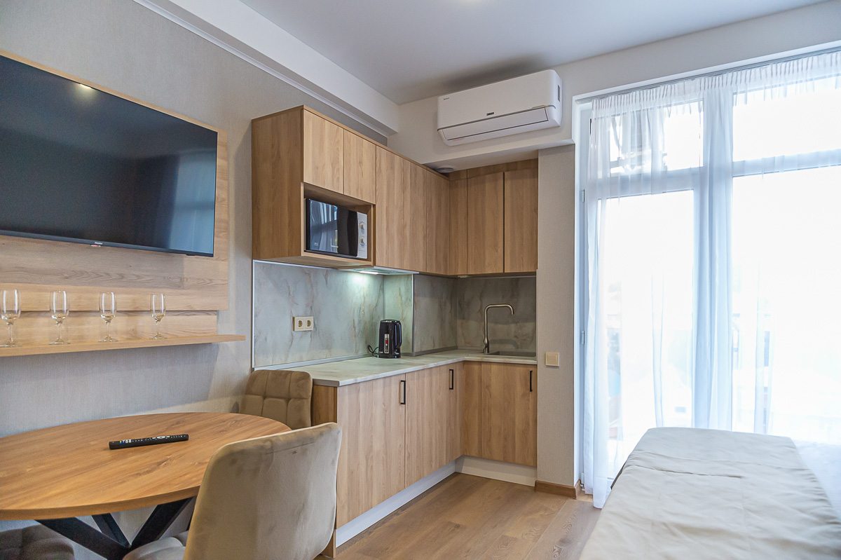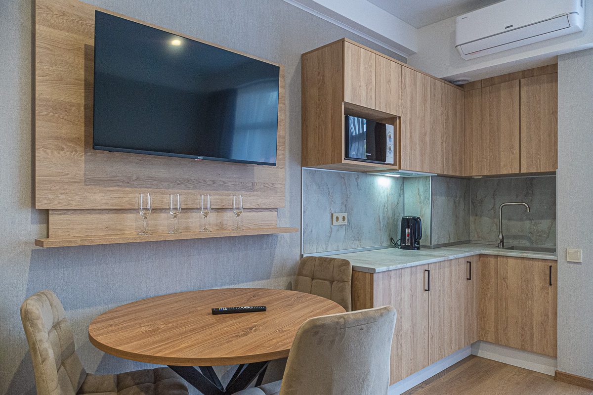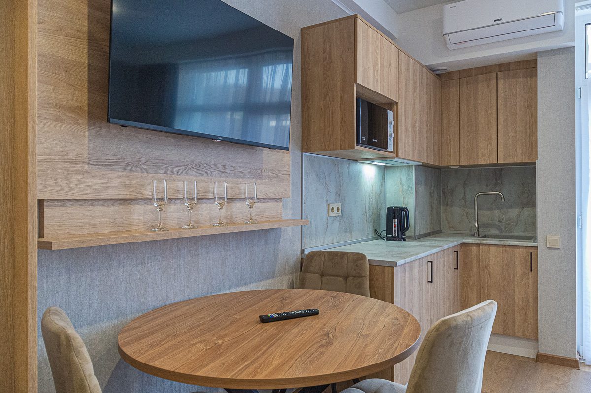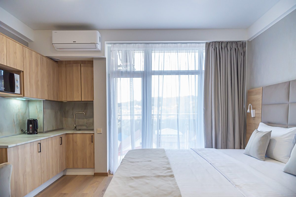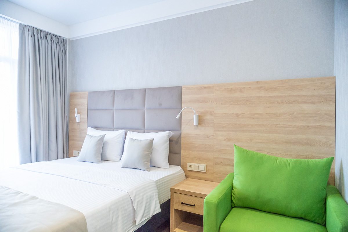 Расположена гостиница недалеко от моря, она оснащена классными номерами. У нас была большая двуспальная кровать и для ребенка мы раскладывали кресло. Удалось тут отлично провести свой отпуск. Еду готовили на кухне, которая полностью оснащена всей техникой. Мы ходили в баньку, а еще я приятно впечатлена панорамными видами с крыши отеля.