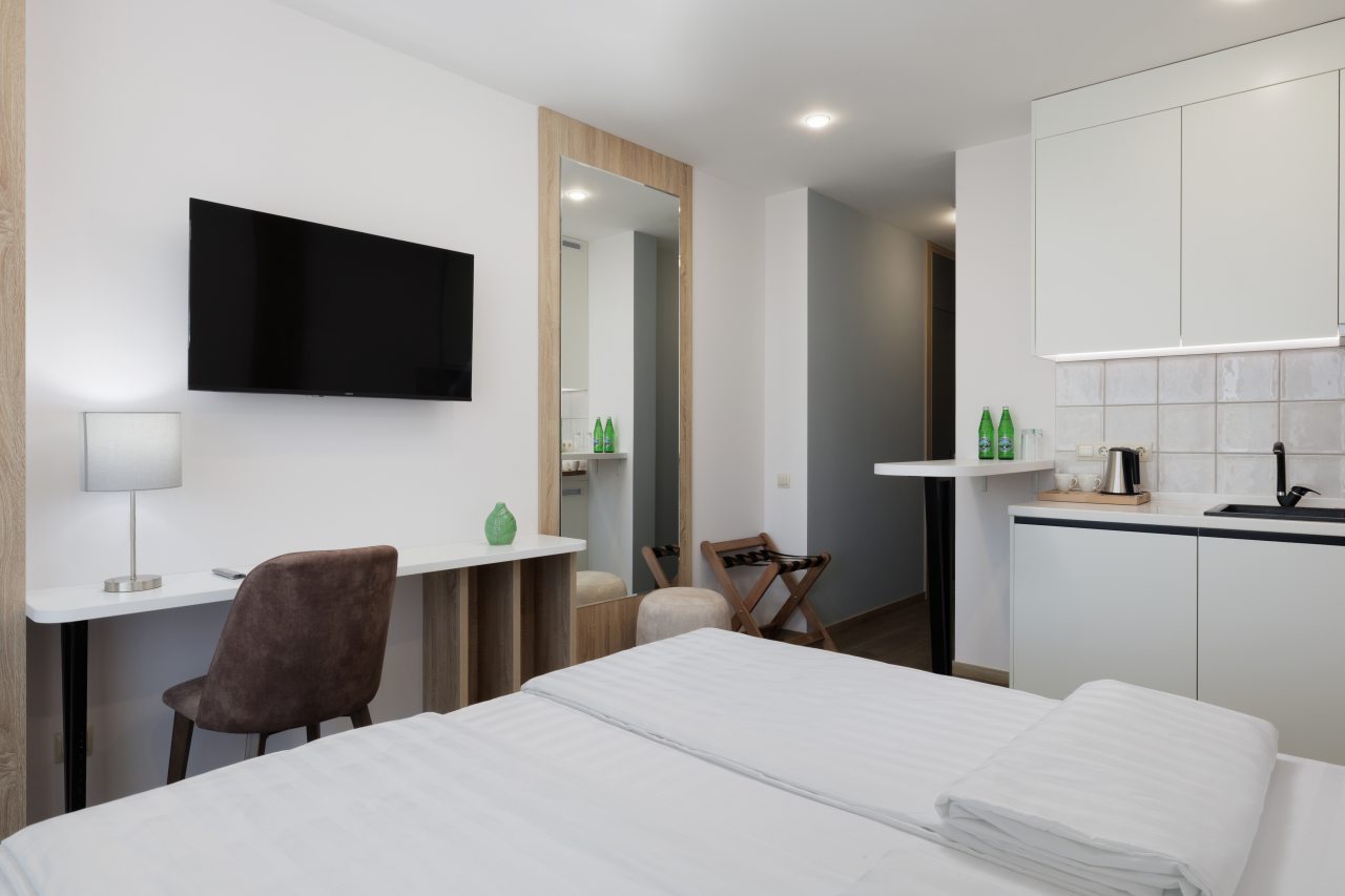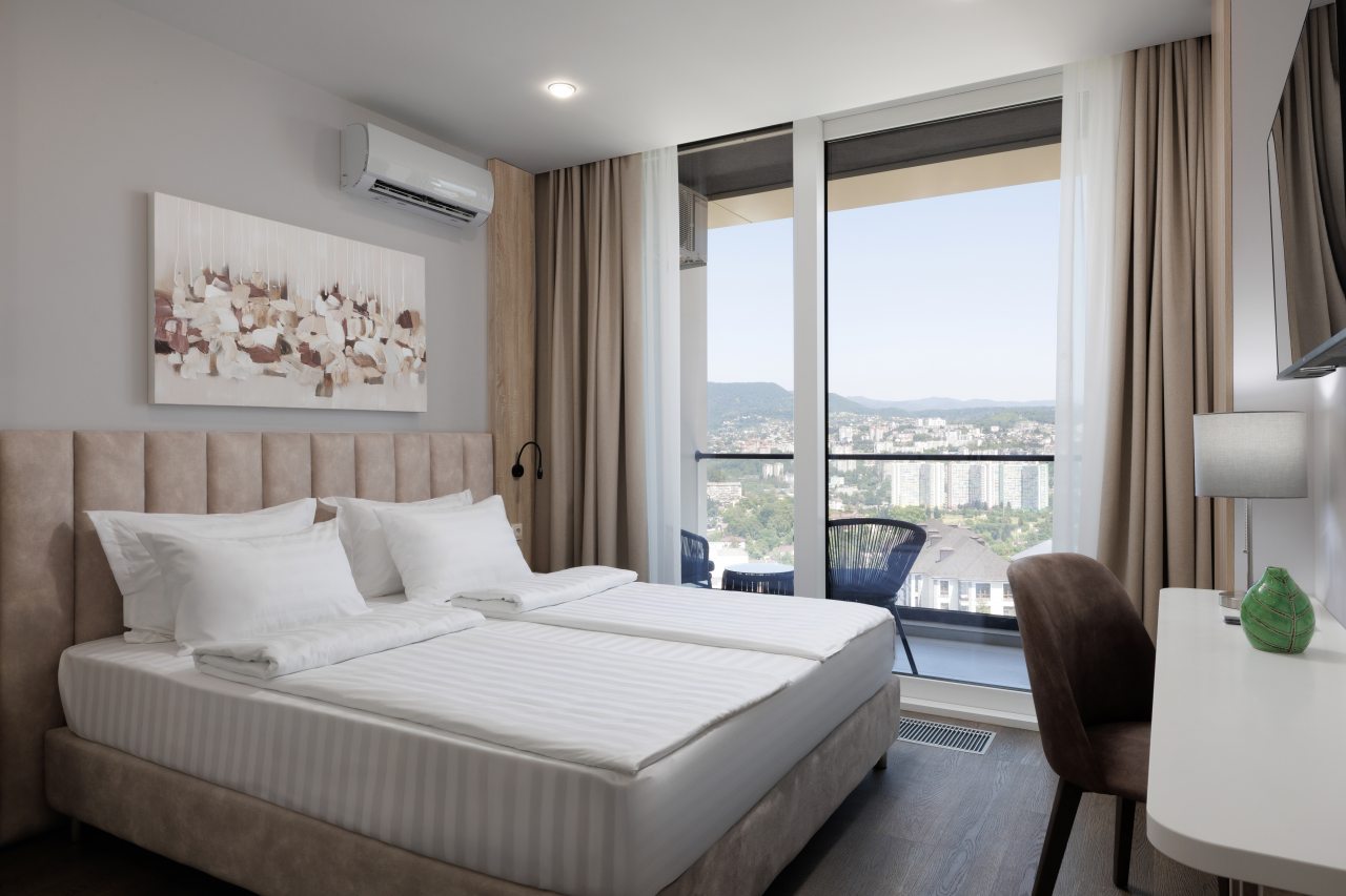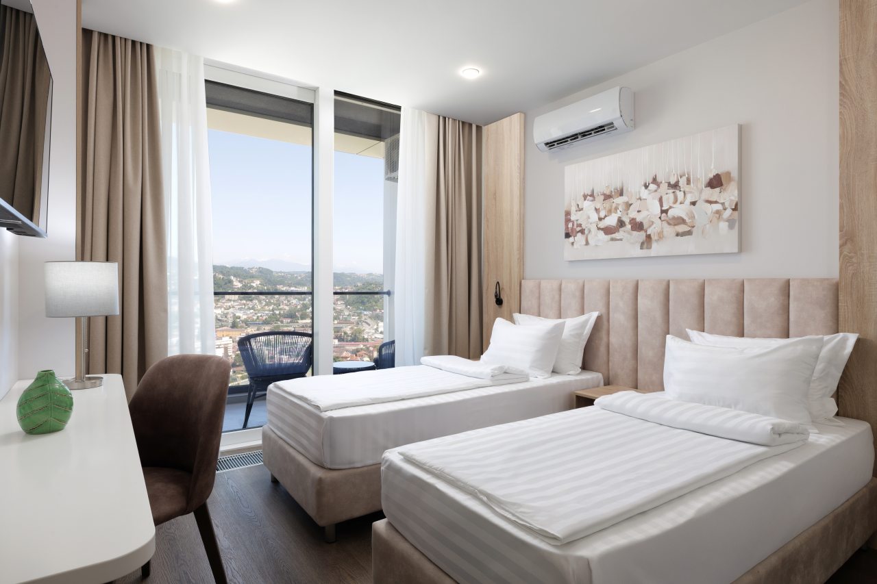 Номерной фонд отеля включает в себя 35 номеров различных категорий с современным оформлением и дизайном, что позволяет с легкостью подобрать подходящий для вашего пребывания. Для удобства гостей в каждом номере имеется кондиционер, телевизор и бесплатный доступ в интернет. В ванной предусмотрены все необходимые косметические принадлежности. Из окон открывается потрясающий вид на горы и море.
