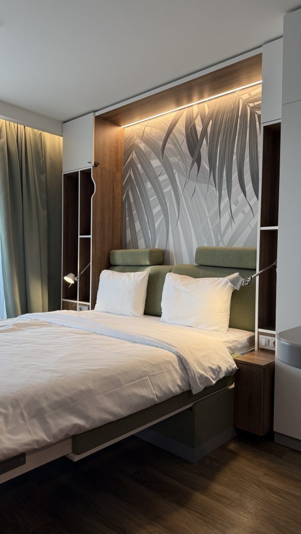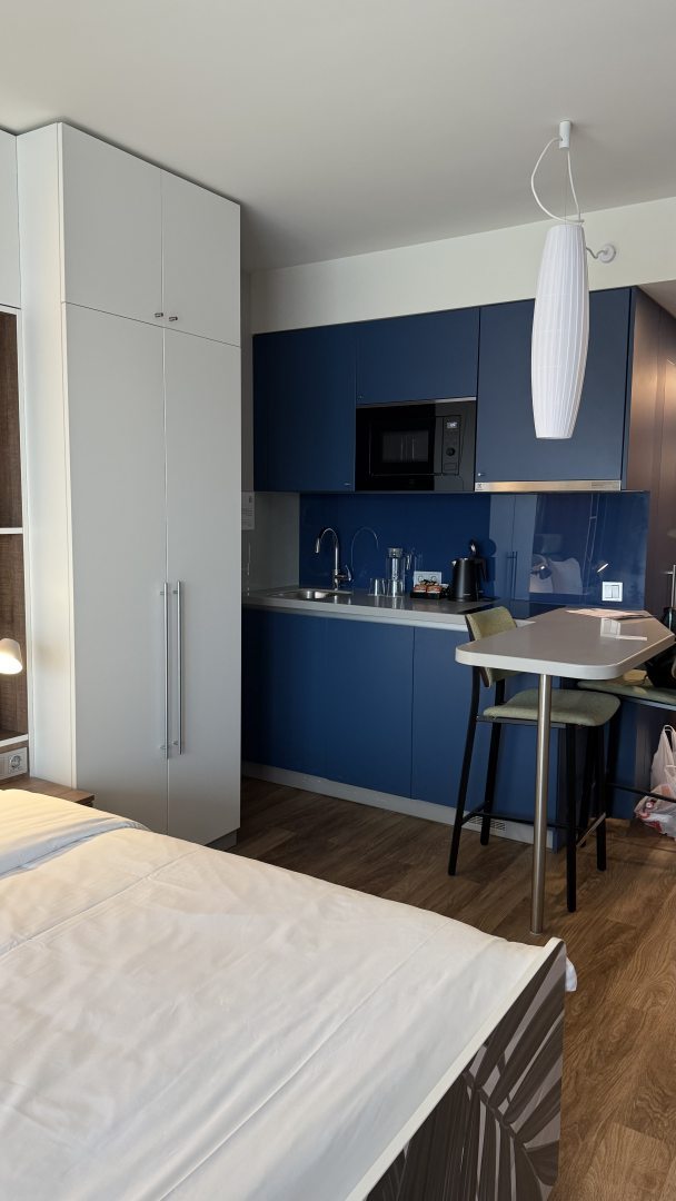 Функциональные аппартаменты, удобный матрас, чистота, комфорт. Спа зона великолепна! Завтраки вкусные, с рыбкой, шампанским и прочими вкусняшками. Рацион подойдёт всем, и ппшникам и любителям сладостей.