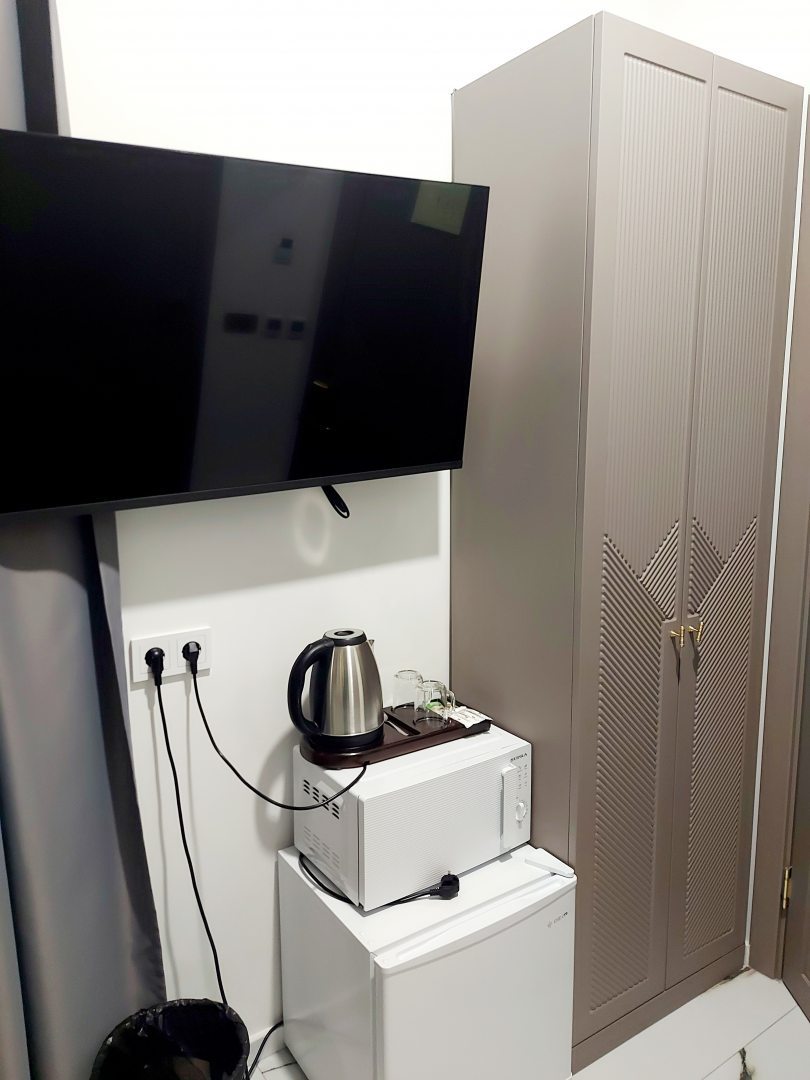 Уборка каждый день. Приветственная бутылочка с водой. В номере всё необходимое. Есть холодильник, микроволновка, чайник и столовая посуда, кондиционер. Освещение сенсорное, очень удобно. Матрасы, конечно, на любителя, слишком мягкие, но не критично. От ресепшн ведёт лестница, лифт с другой стороны здания и работает по магнитной карте. На пятом этаже терасса с обеденной зоной. Еда (завтрак) был на вынос. Представляет собой сет с напитком, кашей дня, салатом или яичницей, и либо сырник, либо блинчики к чаю. Не очень подойдёт, кто привык к изобилию шведского стола.