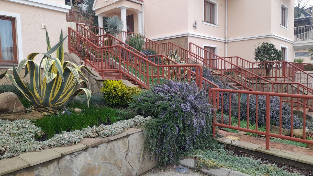 Отель «Ревиталь Парк» расположился в микрорайоне Приморье, в 0,7 км от пляжей Черного моря.