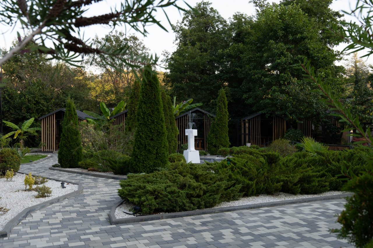 Здесь отдыхающие организуют свой досуг не просто с комфортом, но и с пользой для организма. Можно приятно провести время в бассейне или СПА-центре, попариться в бане, расслабиться в беседке или на шезлонге в зоне отдыха, организовать барбекю. Для детей установлена площадка с горками и качелями. Кроме этого, обустроен прогулочный парк вдоль речного русла. Расстояние до аэропорта «Сочи» — 48,1 км, до железнодорожного вокзала «Якорная Щель» — 1,4 км.