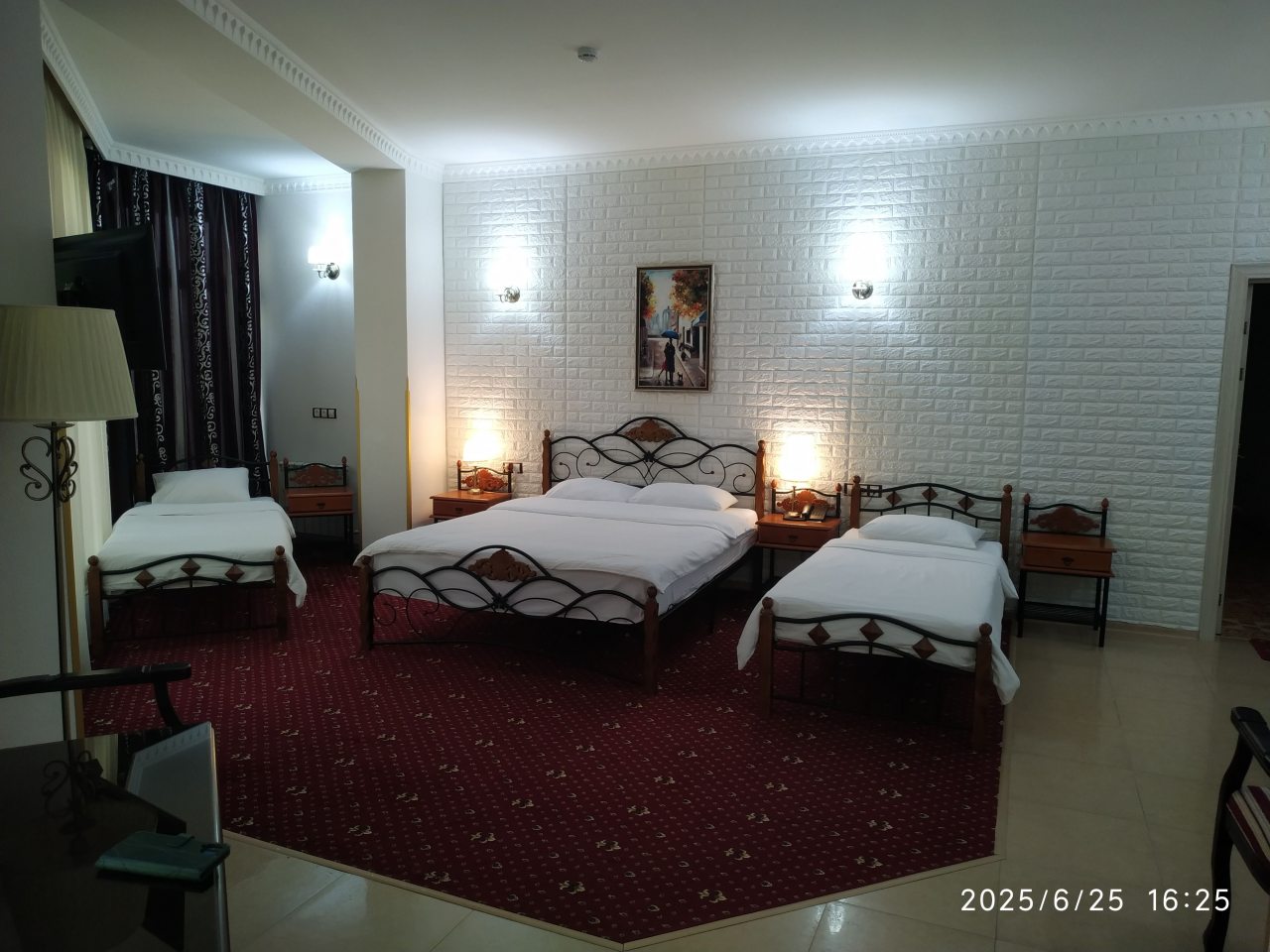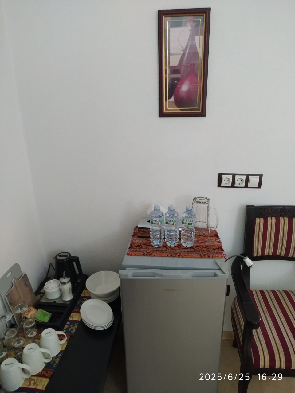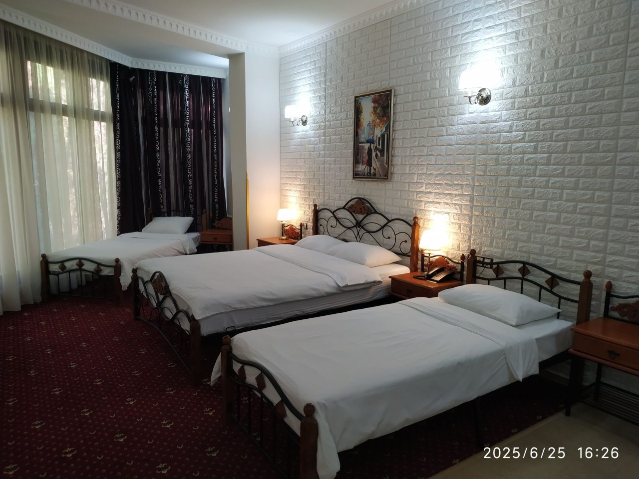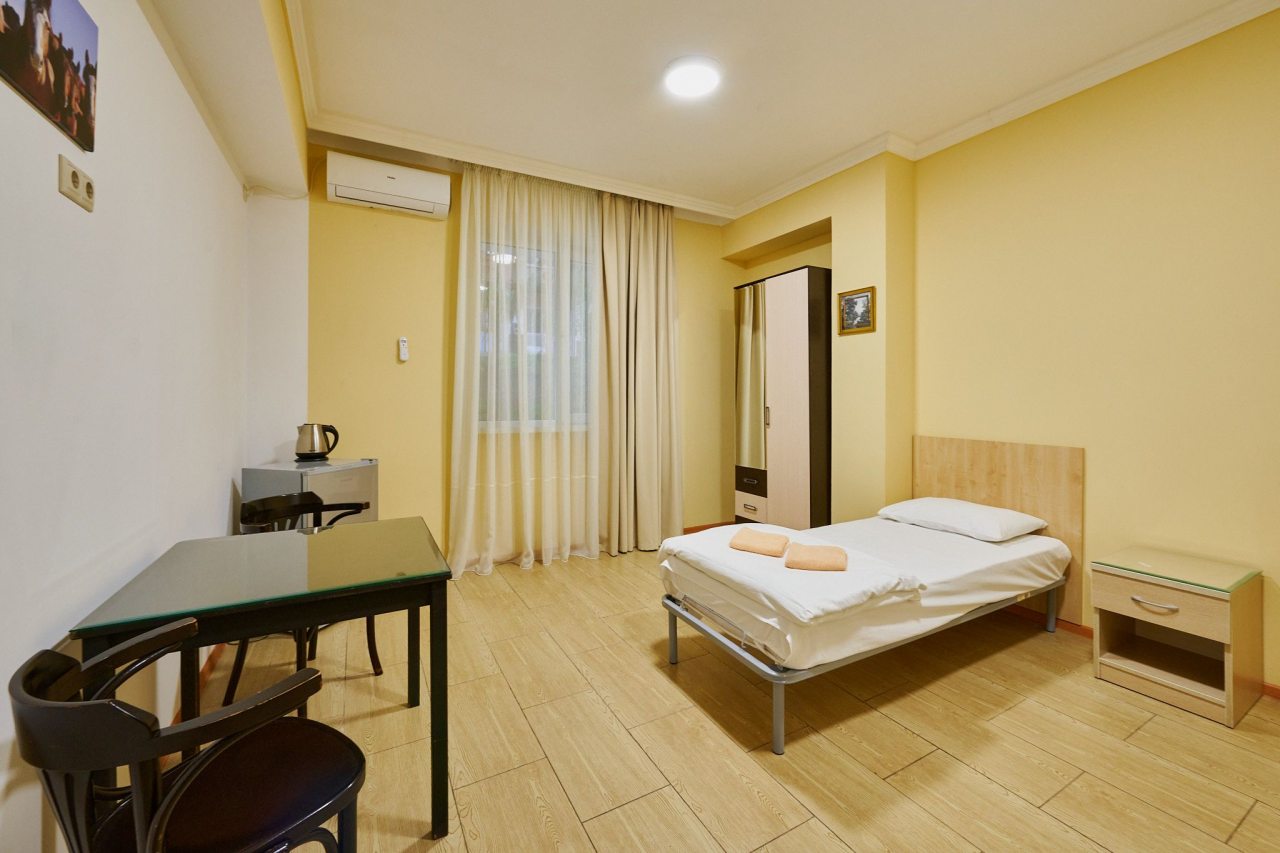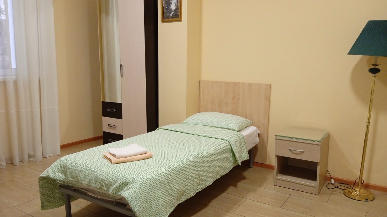 Уютненько. Брали трёхместный номер с тремя кроватями. Всё нам тут понравилось. Отдых в Сочи отличный оказался. И во многом благодаря условиям в отеле. Свой санузел, уборка, смена поленец и так далее. В общем, высыпались мы тут, помыться, постираться и снова гулять. Питания нет, но мы знали и планировали общепит.