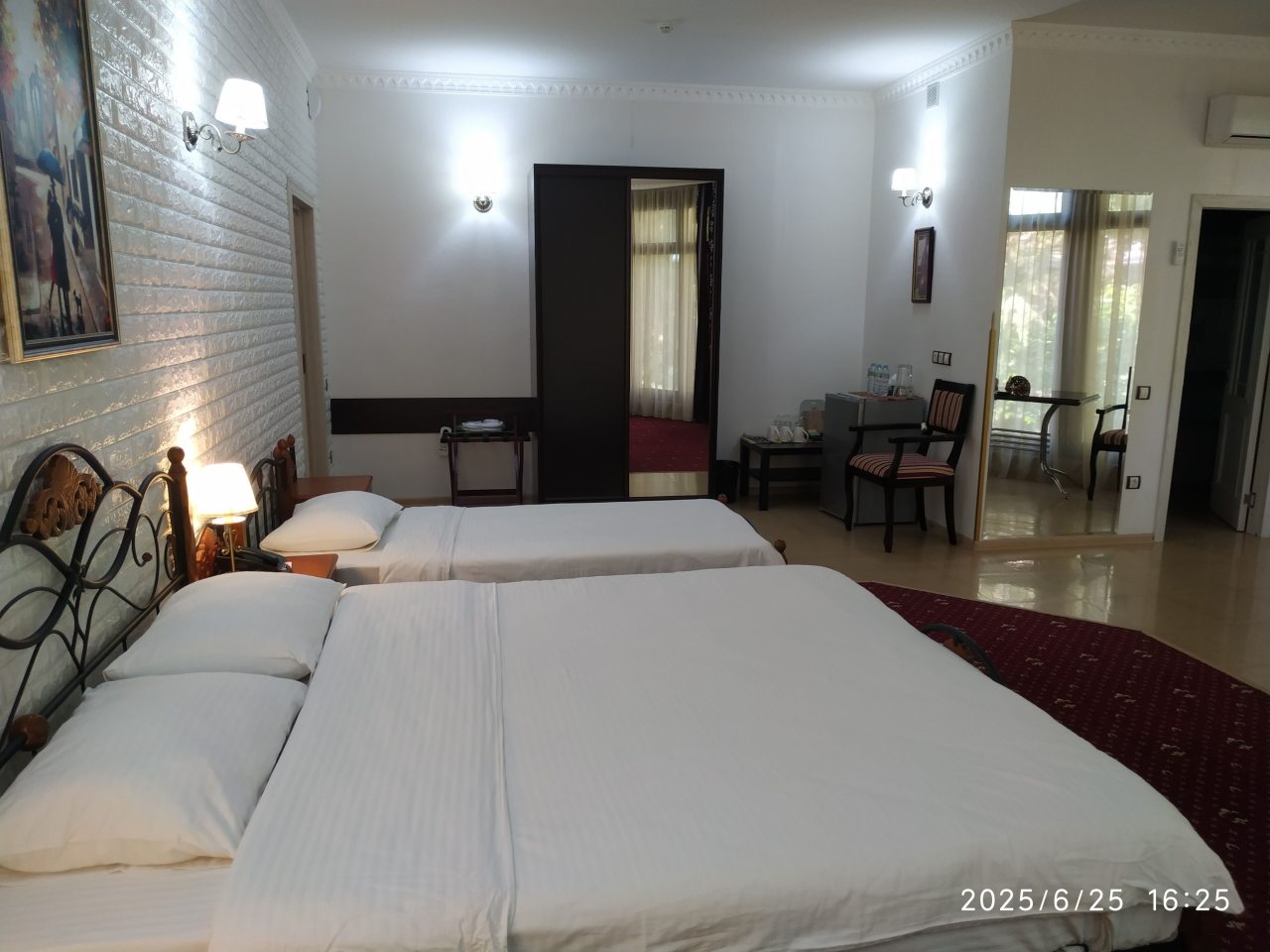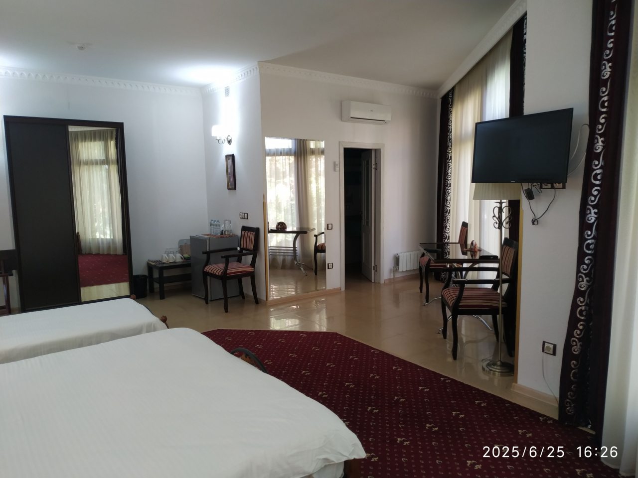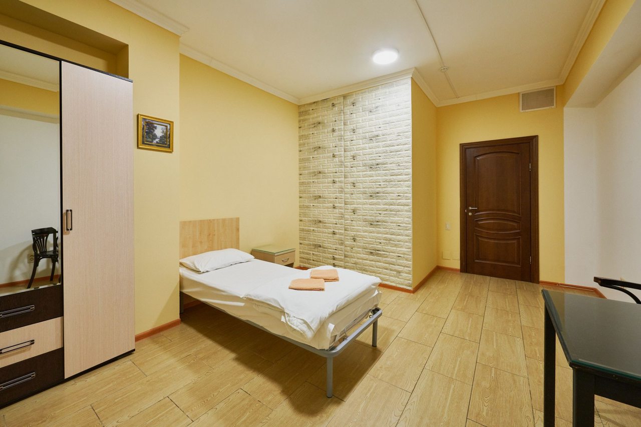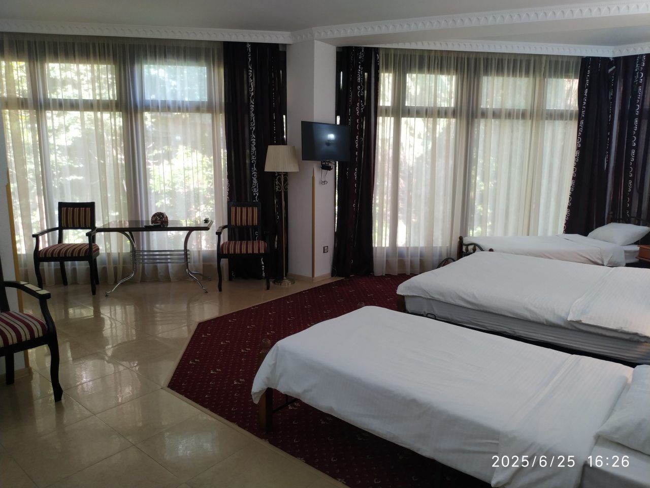 Уютненько. Брали трёхместный номер с тремя кроватями. Всё нам тут понравилось. Отдых в Сочи отличный оказался. И во многом благодаря условиям в отеле. Свой санузел, уборка, смена поленец и так далее. В общем, высыпались мы тут, помыться, постираться и снова гулять. Питания нет, но мы знали и планировали общепит.