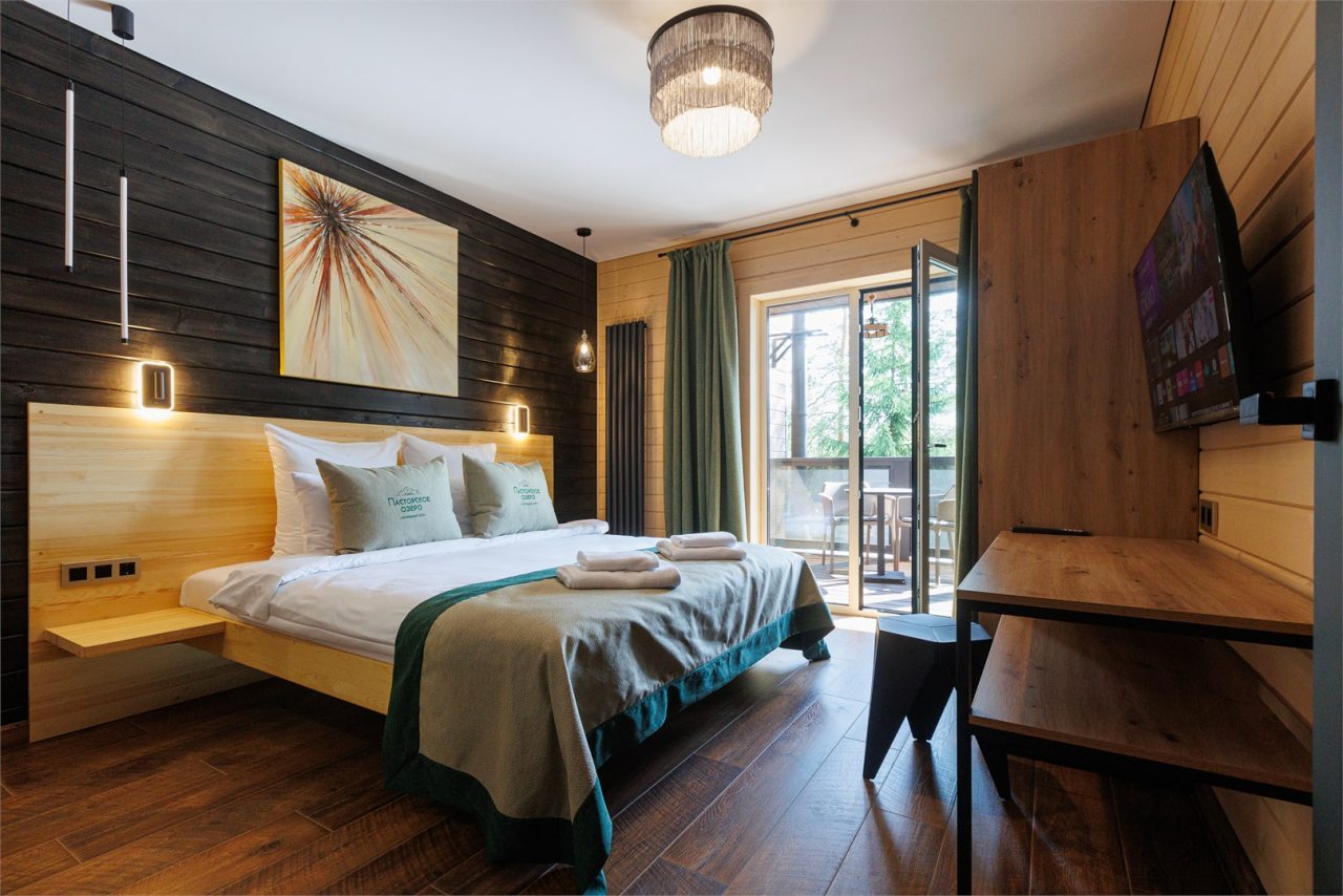 Сильное впечатление производит природа вокруг: лес, свежий воздух, и полное ощущение загородного отдыха. Вечером здесь царит особое спокойствие, словно находишься вдали от привычной суеты. Номера чистые, со вкусом оформленные, приятно находиться внутри. Удобно приехать компанией или семьёй, есть где посидеть и пообщаться. Атмосфера лёгкая и расслабляющая, заряд энергии чувствуется сразу. Ребёнку понравилось играть на территории.