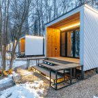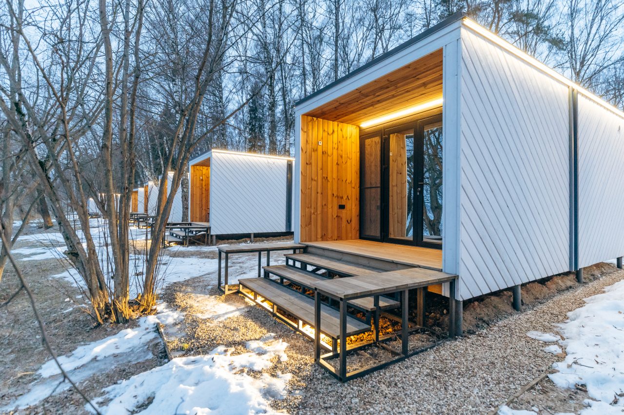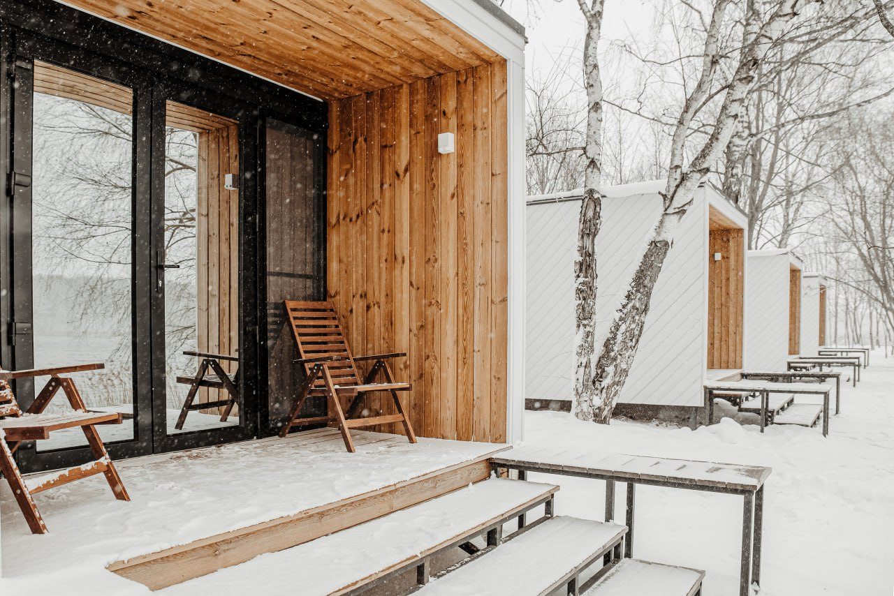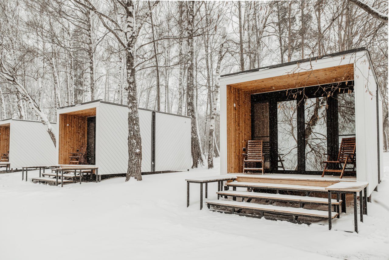 Для размещения предлагаются уютные мини-домики в форме куба с панорамными окнами и собственной верандой с креслами, а также предусмотрены удобные спальные места со свежим постельным бельем, отоплением, розетками и Wi-Fi. На улице установлен общий биотуалет с умывальниками. Душ находится в отдельном эко-модуле рядом, что позволяет беречь природу. Для комфорта гостей предоставляются гигиенические принадлежности, набор полотенец и фен.
