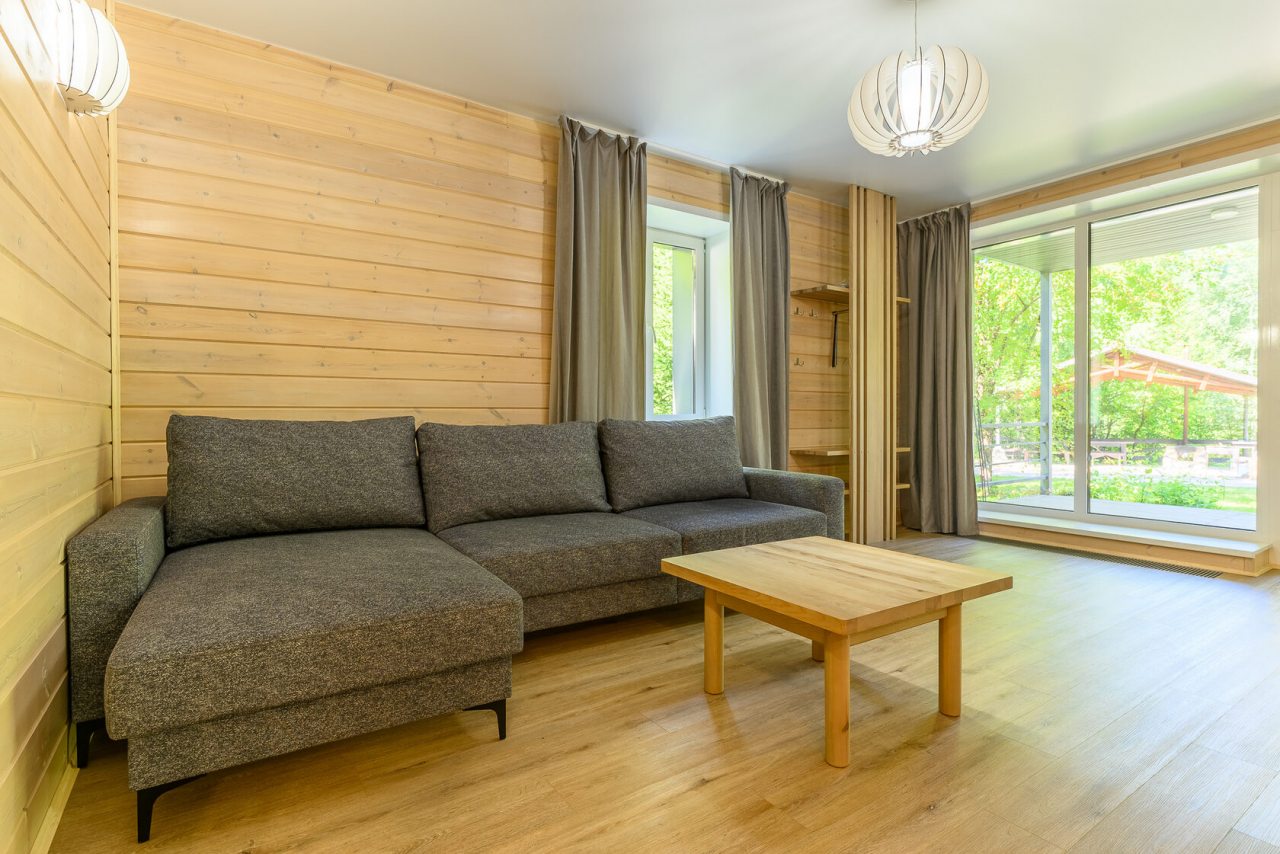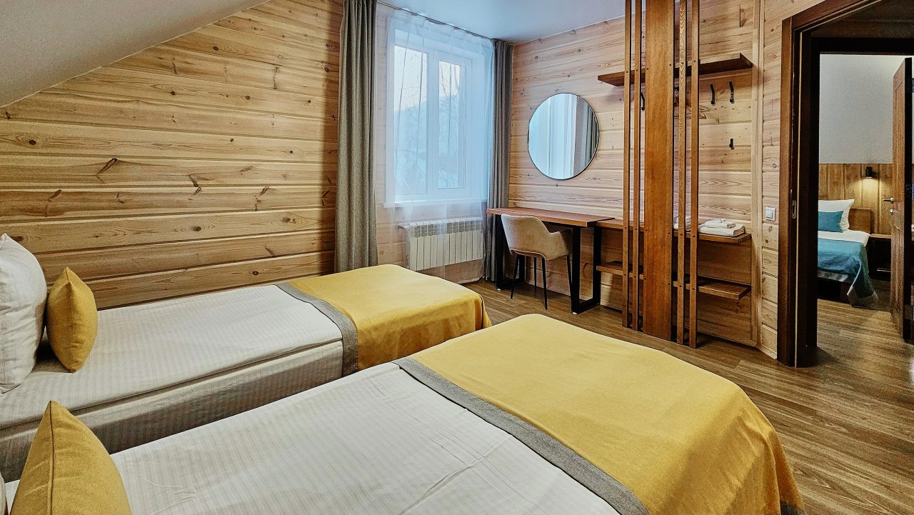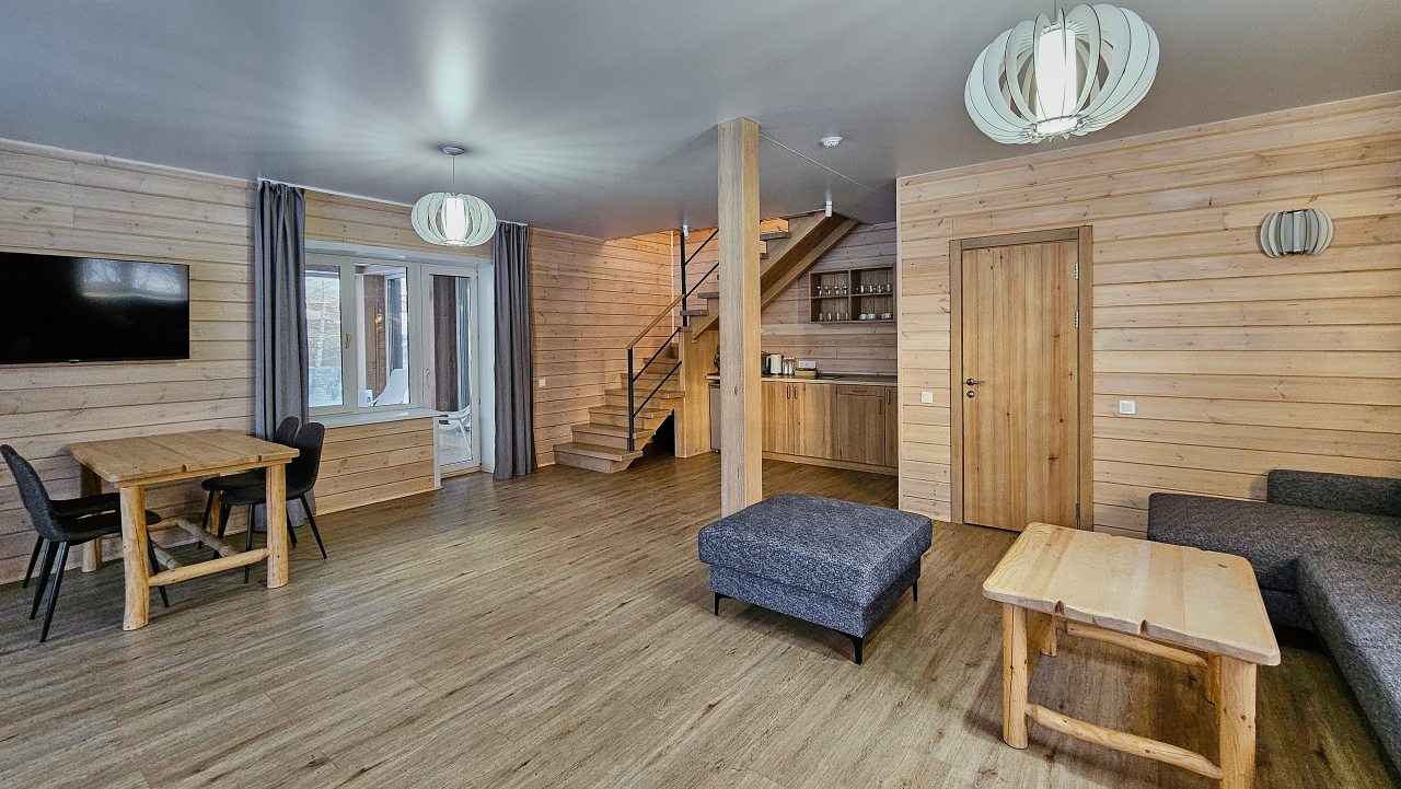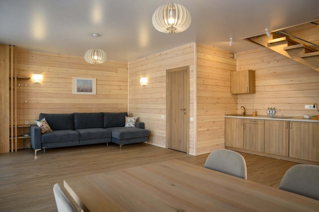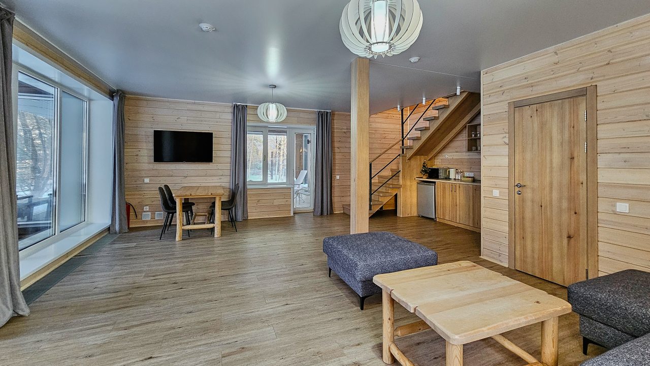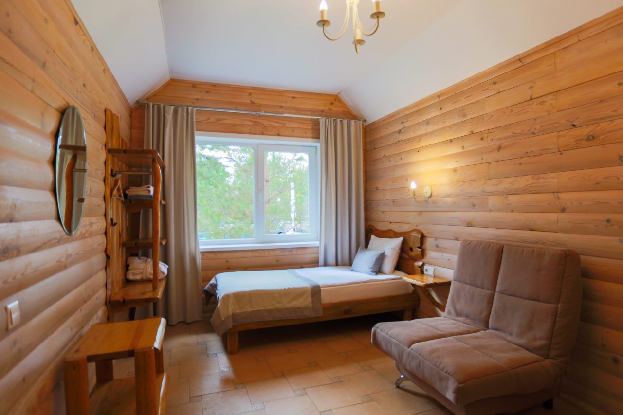 Территория восьми гектаров разделена на отдельные зоны, благодаря чему обеспечивается приватность. Для размещения представлено 39 номеров: роскошные шале, вместительные коттеджи и кедровые домики, построенные из экологически чистых материалов. Каждый из выбранных вариантов оснащен качественной мебелью, техникой и собственной ванной комнатой. Вместительность зависит от выбранной категории — от двух до восьми гостей, что идеально как для пары любых возрастов, так и семей с детьми.