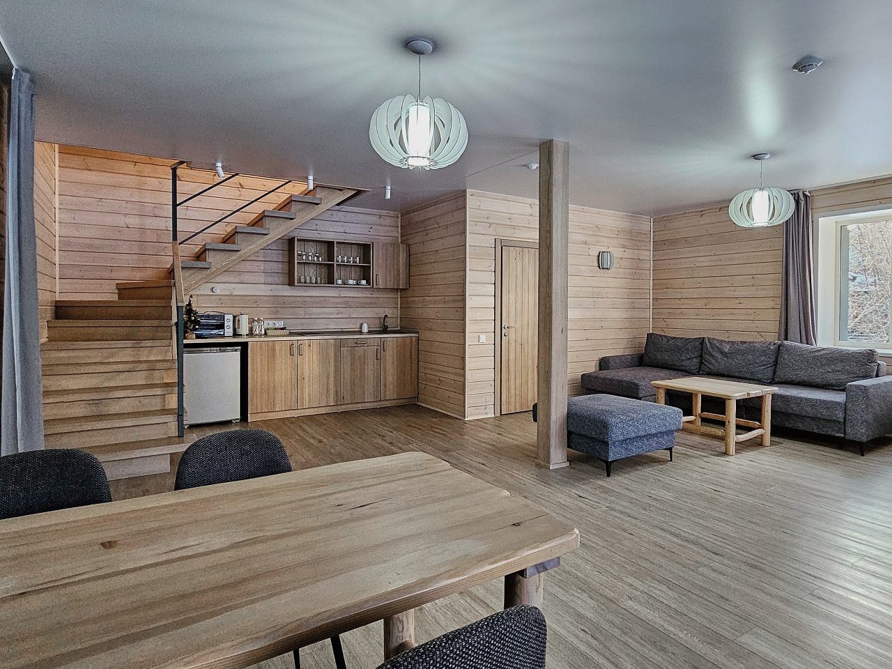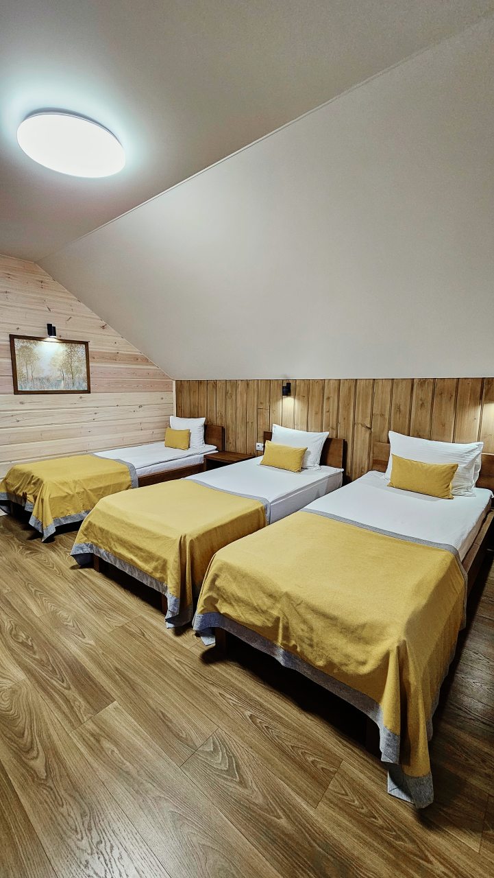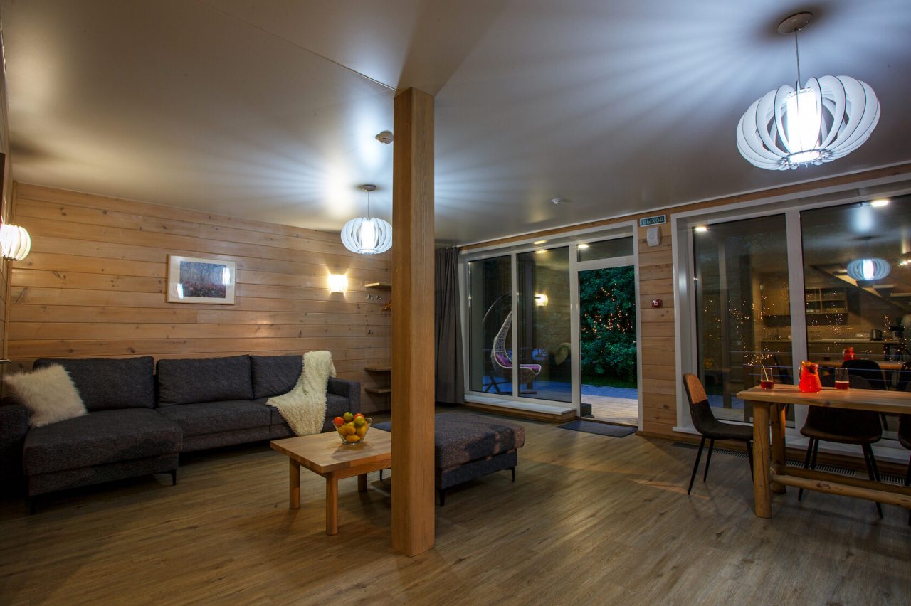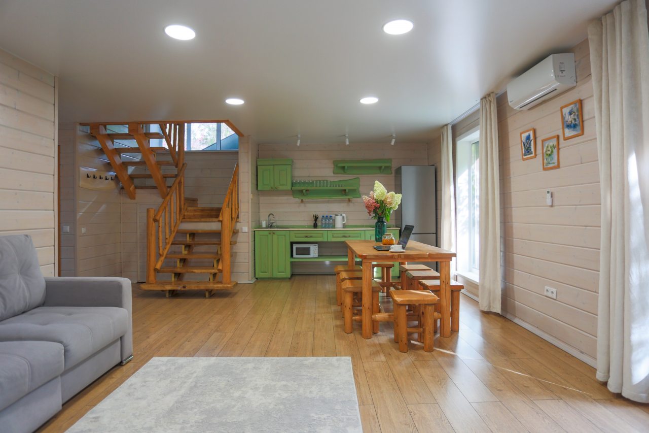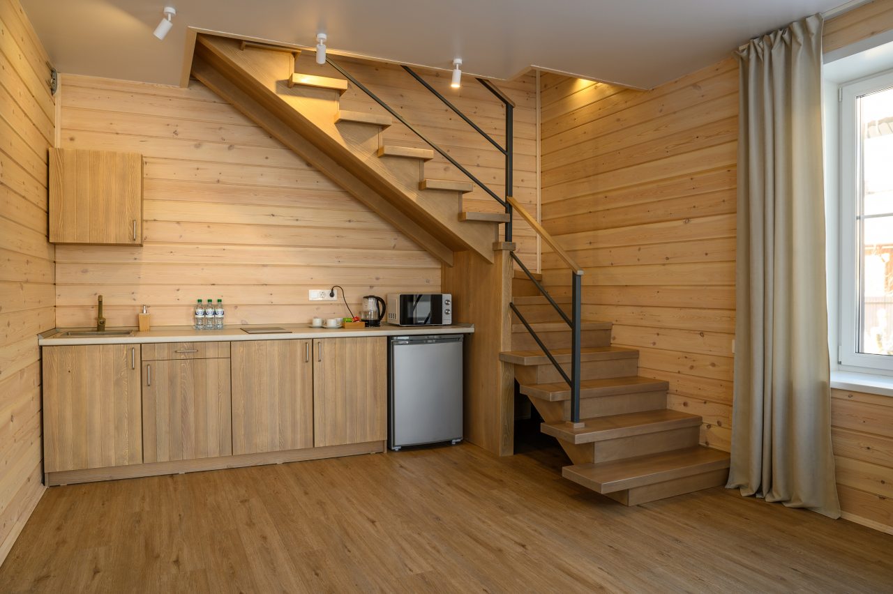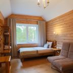 Территория восьми гектаров разделена на отдельные зоны, благодаря чему обеспечивается приватность. Для размещения представлено 39 номеров: роскошные шале, вместительные коттеджи и кедровые домики, построенные из экологически чистых материалов. Каждый из выбранных вариантов оснащен качественной мебелью, техникой и собственной ванной комнатой. Вместительность зависит от выбранной категории — от двух до восьми гостей, что идеально как для пары любых возрастов, так и семей с детьми.