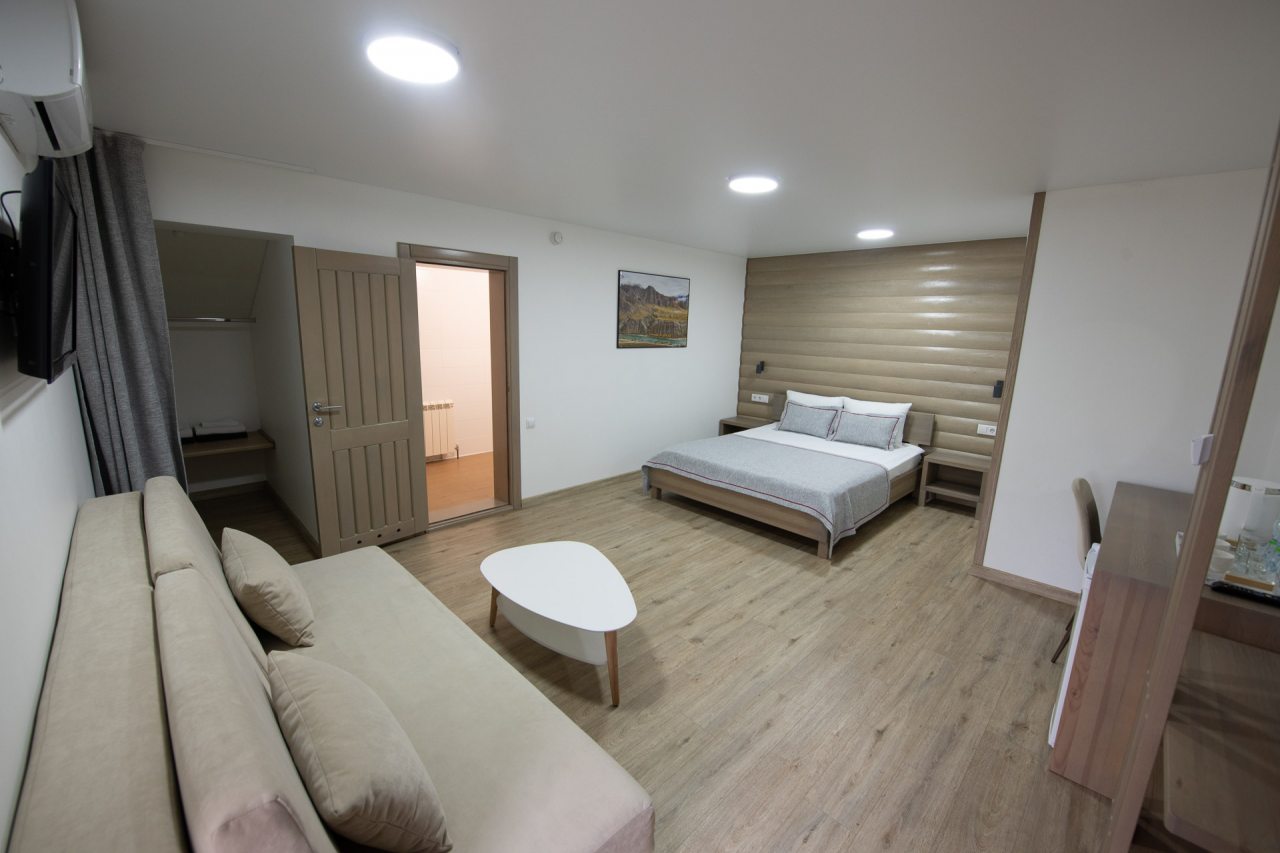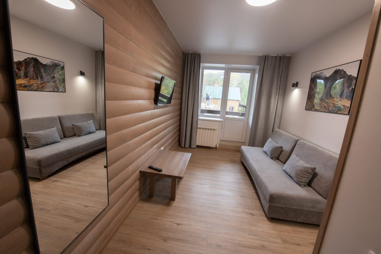 Из недостатков: жили в гостевом доме Горный-2. Номер не выделялся чистотой, за 4 дня проживания никто ни разу не приходил убраться. Особенно отталкивало состояние обивки кресла, на нем было много разводов и стоял неприятные запах. Так что кресло использовали только для выветривания и сушки мокрых вещей (возможно все предыдущие постояльцы так делали, отсюда и состоящие кресла)))))