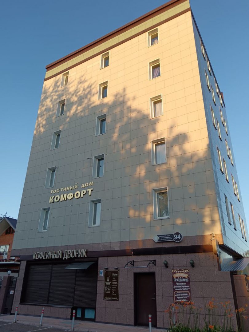 Отель «Комфорт» расположен в исторической части города Стерлитамака, всего в 492 м от реки Ашкадар, что позволяет без труда добраться как до северной, так и до южной части города. Ко всему прочесу гостей приятно порадует парковая зона, которая окружает отель. На территории есть парковочная зона для автомобилей.