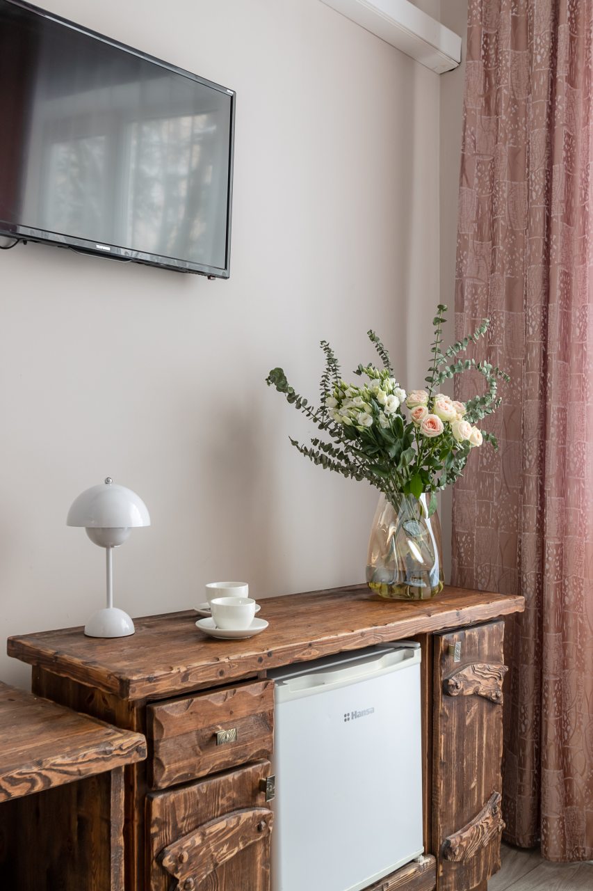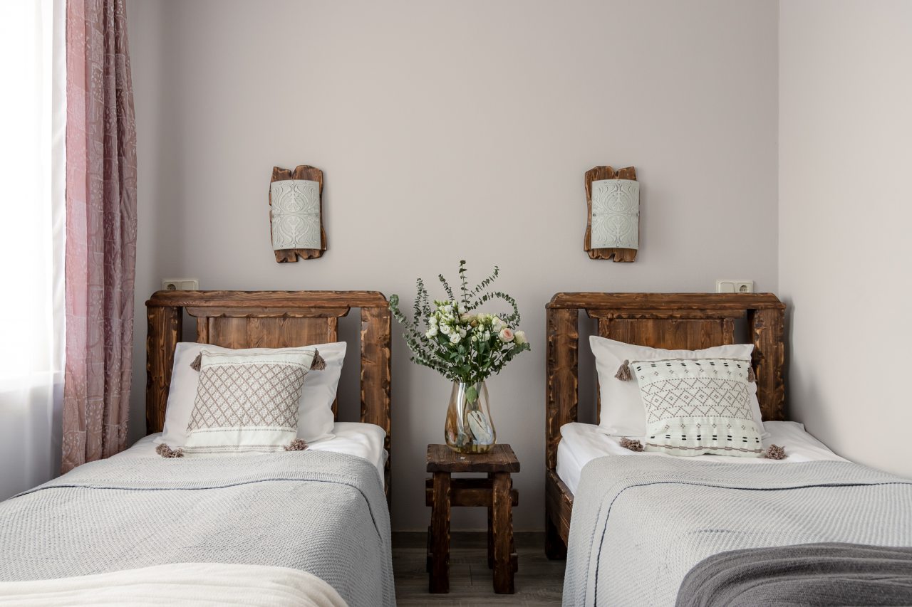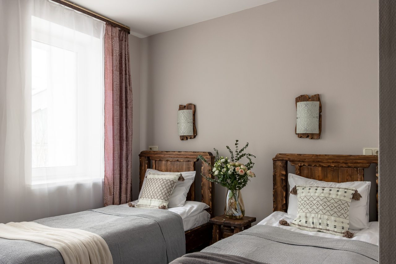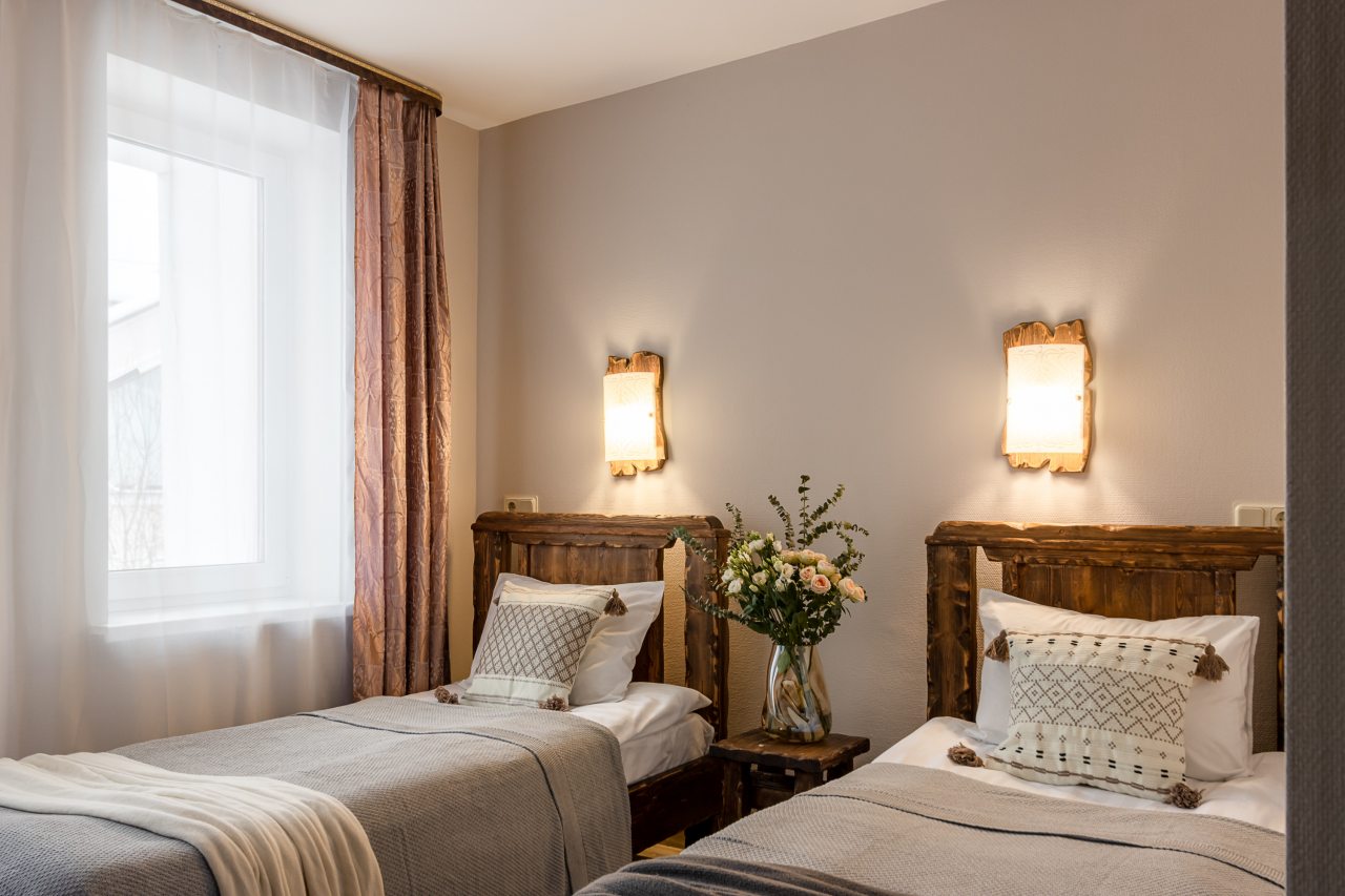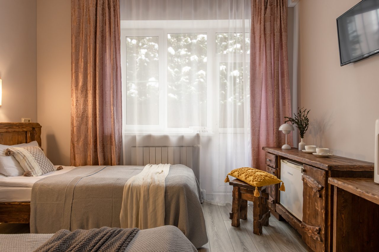 Для размещения предоставлены 17 двухместных номеров, которые оснащены необходимой для комфортного проживания мебелью и бытовой техникой: телевизор, удобные спальные места, комплект полотенец, шкаф для хранения личных вещей, зеркало. В санузле есть индивидуальные средства гигиены и фен.
