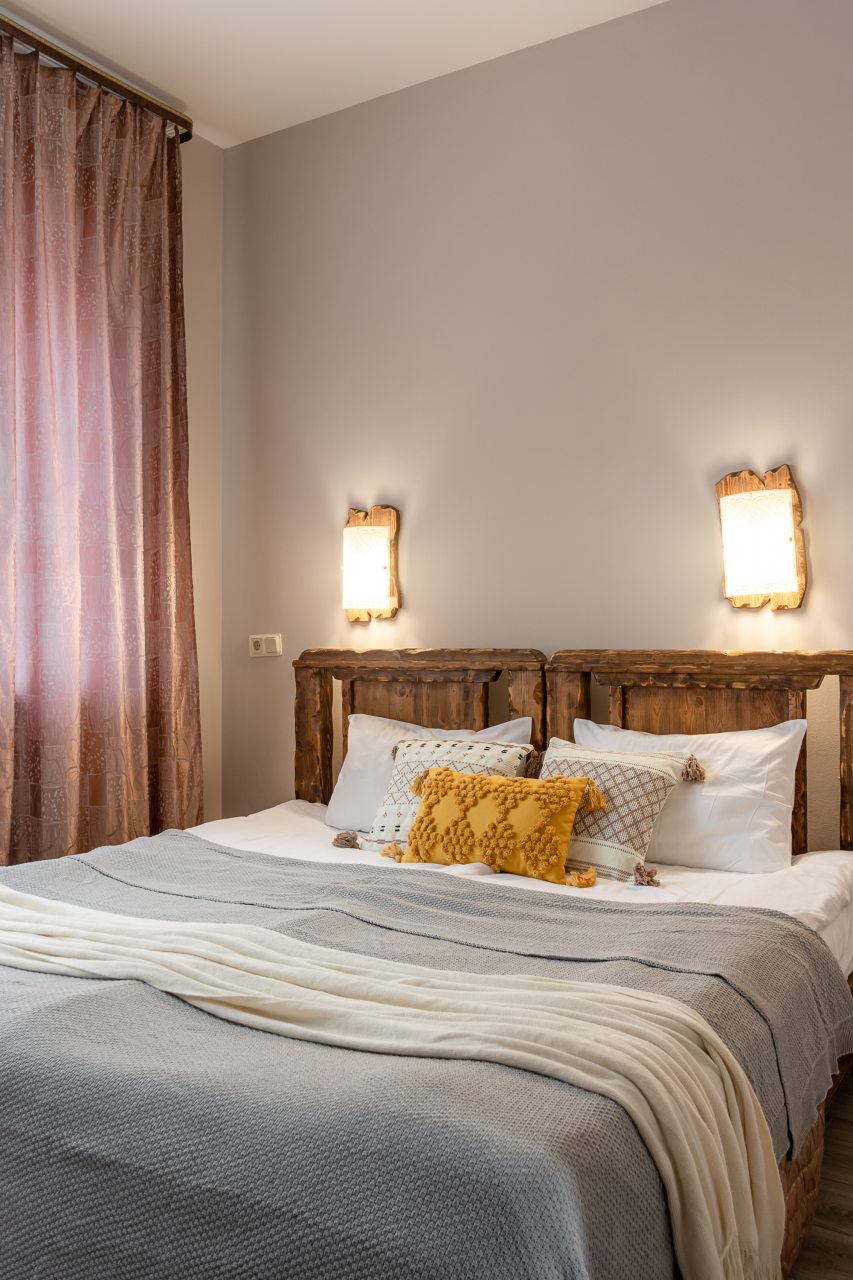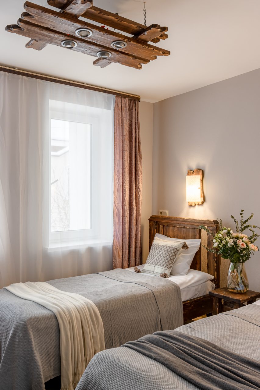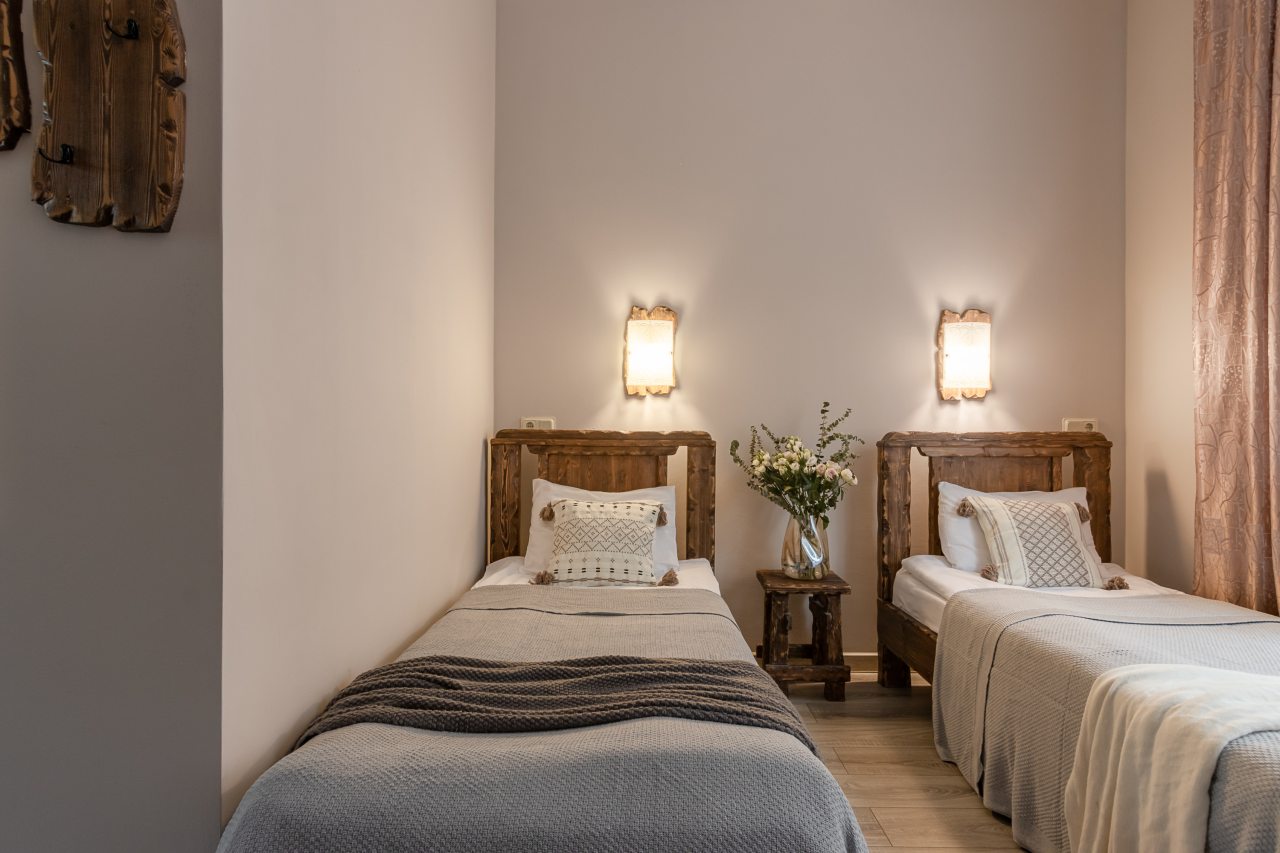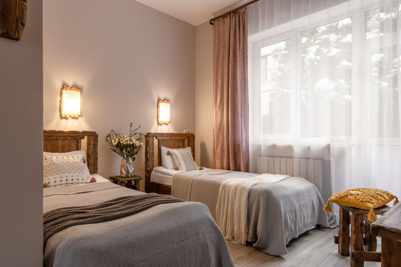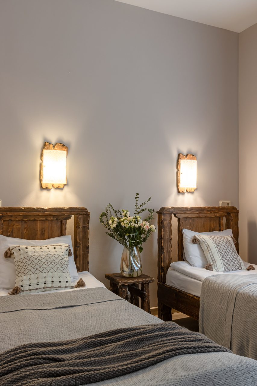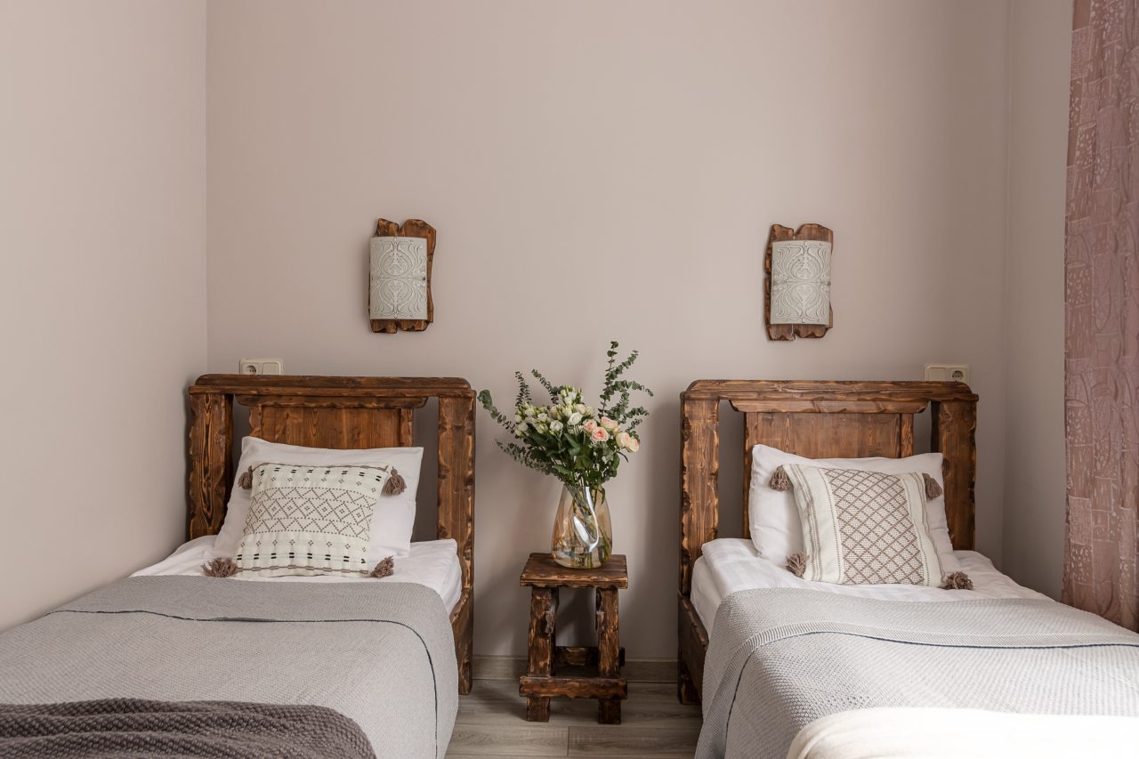 Для размещения предоставлены 17 двухместных номеров, которые оснащены необходимой для комфортного проживания мебелью и бытовой техникой: телевизор, удобные спальные места, комплект полотенец, шкаф для хранения личных вещей, зеркало. В санузле есть индивидуальные средства гигиены и фен.