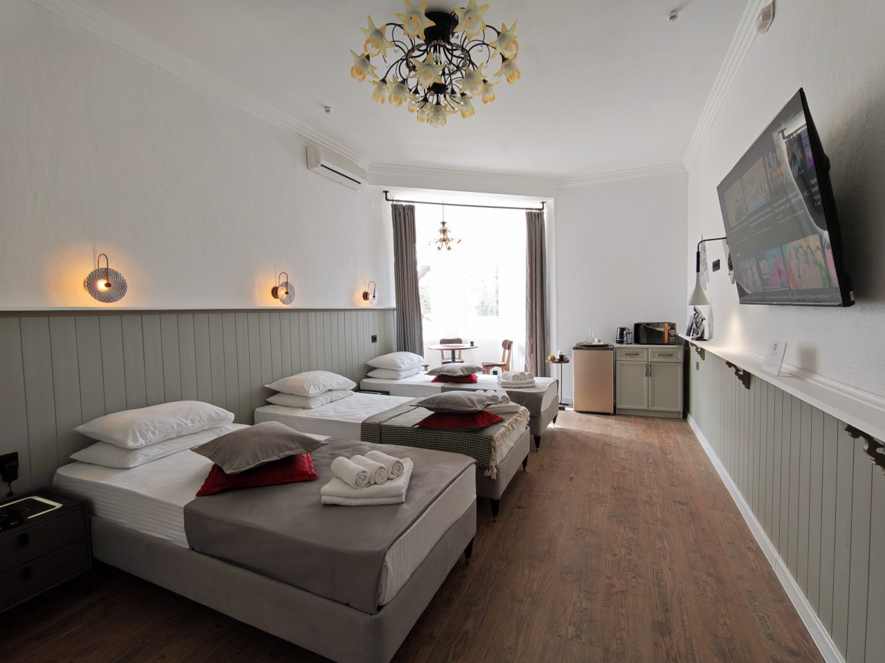Отель находится близко к расположению к морю, очень удобно. В шаговой доступной достопримечательности, развлечения. В номере есть все необходимое для комфортного отдыха. Администратор Анжела вежливая, доброжелательная. Очень довольны отдыхом. Рекомендуем.