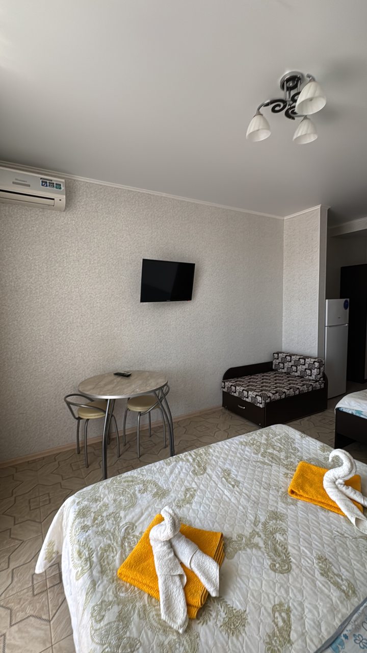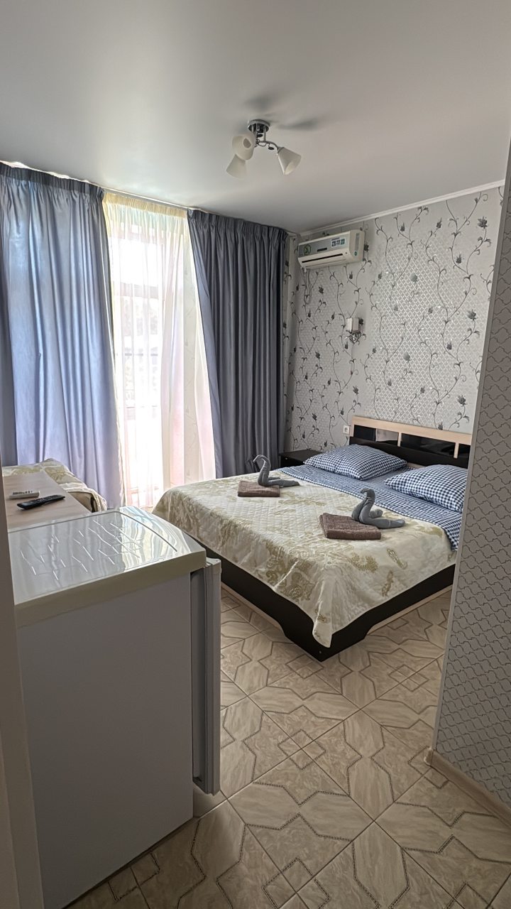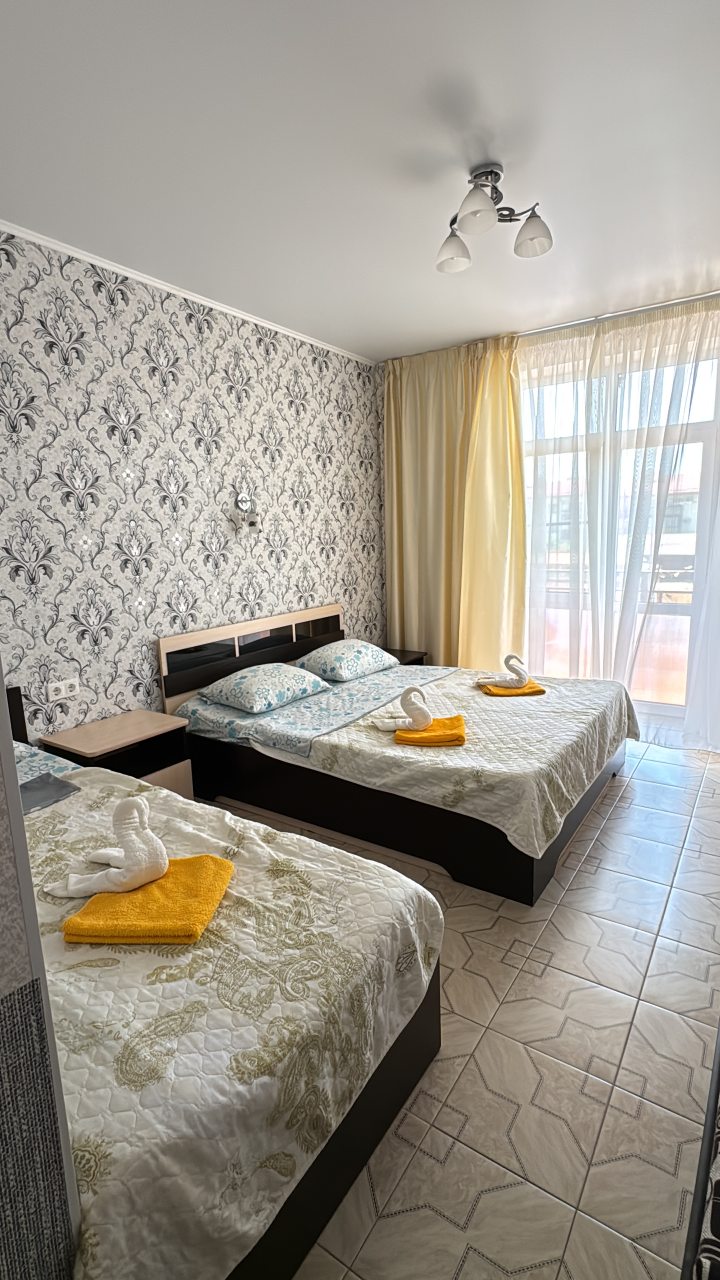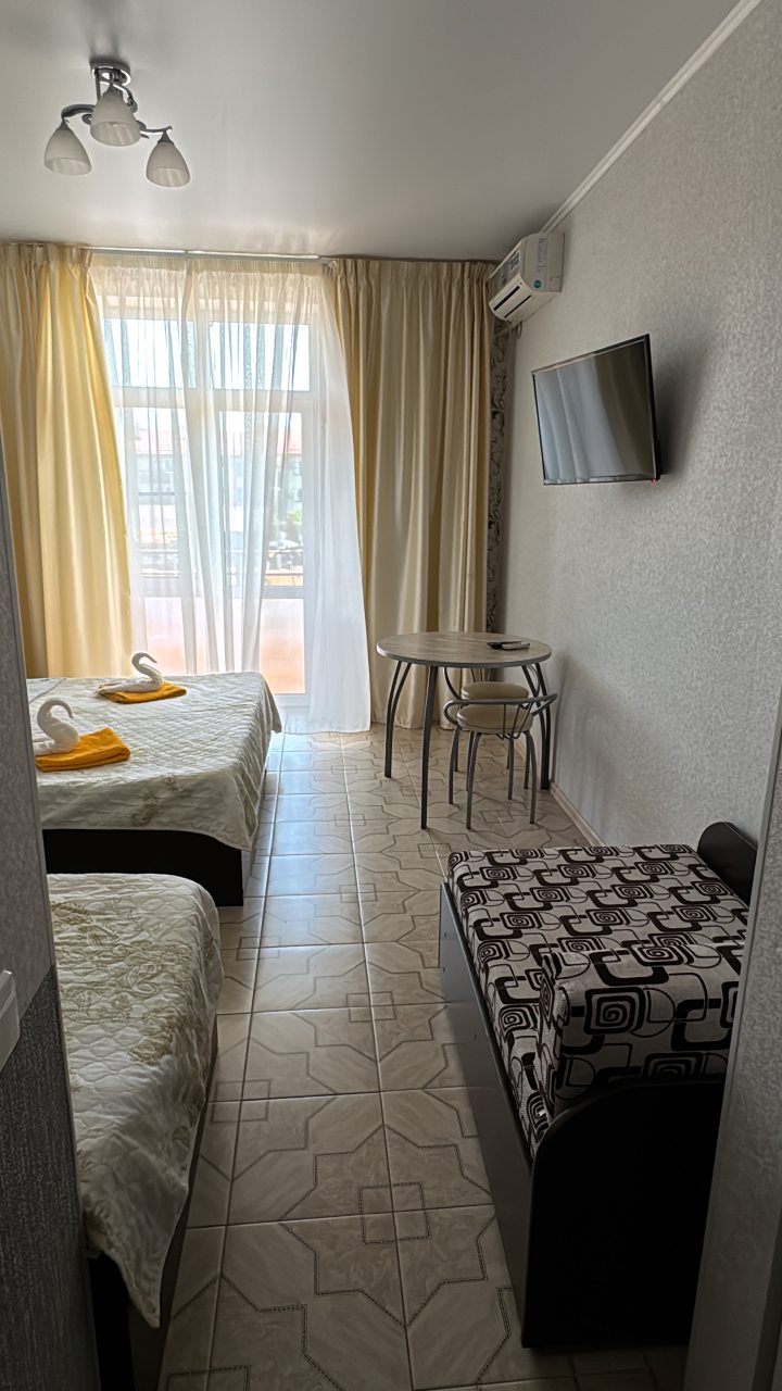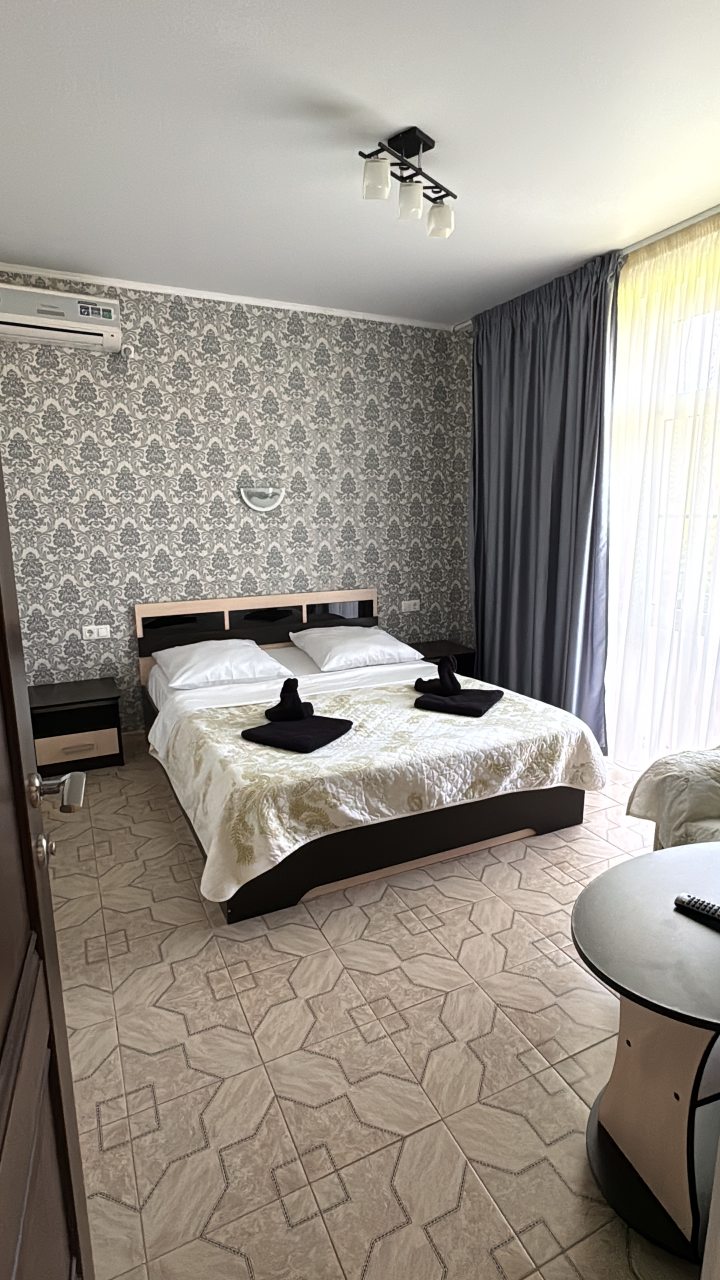 Нам весьма понравился этот гостевой дом. Отличный семейный номер, состоящий из двух комнат. Мы отдыхали двумя семьями и испытали максимальный комфорт. Каждая комната оборудована большой кроватью, креслом-кроватью, душем и туалетом, а также телевизором, холодильником и кондиционером. В каждой комнате имеется балкон с сушилкой. Завтраки по меню за дополнительную плату оказались очень вкусными. На территории есть небольшой бассейн, создающий уютную атмосферу. Настоятельно рекомендую!