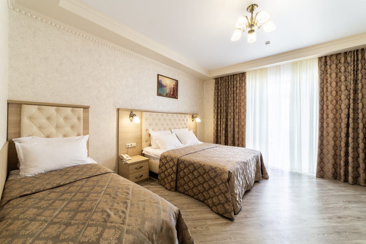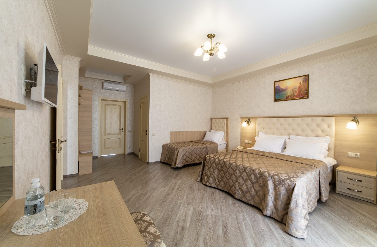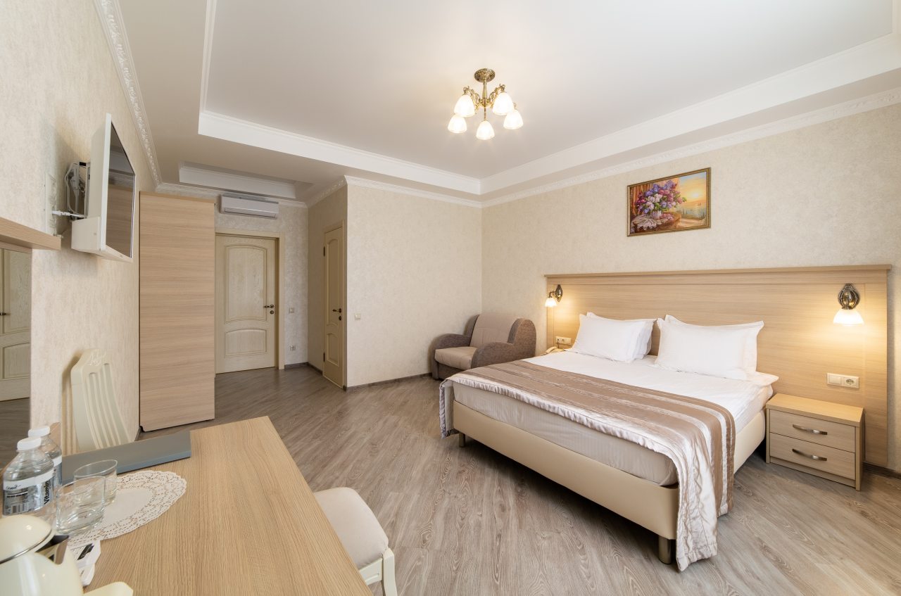 Комфортабельные номера оснащены кондиционером, личный сейф, цифровое телевидение, высокоскоростной Wi-Fi, телефон и ванная комната с феном, халатами, полотенцами и средствами личной гигиены.