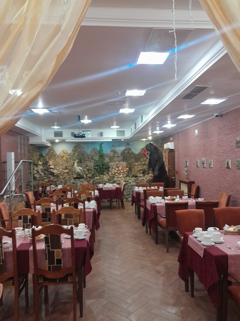 На территории гостиницы работает ресторан с широким ассортиментом вкусных блюд.