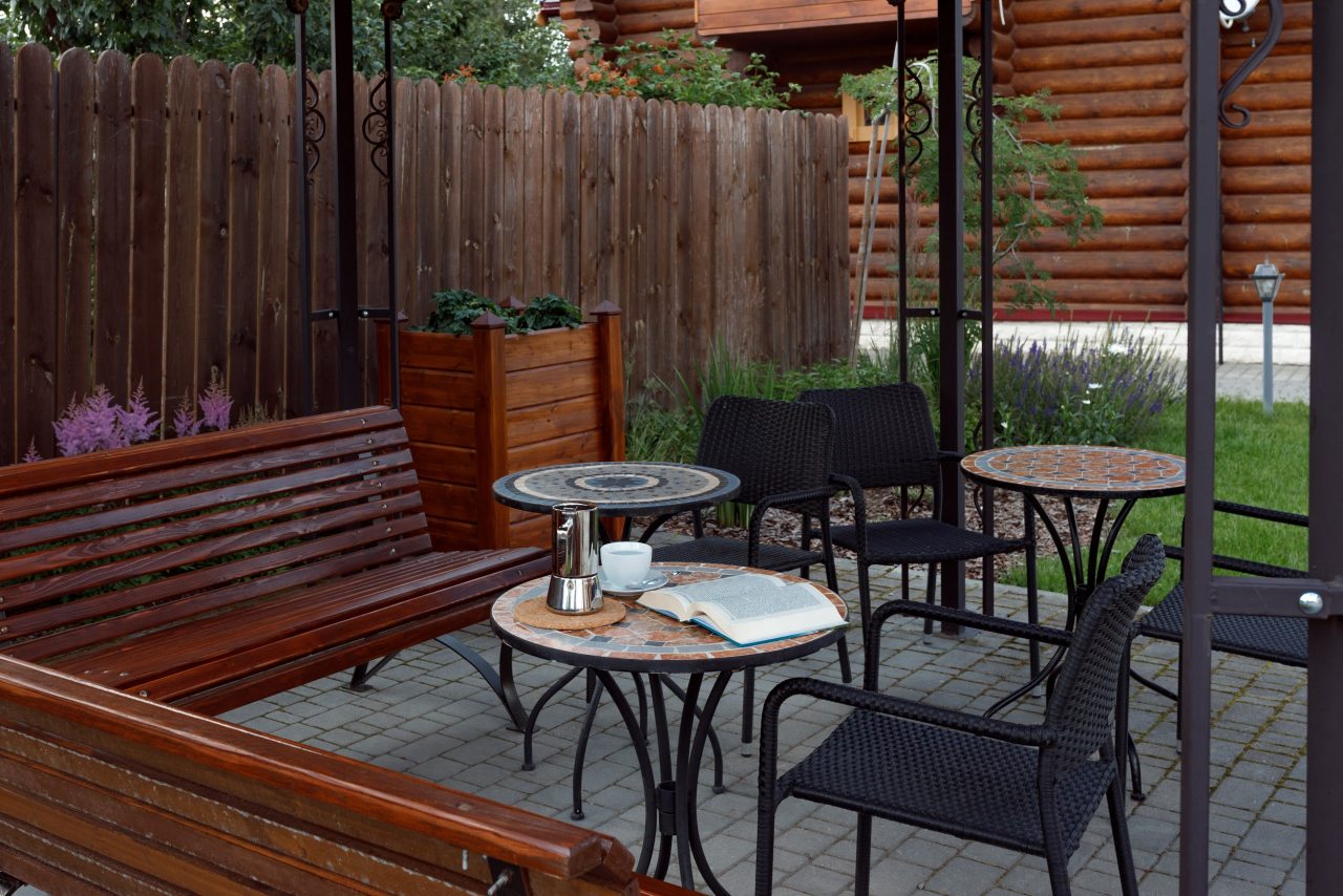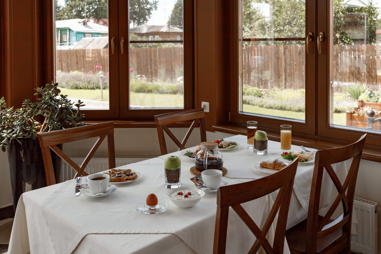 Каждое утро для проживающих на Веранде сервируется изысканный завтрак. Там же в течение всего дня накрыт чайный стол с выпечкой, сладостями и фруктами, что входит в стоимость проживания.