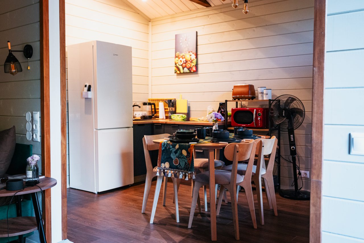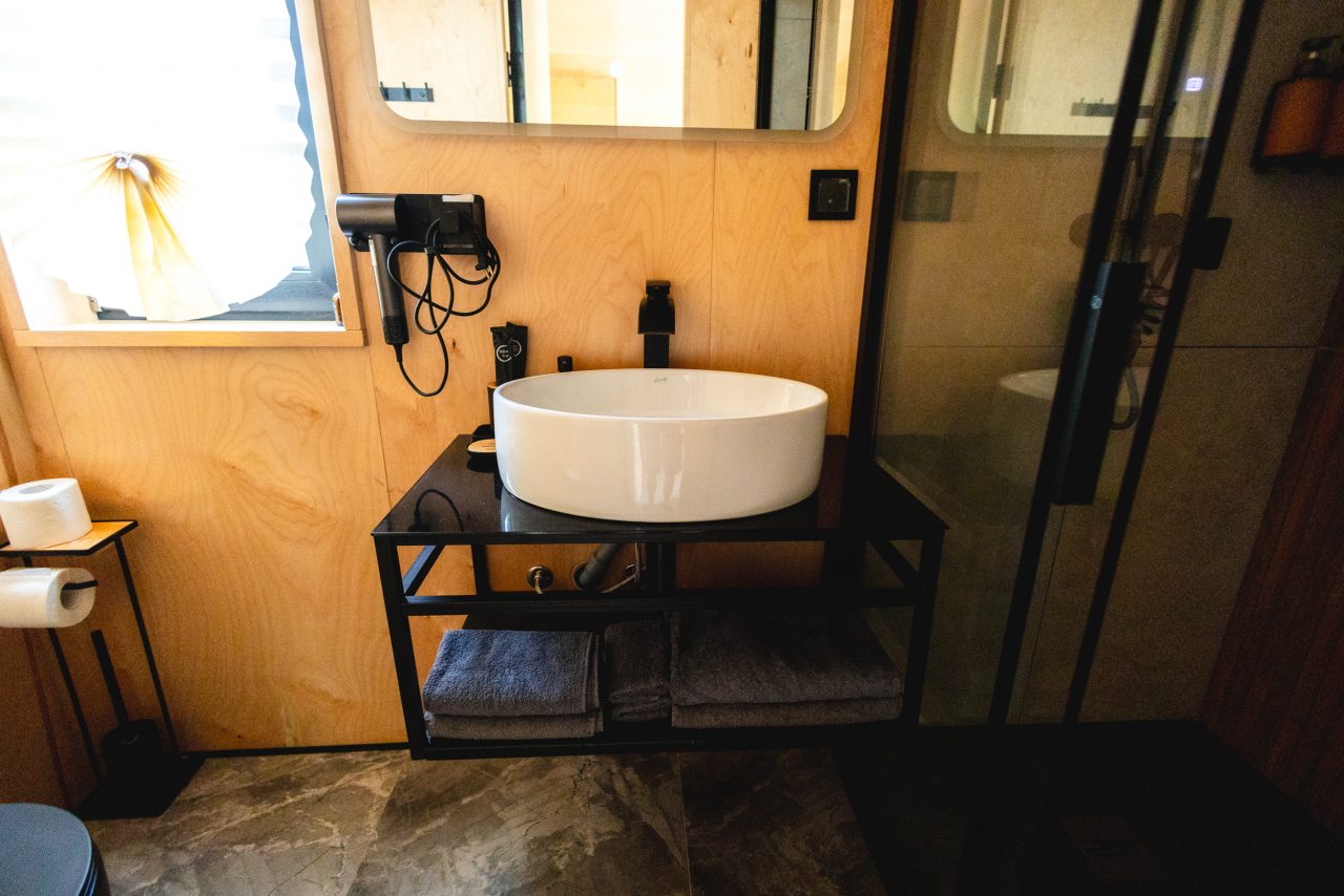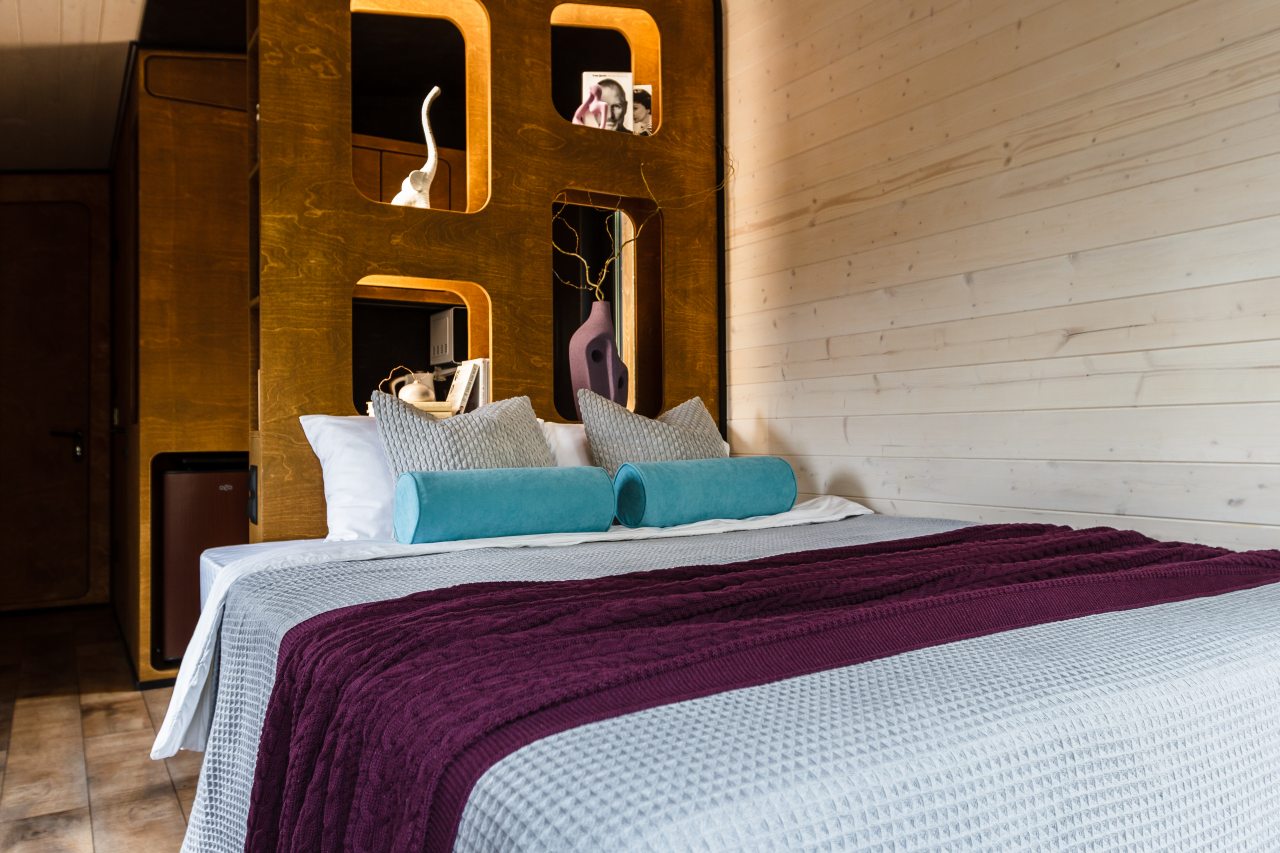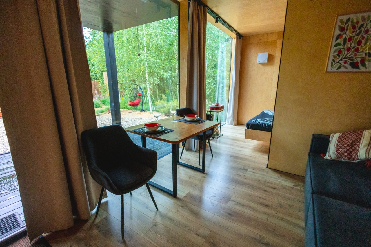 Для выбора доступно 8 комфортабельных домов, в каждом из которых вы найдете качественную и функциональную мебель, в том числе удобные кровати, различные источники освещения, панорамные окна, откуда будет приятно наблюдать за красивыми природными пейзажами. Санузел укомплектован необходимой сантехникой.