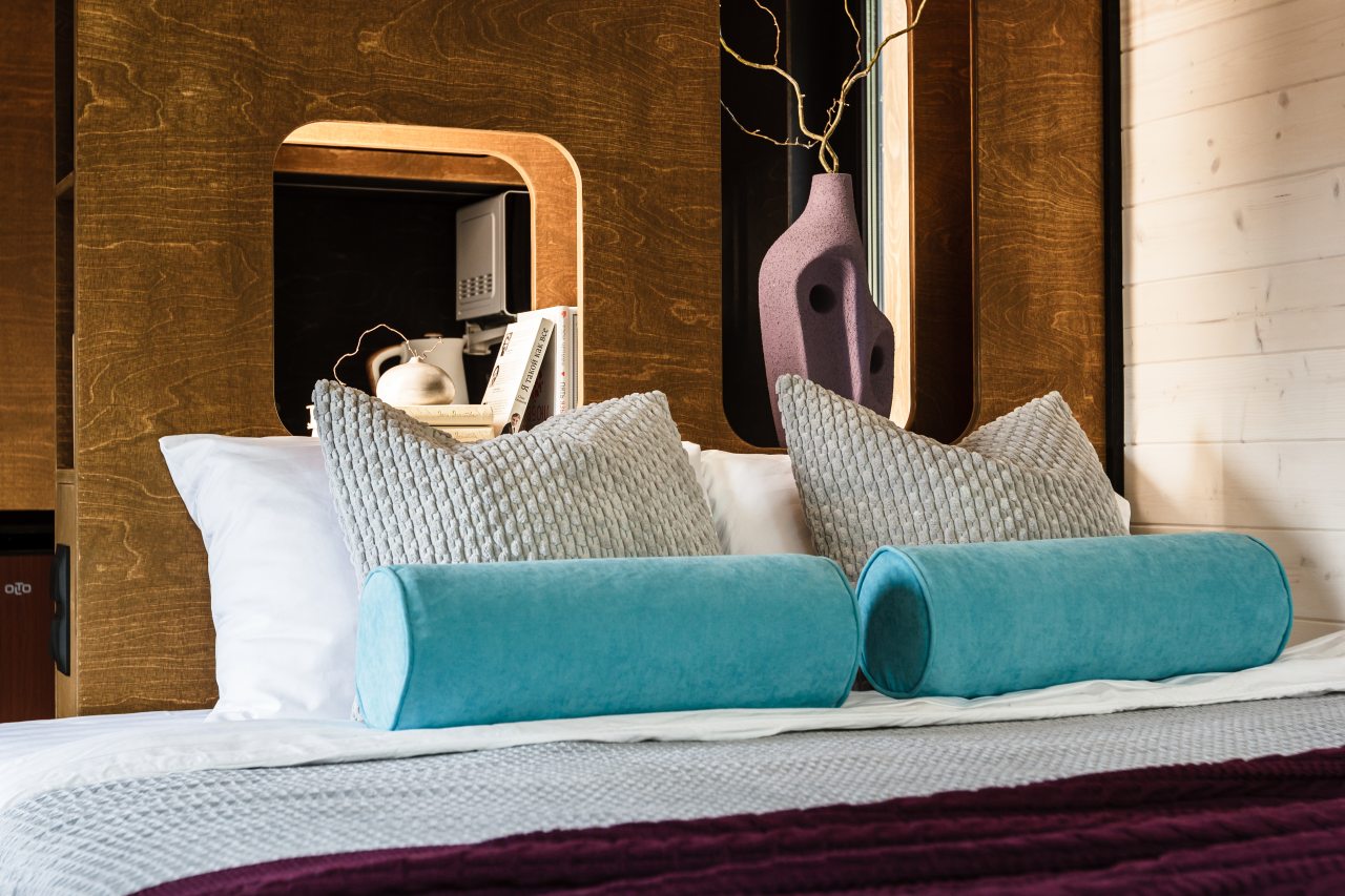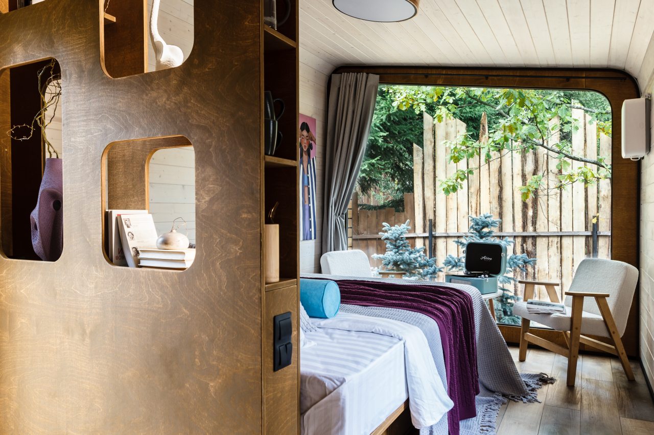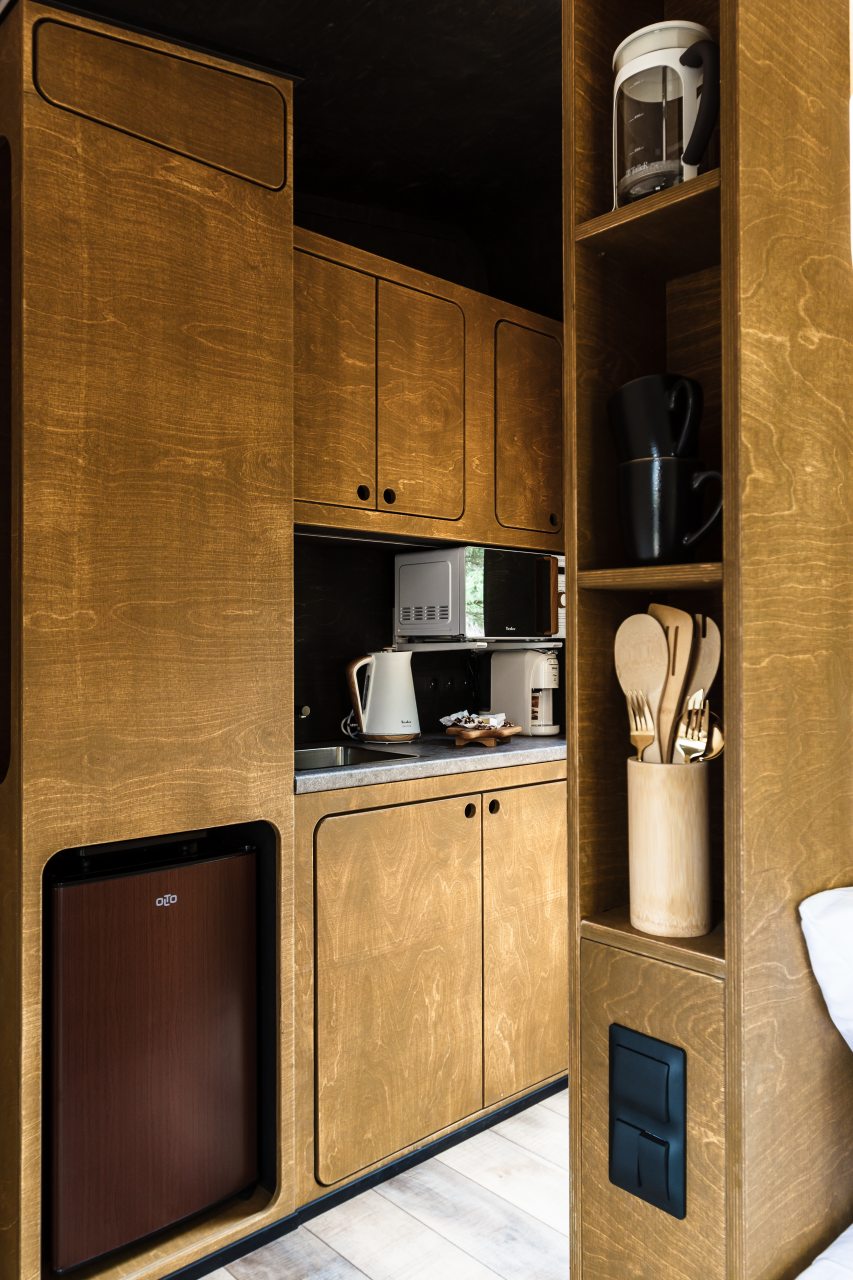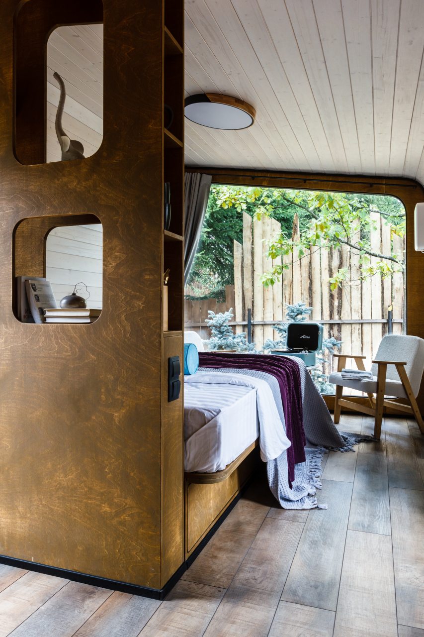 Для выбора доступно 8 комфортабельных домов, в каждом из которых вы найдете качественную и функциональную мебель, в том числе удобные кровати, различные источники освещения, панорамные окна, откуда будет приятно наблюдать за красивыми природными пейзажами. Санузел укомплектован необходимой сантехникой.