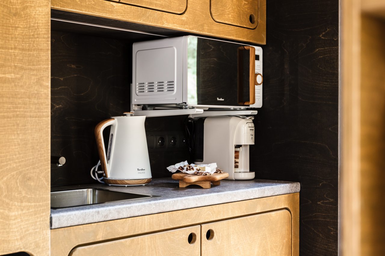 Когда выбирали вариант для отдыха в Подмосковье, ориентировались по большей части на обустроенную территорию. Это место порадовало этим. Уютные домики, панорамные окна, приглушенный свет, современное оформление, есть все необходимое для недолгого проживания. Мангал есть, готовили шашлыки. В общем все супер!