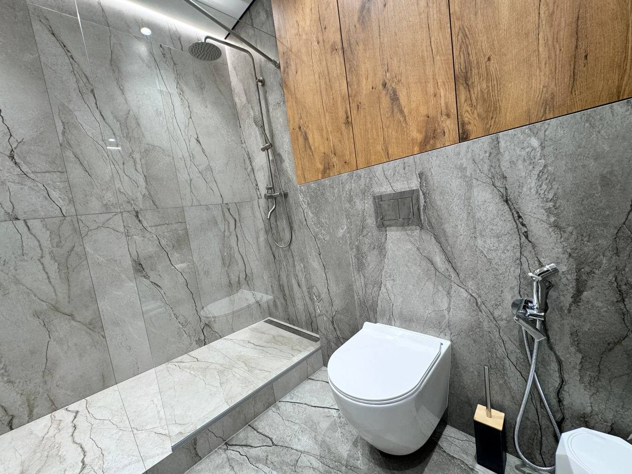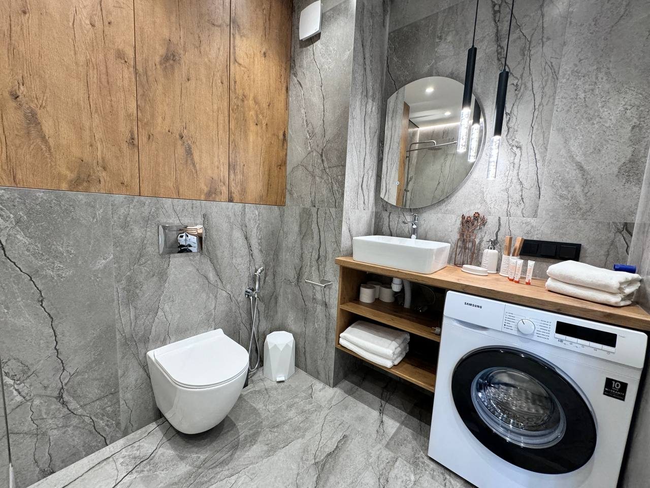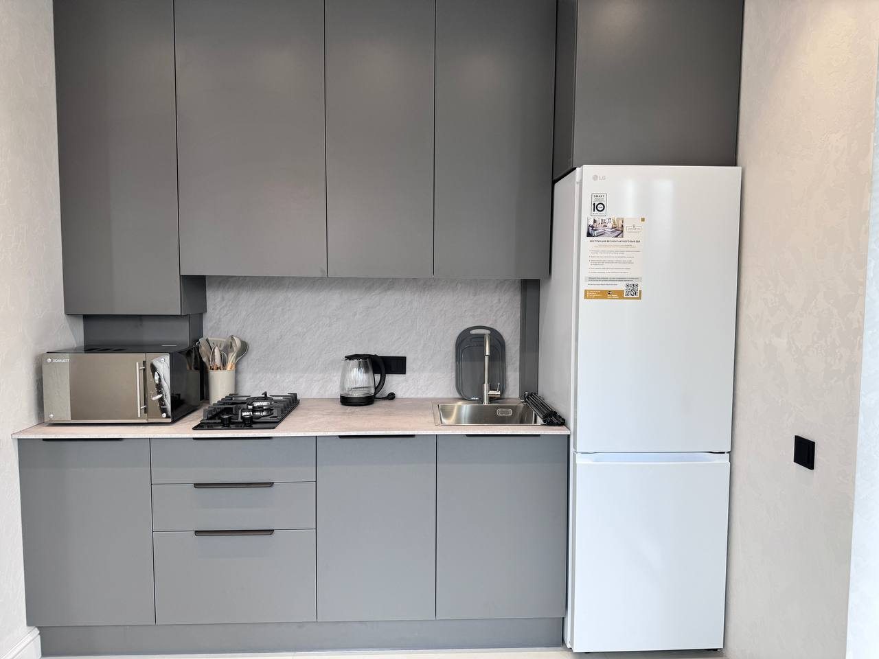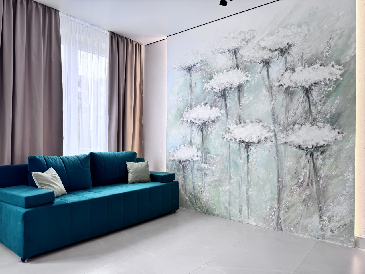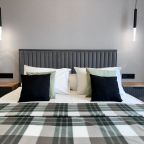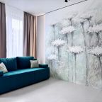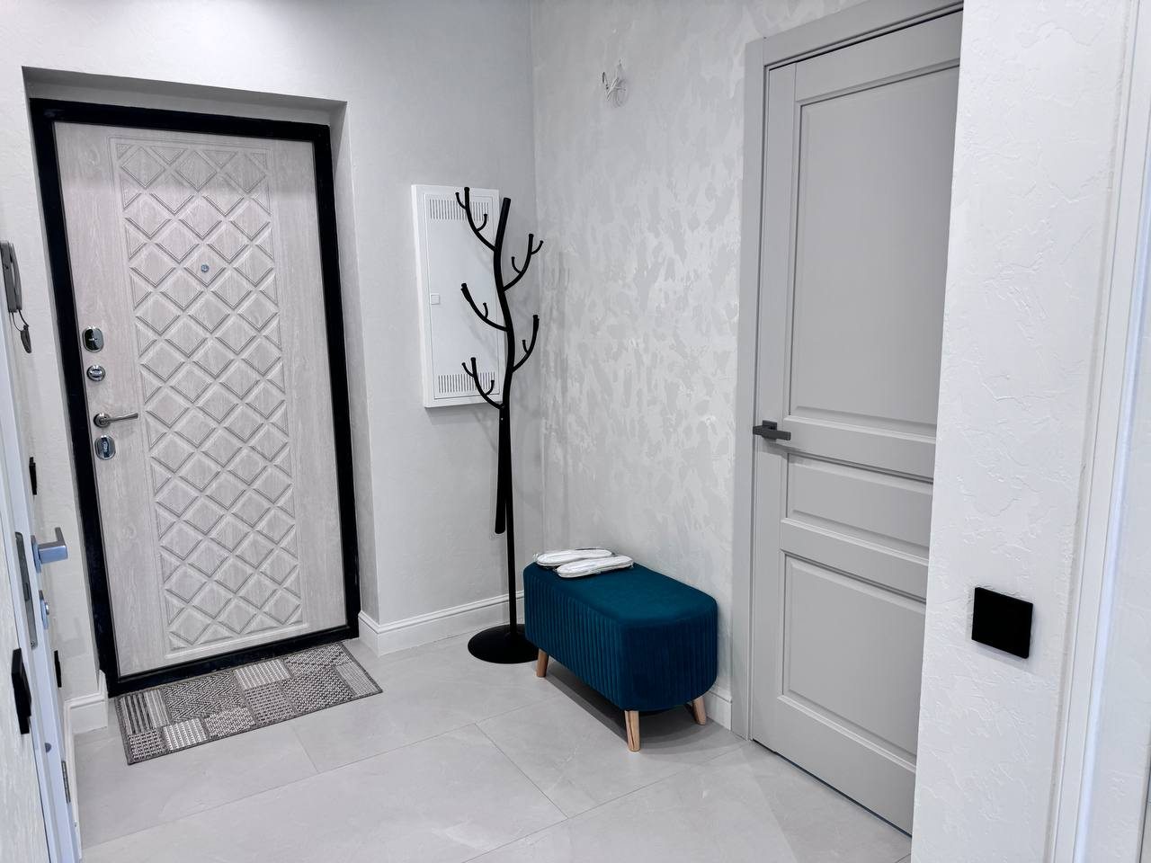 Дизайнерские стильные апартаменты готовы ко встрече с гостями города. Они оснащены удобной кроватью с ортопедическим матрасом, зеркалом, шкафом для хранения вещей, плотными шторами, которые способствуют качественному сну. Также установлены светильники, журнальный столик и телевизор. В ванной комнате есть все необходимые принадлежности для душа, стиральная машина и комплект полотенец.