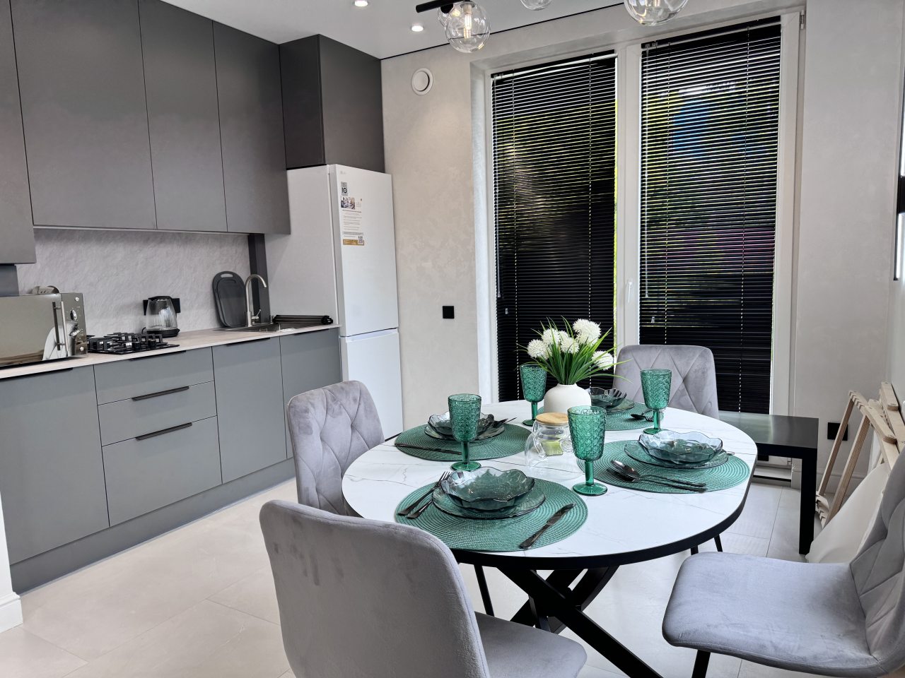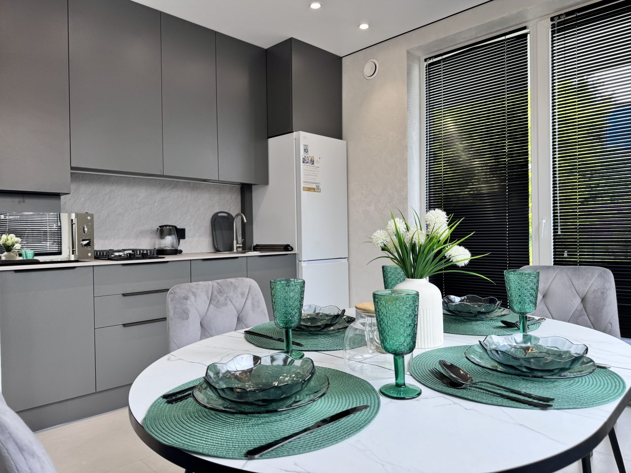 В апартаментах гости могут готовить в своем привычной режиме на полностью оборудованной кухне, которая оснащена не только современной техникой, но и набором столовых приборов и посудой. Недалеко от квартиры работают продуктовые магазины и кафе.
