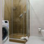 Это хороший вариант для проживания семьей или небольшой компанией, так как в наличии удобные две односпальные и двуспальная кровати, а также вместительный шкаф с зеркалом в полный рост, письменный стол, стиральная машина, санузел с душевой, уютный балкон с зоной отдыха.