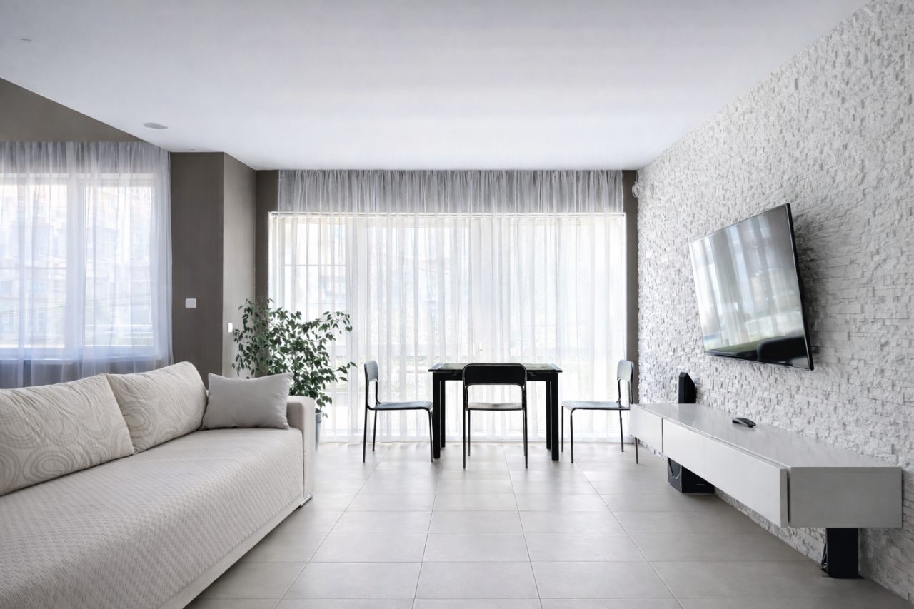 На площади в 51 квадратный метр вас ожидает удобная двуспальная кровать с качественным постельным бельем, несколько диванов и телевизоров, Wi-Fi, различные места для хранения вещей, включая шкаф, комод и навесные полки. Декор и растения создают атмосферу уюта. Дополнительно к вашим услугам ванная комната со стиральной машиной и гигиеническими средствами.