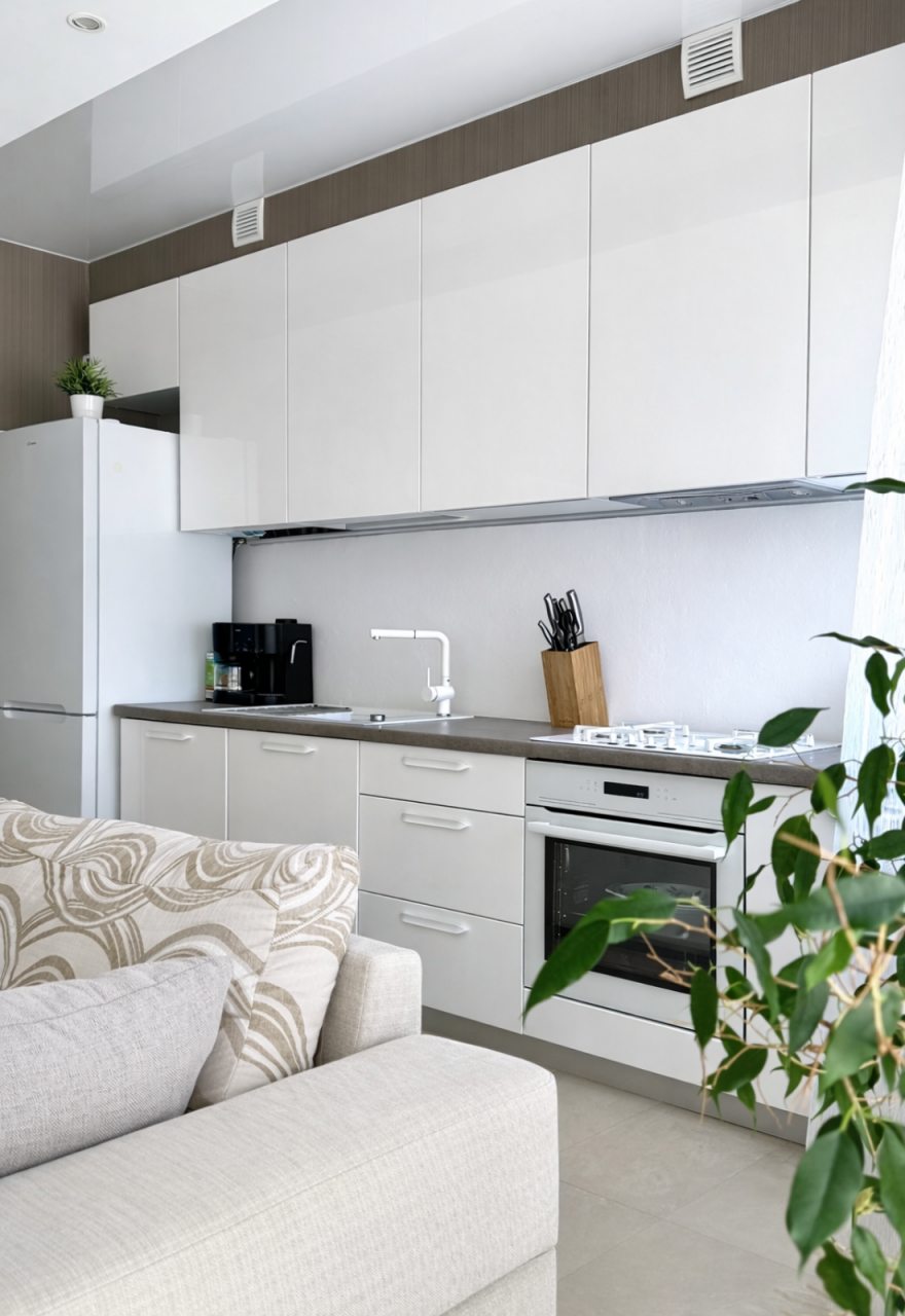 Светлая уютная квартира. Интерьер прекрасный, создает домашнюю атмосферу. Очень чисто, перед нашим заездом была проведена уборка. Порадовало расположение, можно было найти ближе к морю, но нас и это устроило, так как мы были на машине. Понравилось то, что постельное белье было белоснежное и хорошего качества. В ванной комнате установлена отличная сантехника, ничего не подвело. Мы очень вам благодарны.