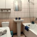 Уютные апартаменты оснащены большими окнами, двуспальной кроватью со свежим постельным бельем, затемненными шторами, шкафом, телевизором, гладильными принадлежностями, кухней со всей необходимой бытовой техникой, собственной ванной комнатой и Wi-Fi. Санузел укомплектован качественной сантехникой, стиральной машиной и гигиеническими средствами.