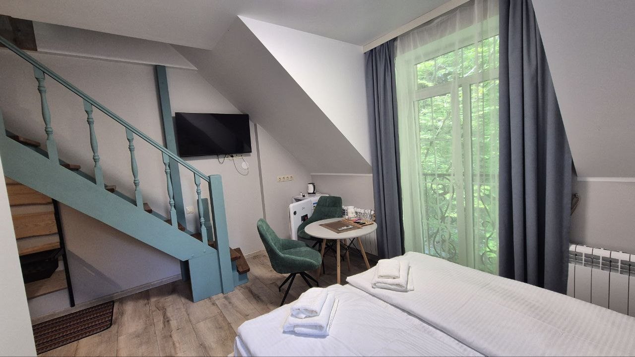 К размещению гостей представлены двухместные номера категории: Стандарт, Комфорт, Джуниор Сьют. Во всех вариантах имеются удобные спальные места, современная техника, комфортабельная мебель, ванная комната.