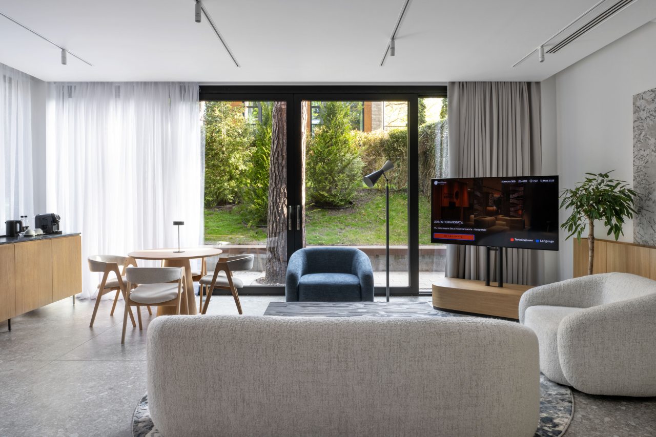 Великолепный отель с внимательным и дружелюбным персоналом, превосходным управлением, стильными и красивыми интерьерами, вкусными завтраками и приветственным игристым напитком. Расположен в удобном месте с одной стороны в центре, но в то же время вдали от туристической суеты. Из окон открывается потрясающий вид на сосны и соседний коттедж с ландшафтным дизайном. Всё очень понравилось! Спасибо за ваш труд!
