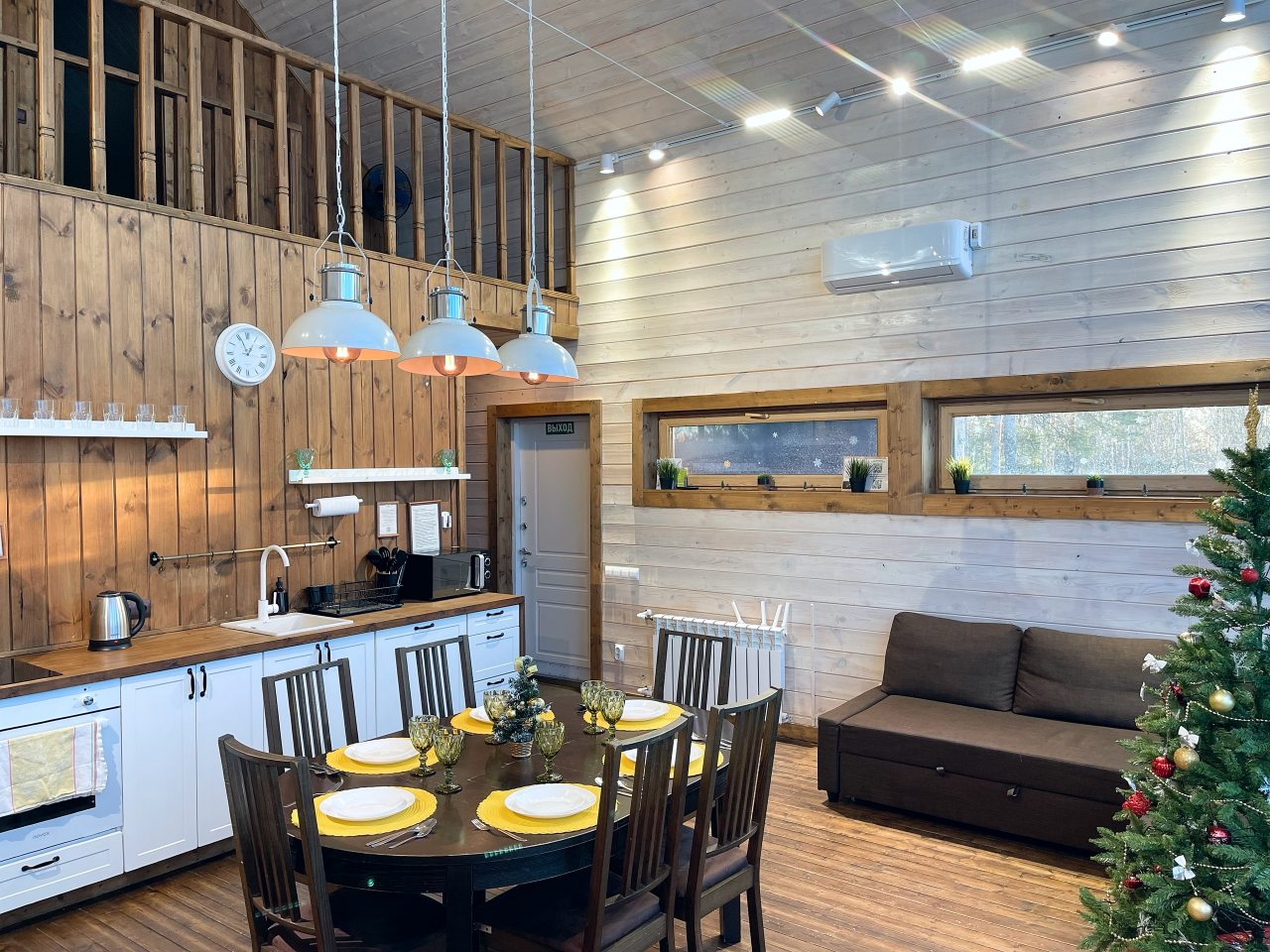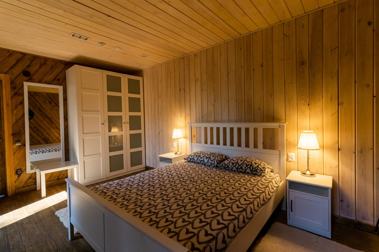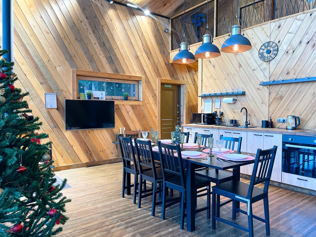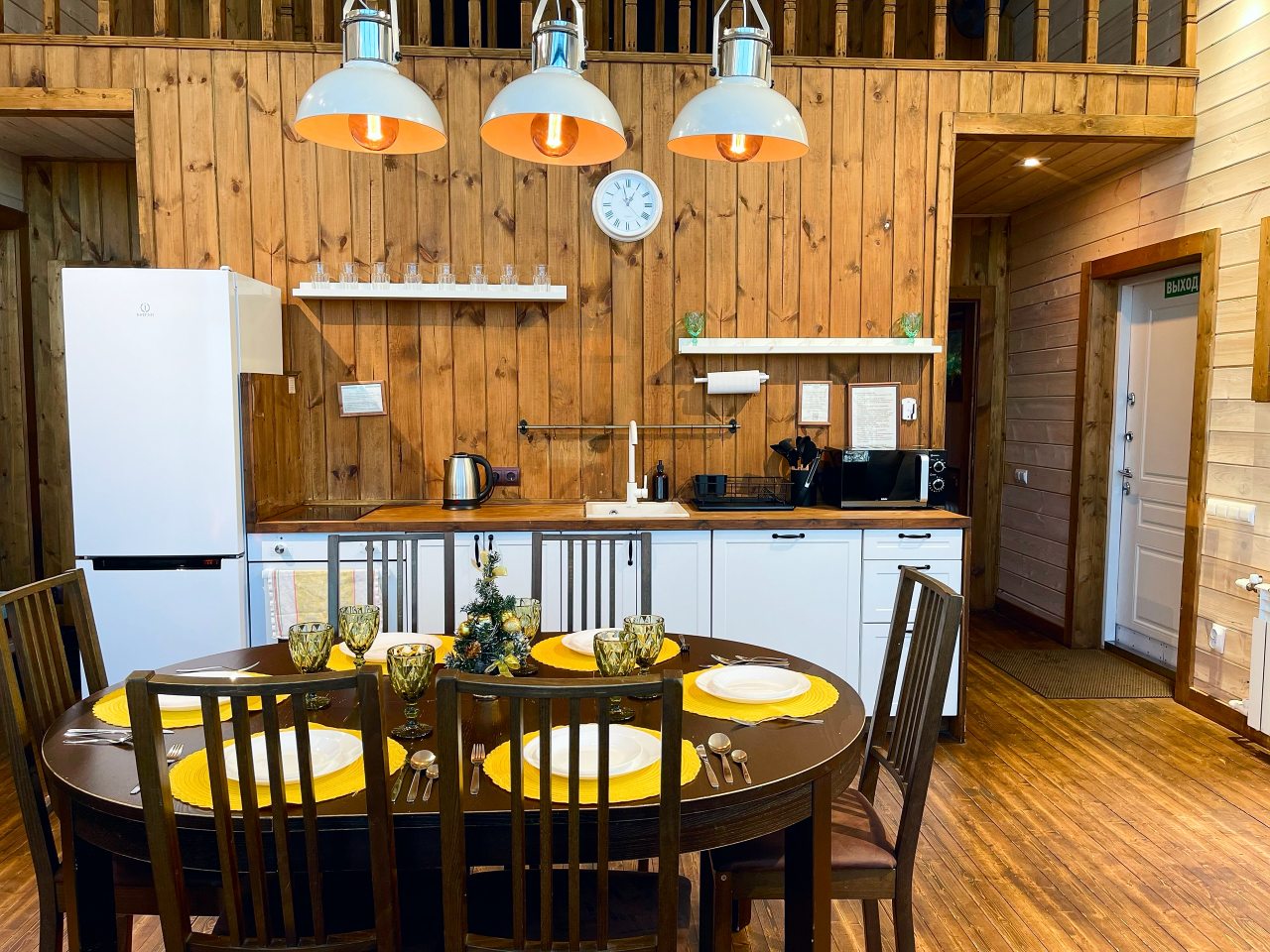 Красивый барнхаус эффектно вписан в окружающий ландшафт. Использование в отделке дерева дает еще больше ощущения единения с природой. В доме есть все необходимое для комфортного проживания 6-8 человек. Приятным бонусом для нас была сауна в доме. Терраса с видом на озеро отлично подходит для утреннего кофе и вечернего бокала вина. Своя мангальная зона, бесплатный спортивный инвентарь и велосипеды не позволяли нам лениться. Вежливый и внимательный персонал. В этот дом хочется возвращаться снова и снова.