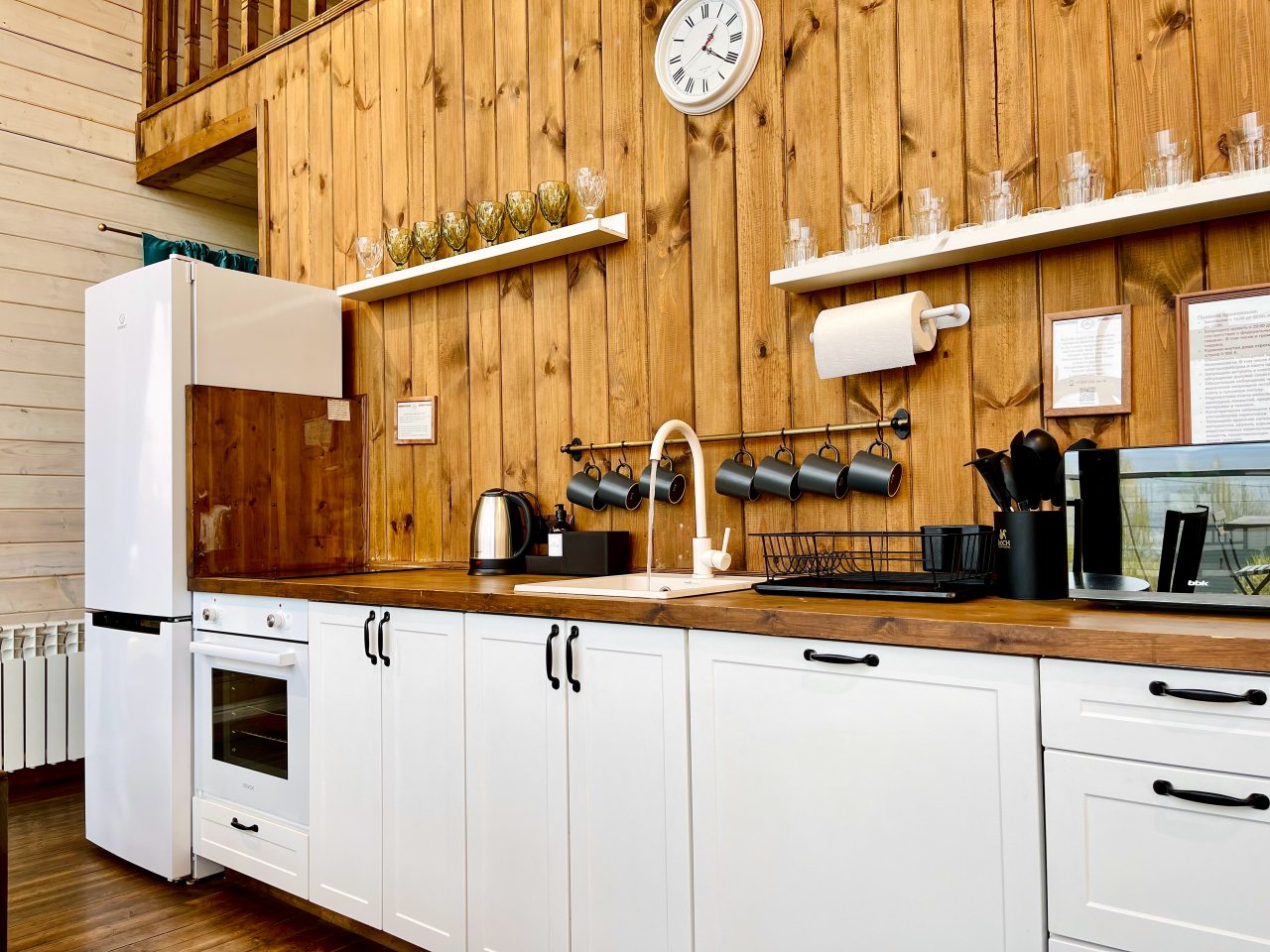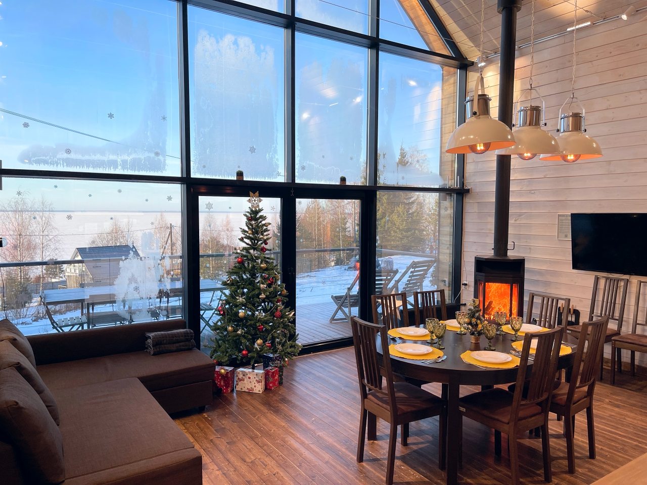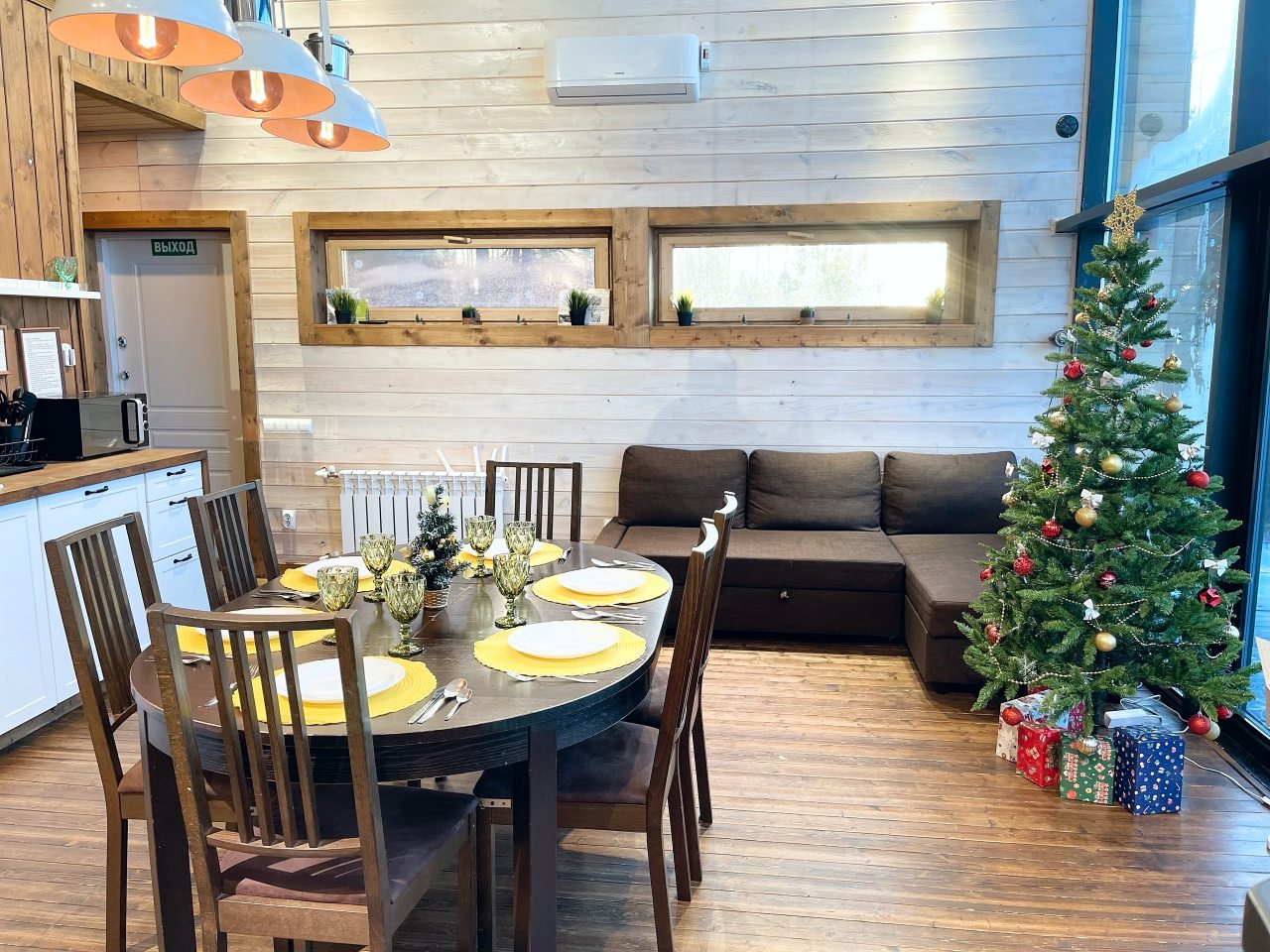 Красивый барнхаус эффектно вписан в окружающий ландшафт. Использование в отделке дерева дает еще больше ощущения единения с природой. В доме есть все необходимое для комфортного проживания 6-8 человек. Приятным бонусом для нас была сауна в доме. Терраса с видом на озеро отлично подходит для утреннего кофе и вечернего бокала вина. Своя мангальная зона, бесплатный спортивный инвентарь и велосипеды не позволяли нам лениться. Вежливый и внимательный персонал. В этот дом хочется возвращаться снова и снова.