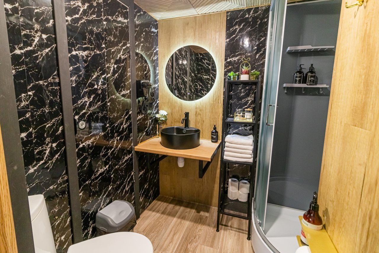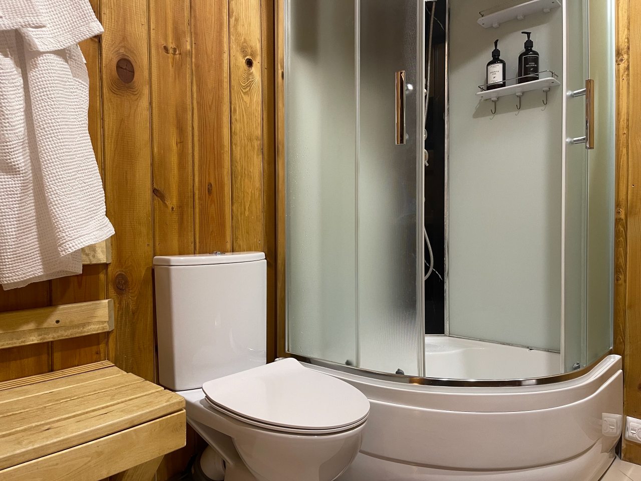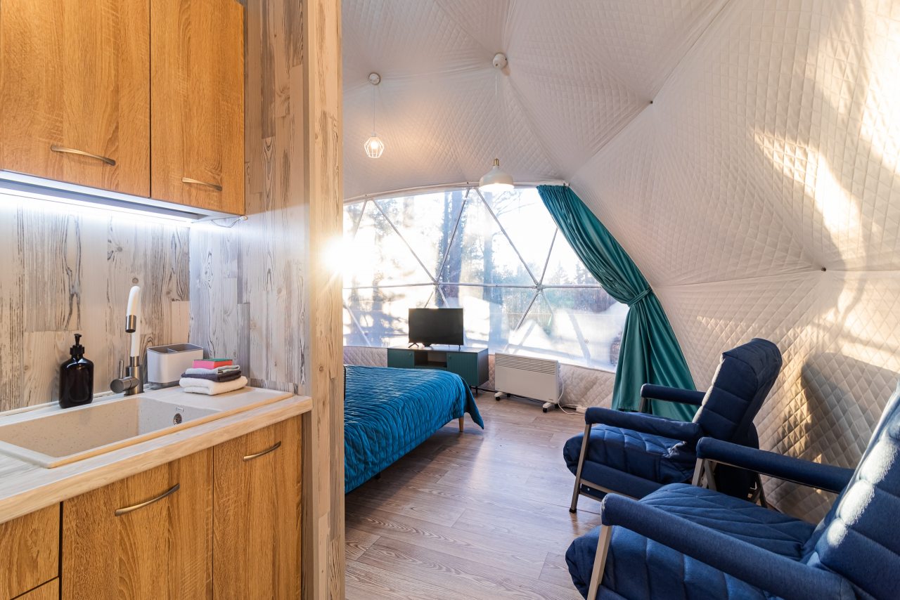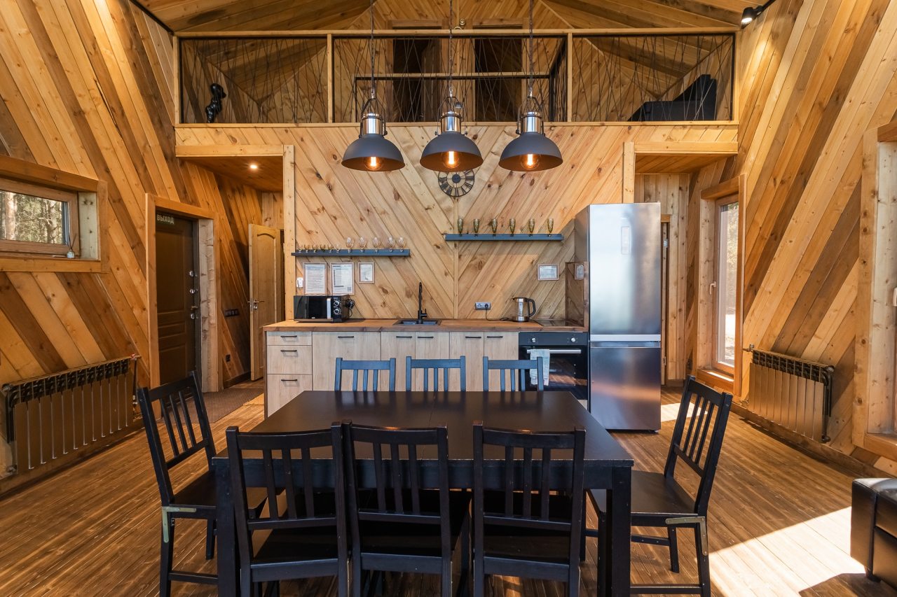 Расположение — огонь!  Прямо у леса, тишина и покой. На территории хорошо обустроенная зона отдыха: мангал, и конечно детская площадка —  мой ребёнок был в восторге!   В домике было достаточно места, и чисто, что немаловажно.  Персонал приветливый, помогли с организацией — это тоже круто.