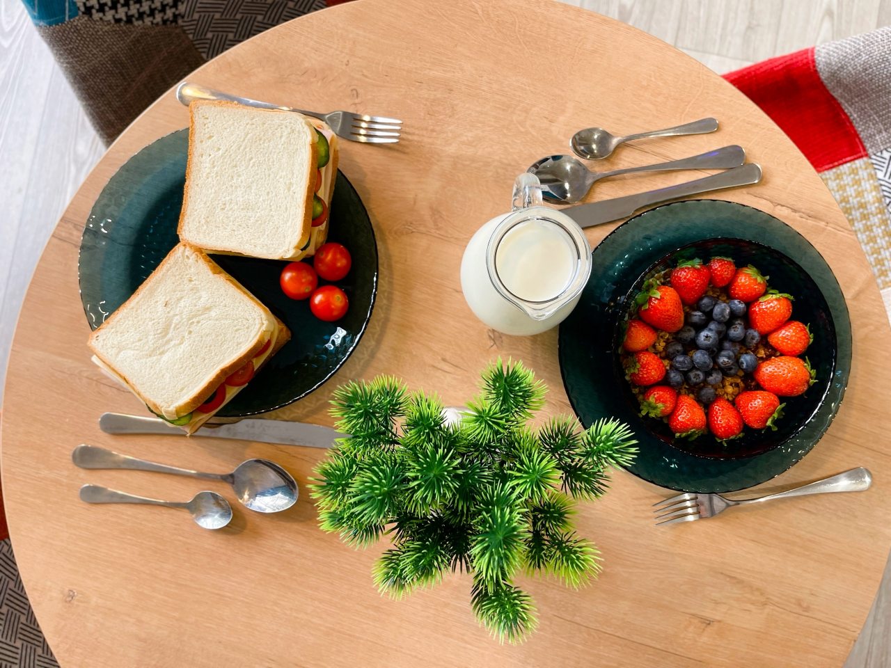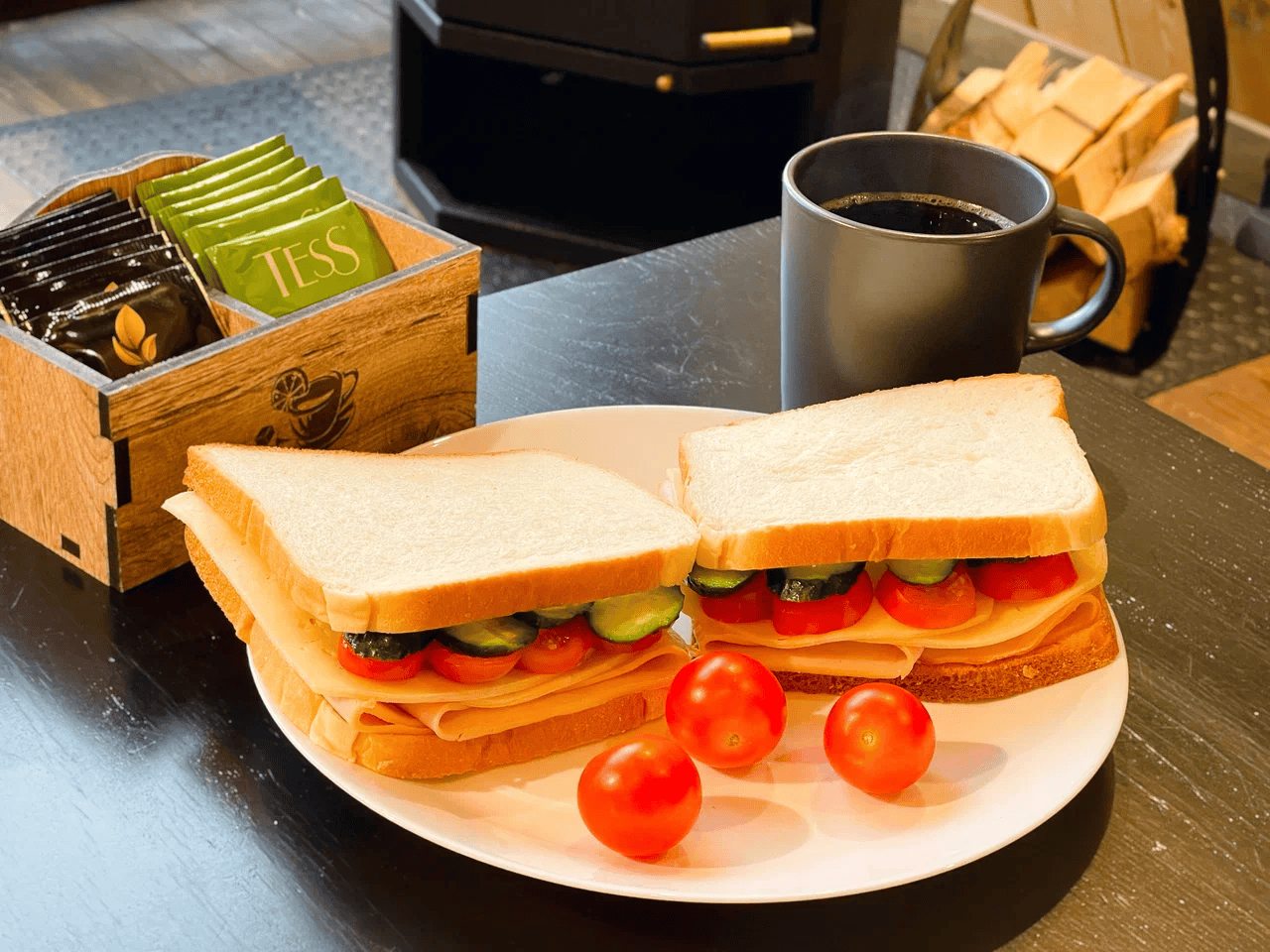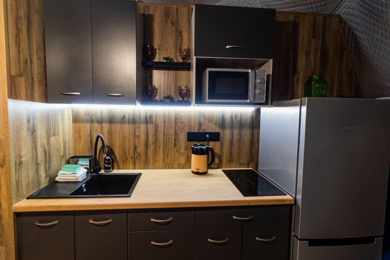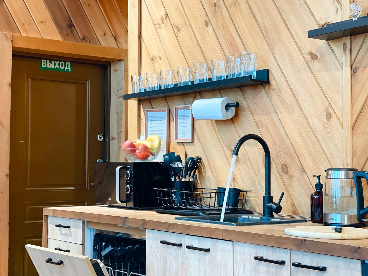Установлена необходимая техника для подогревания еды и приготовления чая. Желающие поесть овощи, мясо или рыбу, жаренные на углях, могут воспользоваться принадлежностями для барбекю.