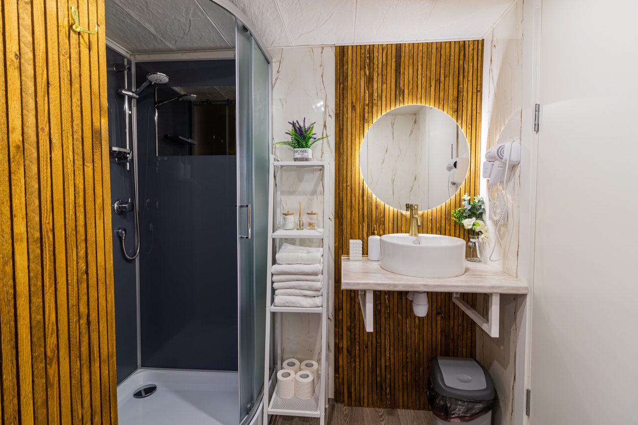 Номерной фонд составляют 5 домов категорий «Афрейм» или «Барнхаус». Каждый из них укомплектован таким образом, чтобы гости могли провести свой отдых максимально комфортно. Здесь удобные кровати, собственная ванная комната, телевизор и Wi-Fi. Каждый номер оборудован террасой с мебелью и видом на озеро или ухоженную территорию.